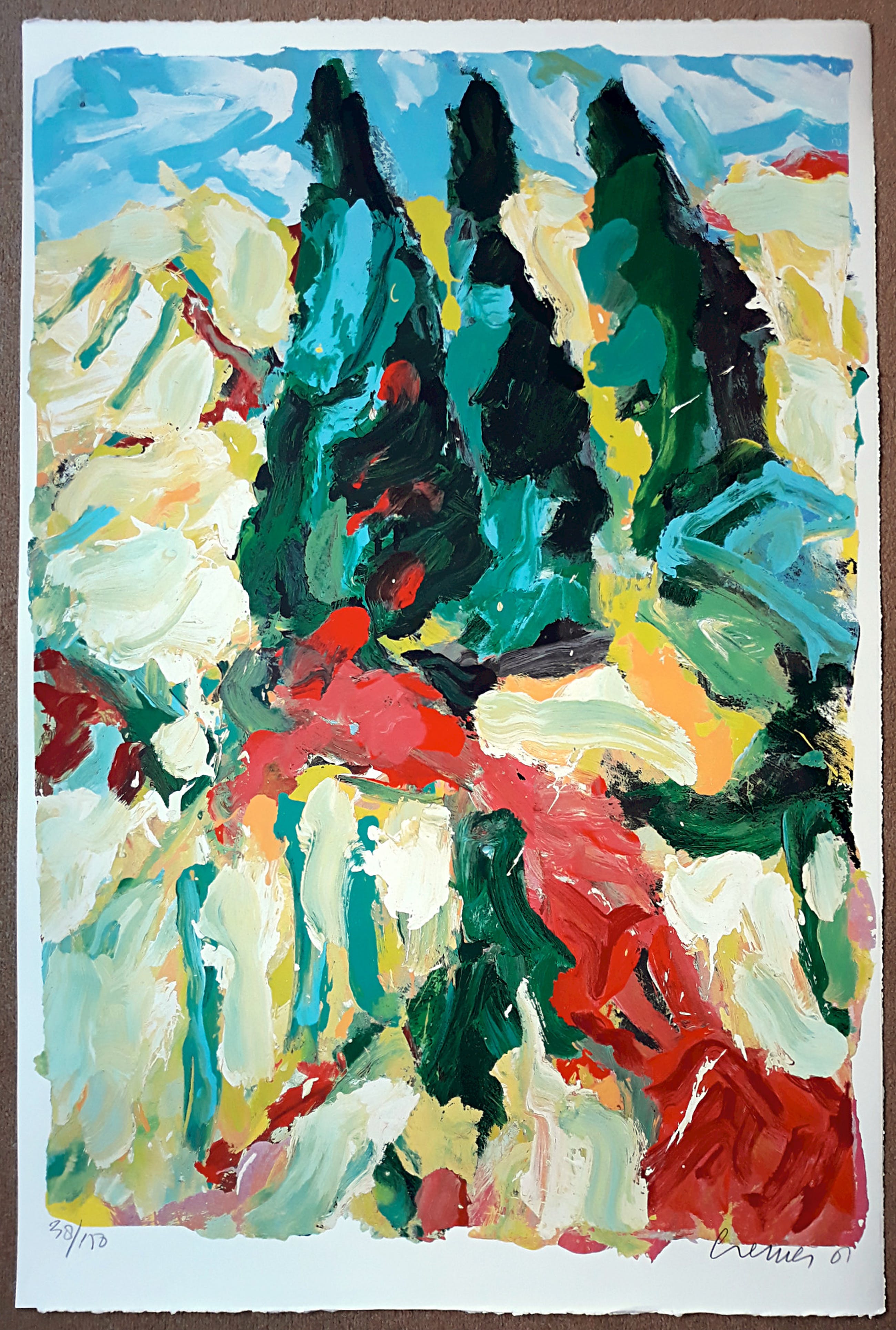 Zeer mooi Toscaans landschap van Jan Cremer uit 2001. Zeefdruk op Rives papier, met potlood gesigneerd, gedateerd en genummerd (38/150). In mint conditie.