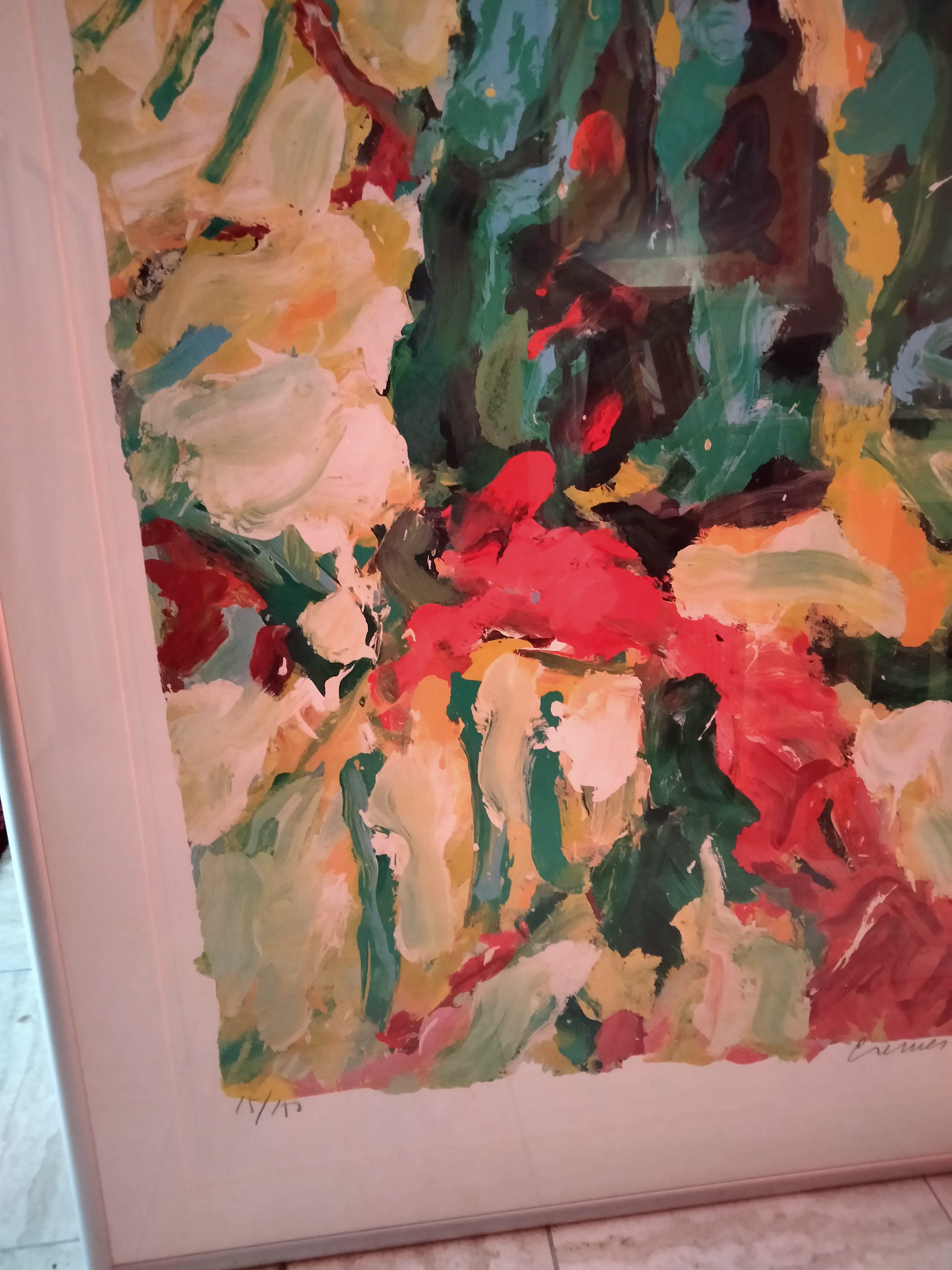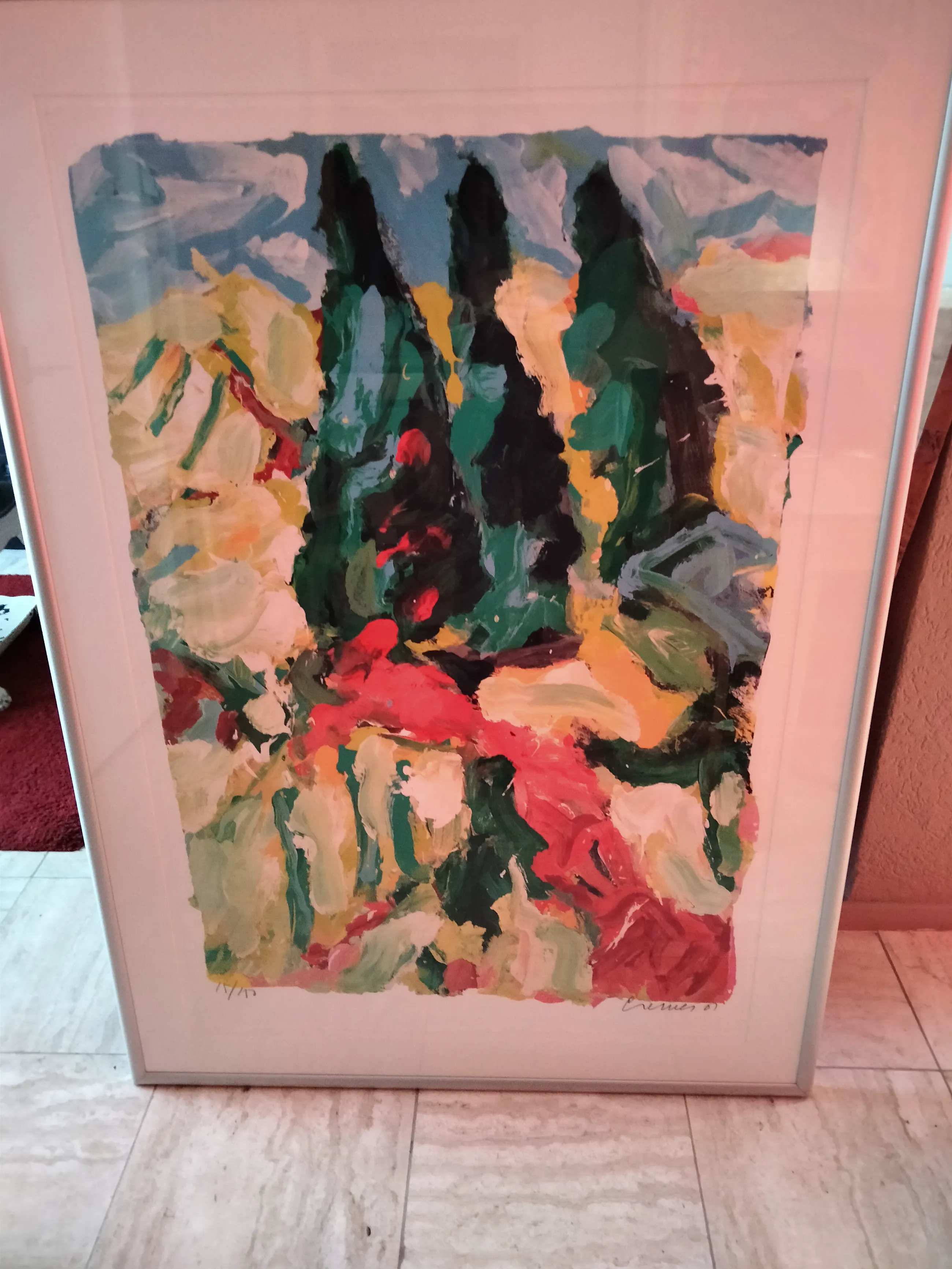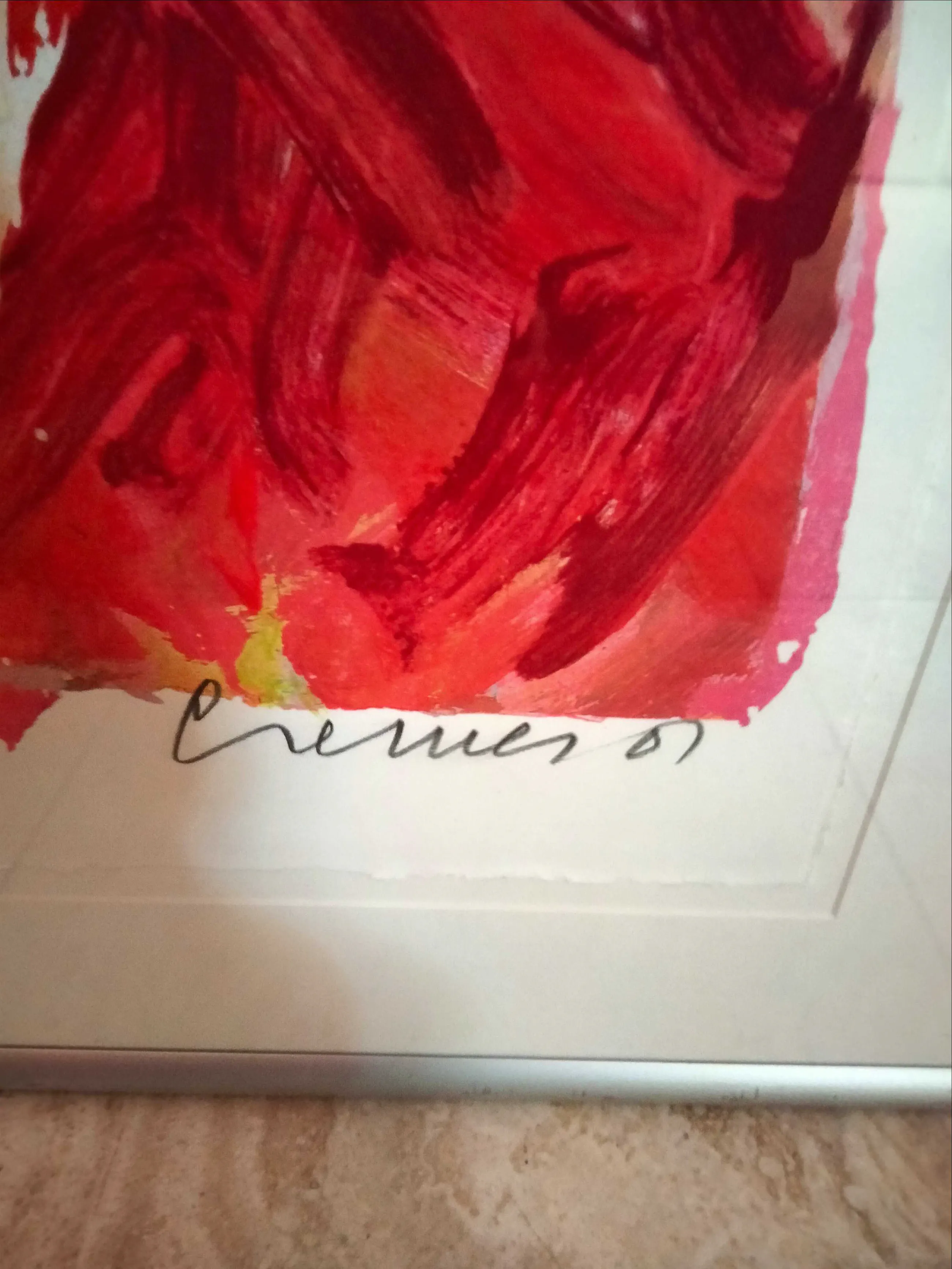 In nieuwstaat verkerende zeer grote zeefdruk van jan cremer getiteld;strada rosso oplagenummer;15/150