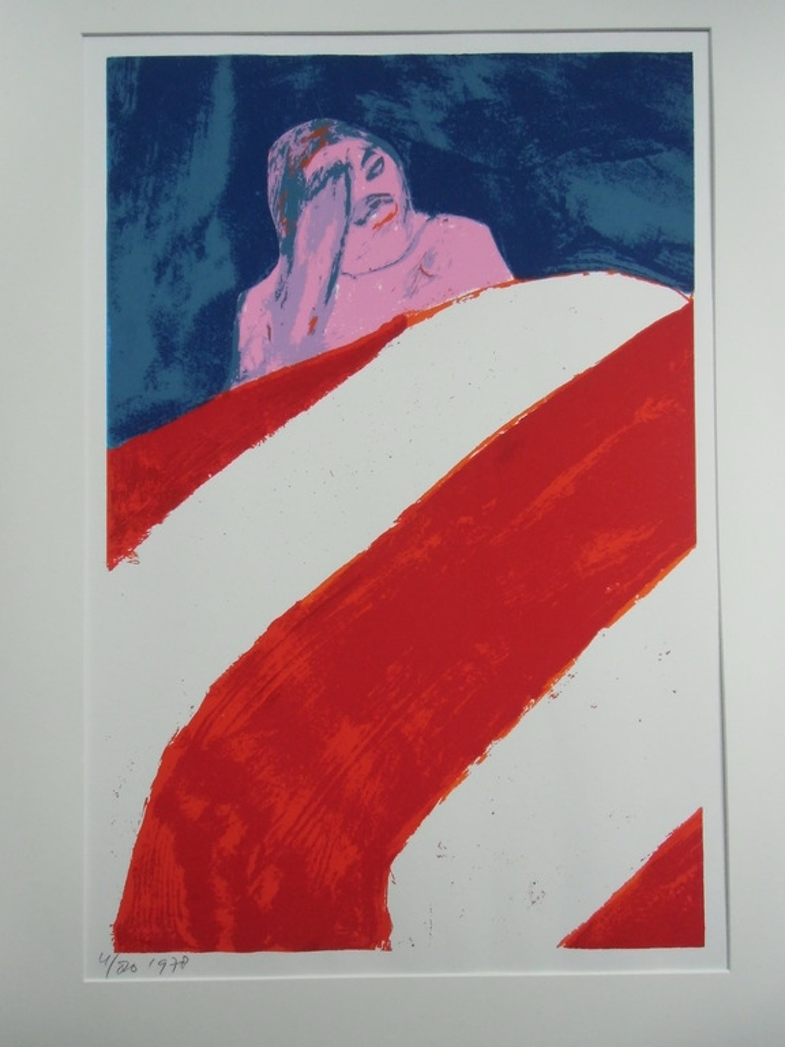 De zeefdruk is in uitstekende staat en opgenomen in passepartout. Het beeldvlak is 65 x 43 cm.