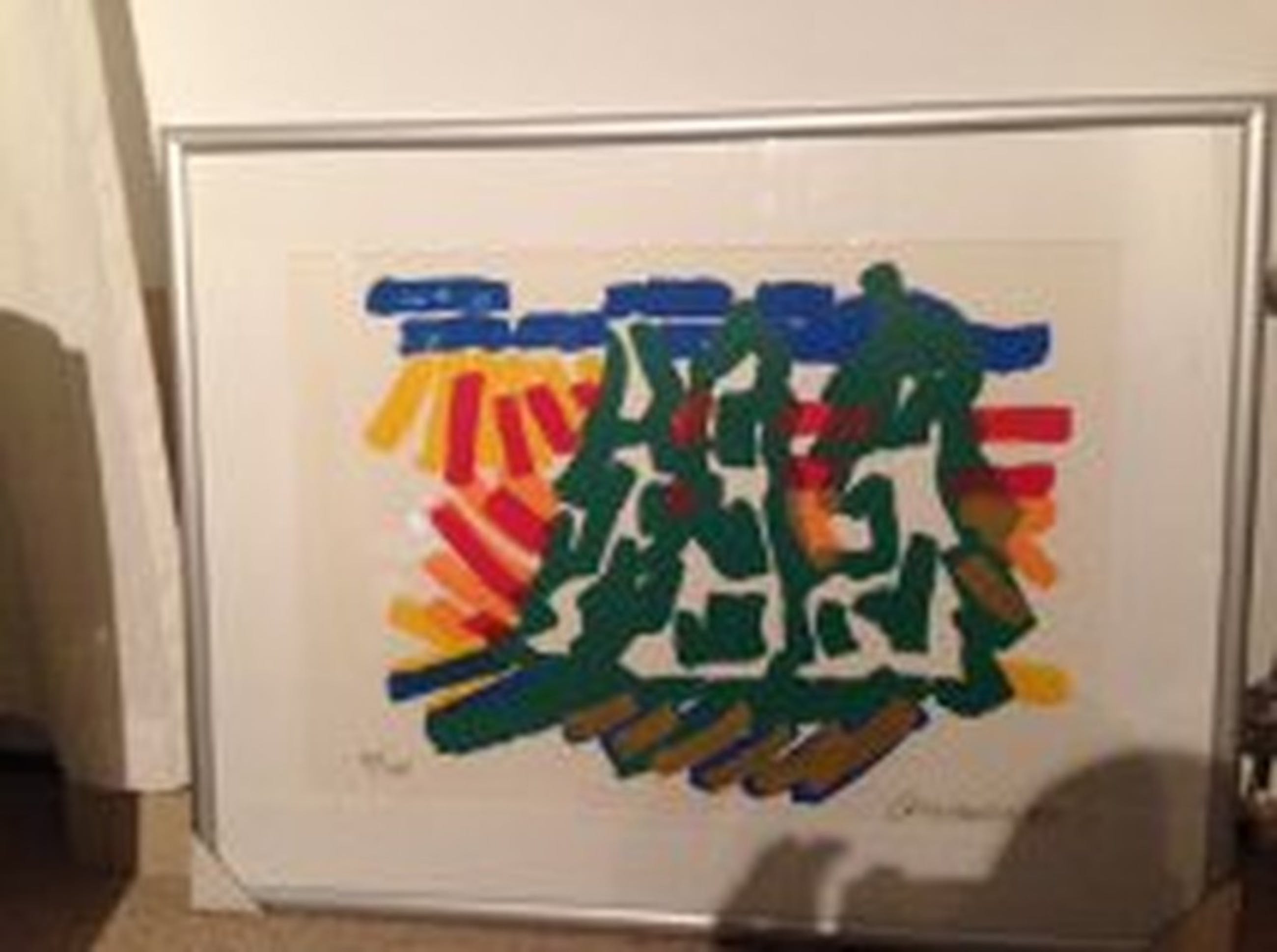 Mooie ingelijste Zeefdruk met passe-partout, in uitstekende staat
