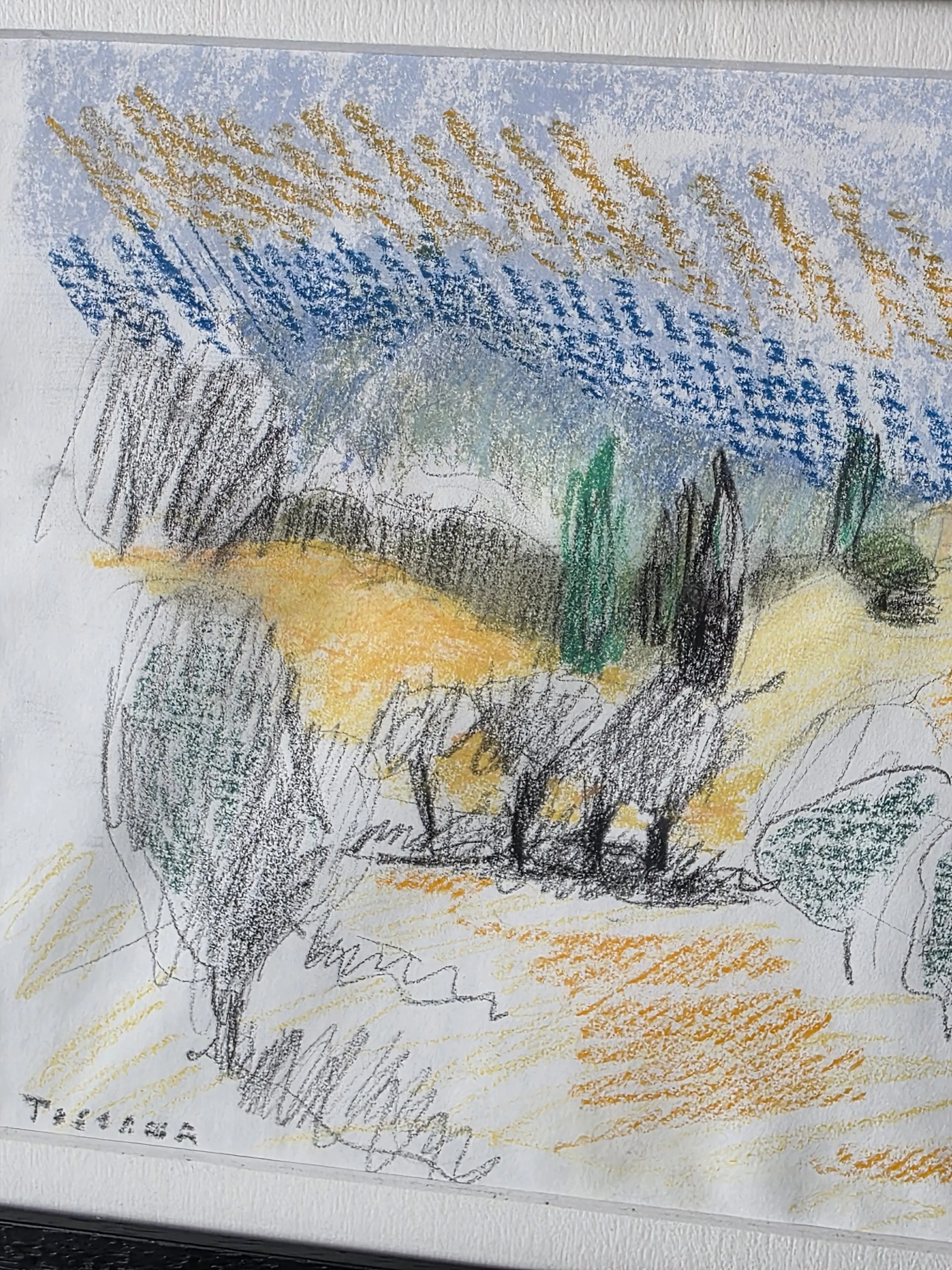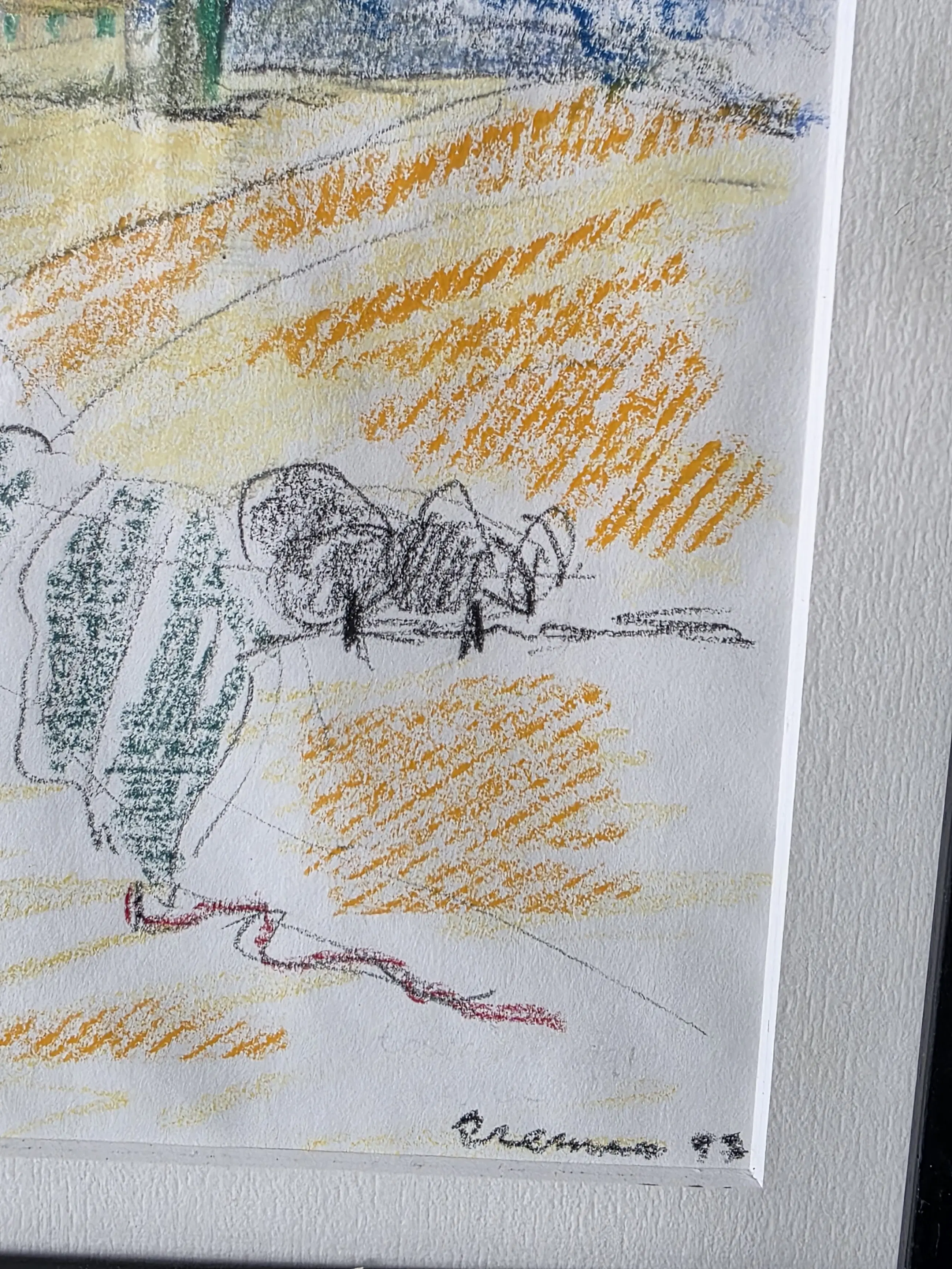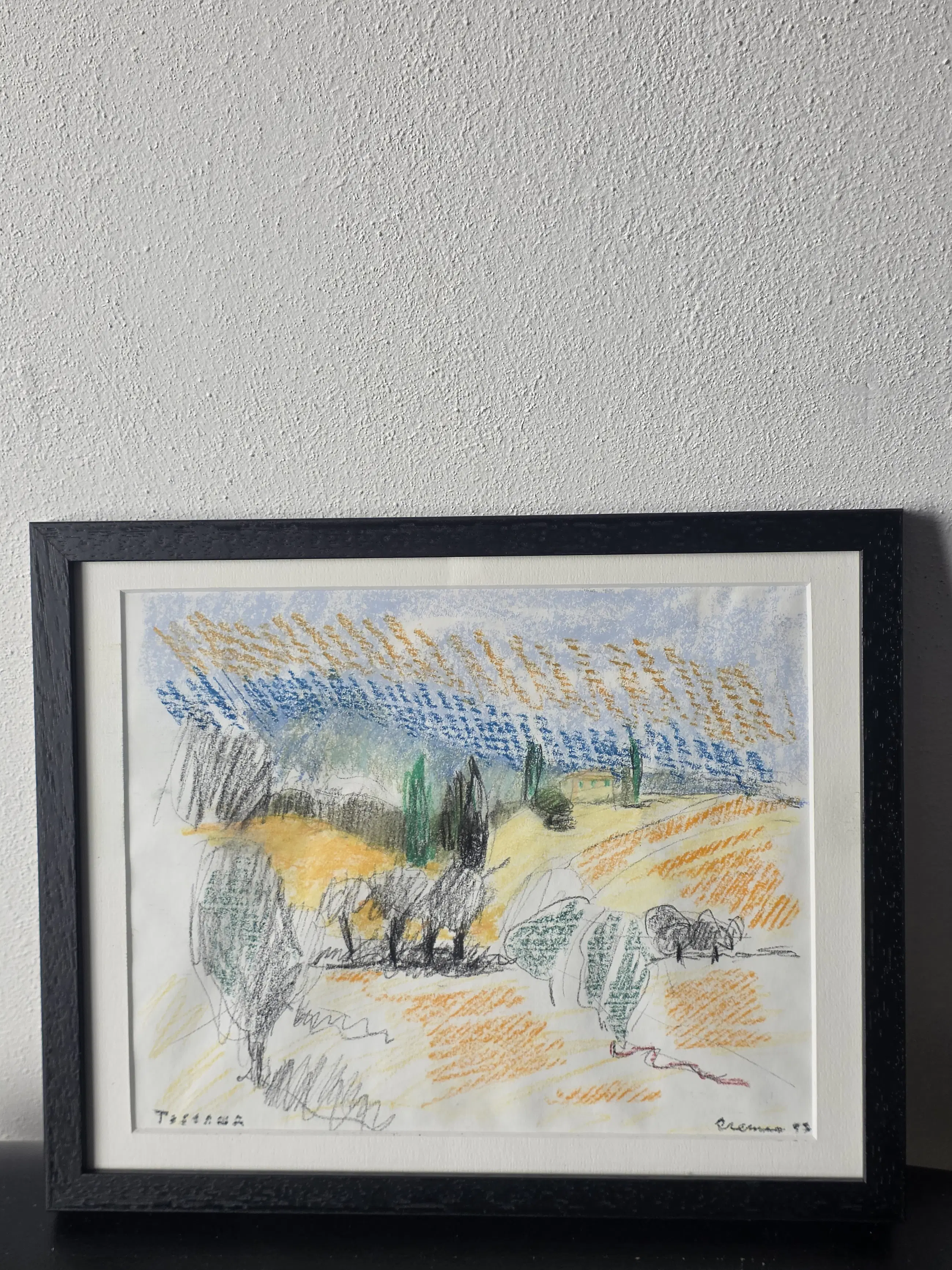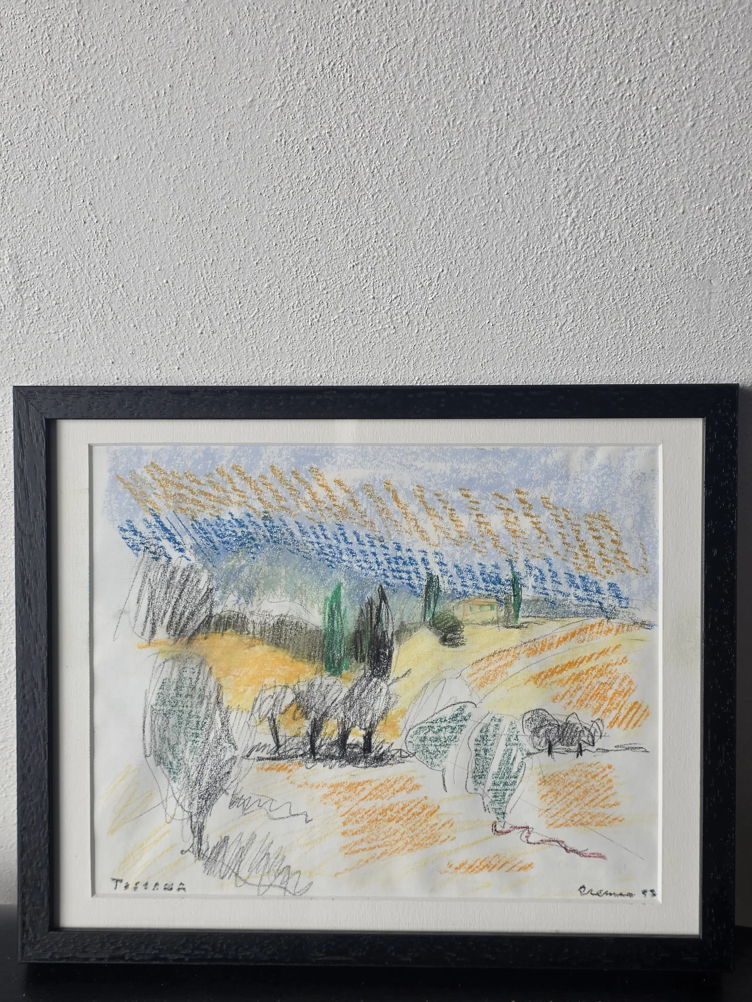 Kleurkrijt, van Jan Cremer 26x20 met lijst 26x32 in goede staat, word zorgvuldig verpakt en verzekerd verzonden.