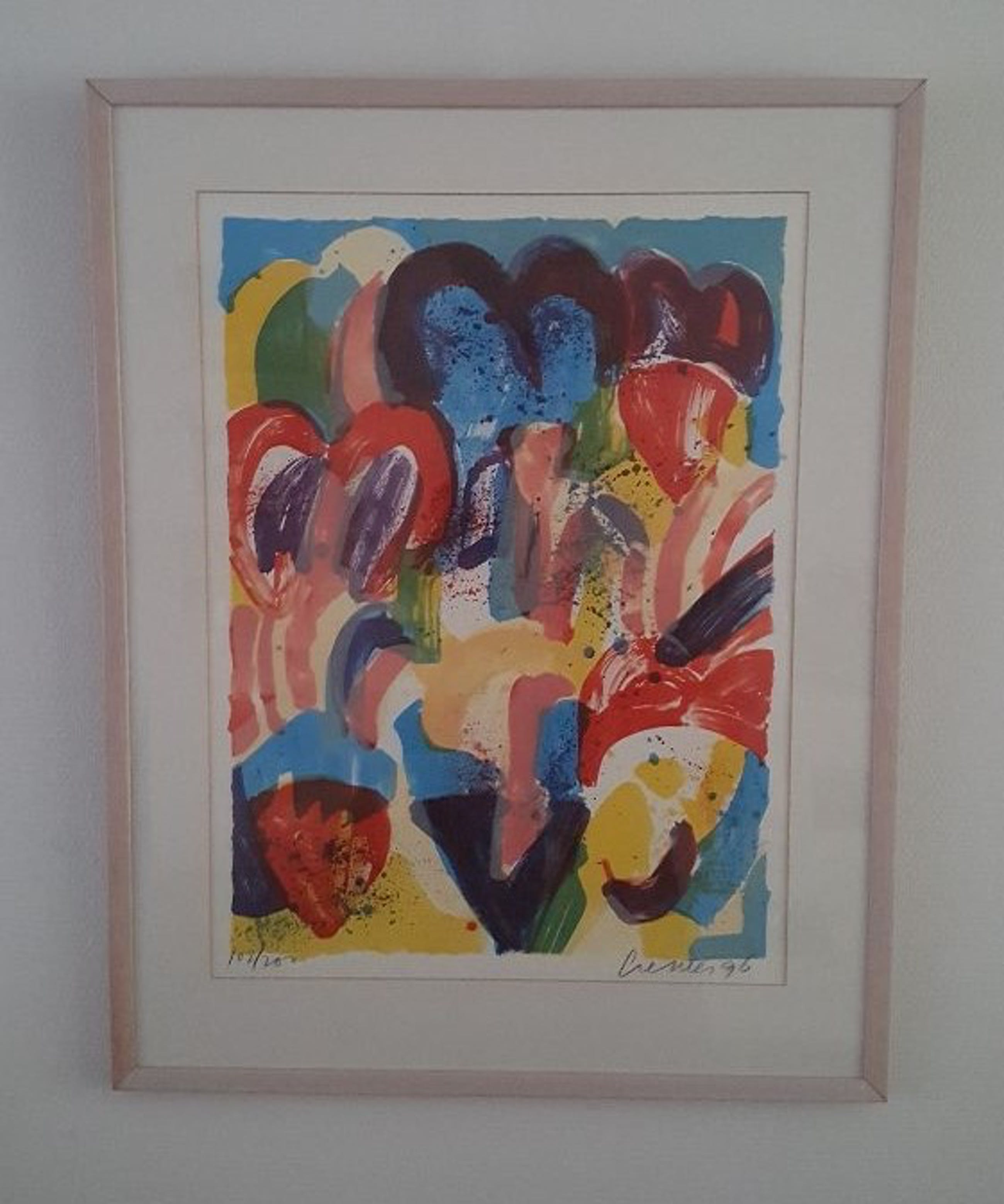 De litho ‘tulpen 2’ van Jan Cremer komt uit 1996 en is handgesigneerd en -genummerd (102 van 200). De drager is geschept papier en de litho is ingelijst. De afmetingen van de lijst zijn in cm. 74 x 2 x 93 (b x d x h). De afbeelding 54 x 72 cm. groot.
