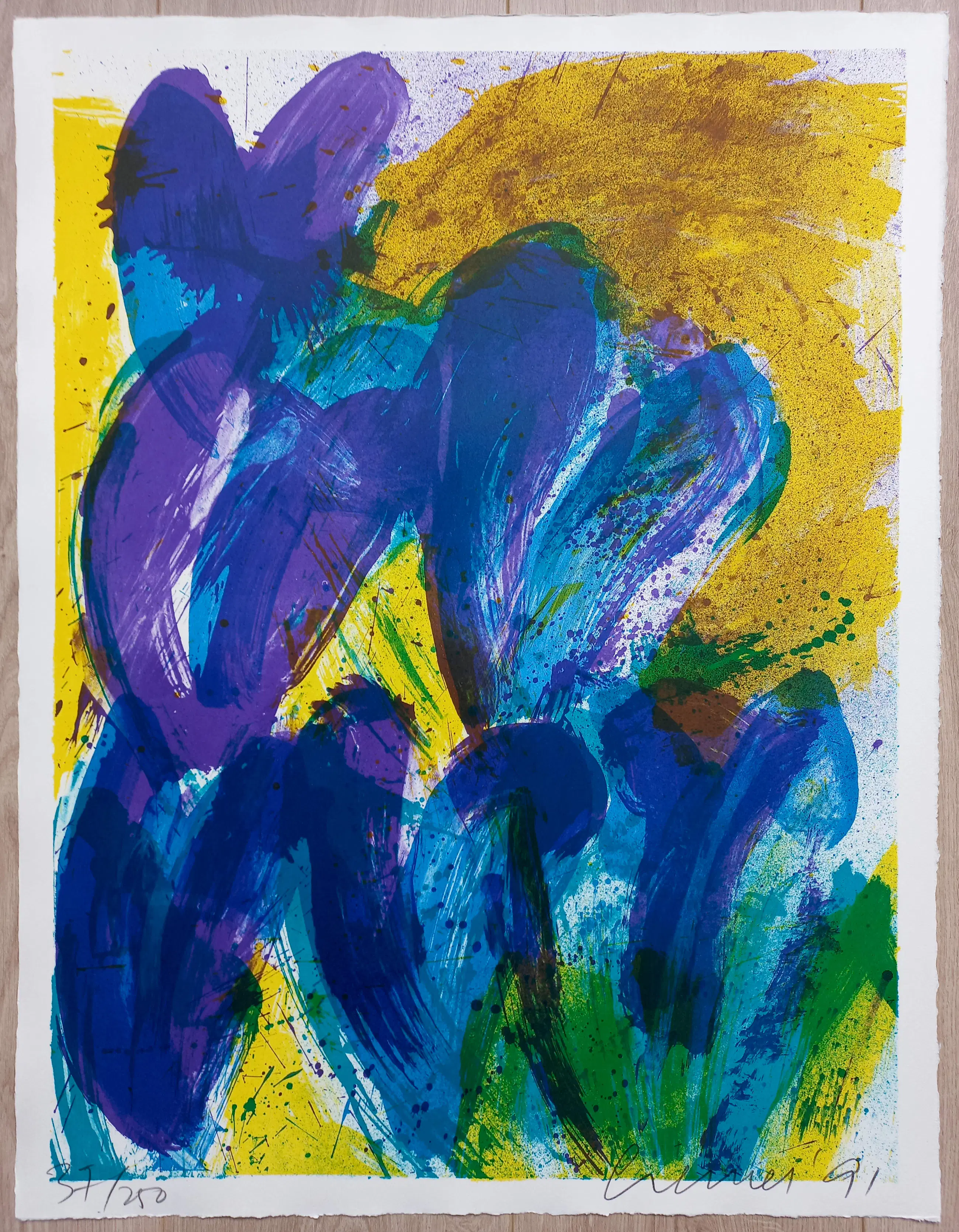 Karakteristieke, kleurrijke tulpen van Jan Cremer. Litho op Hahnemühle papier, met potlood gesigneerd, gedateerd (’91) en genummerd (37/250). In mint conditie. Afgebeeld in “Cremer Grafiek / Prints 1956-1998”, no. 91-13/L, bladzijde 152.