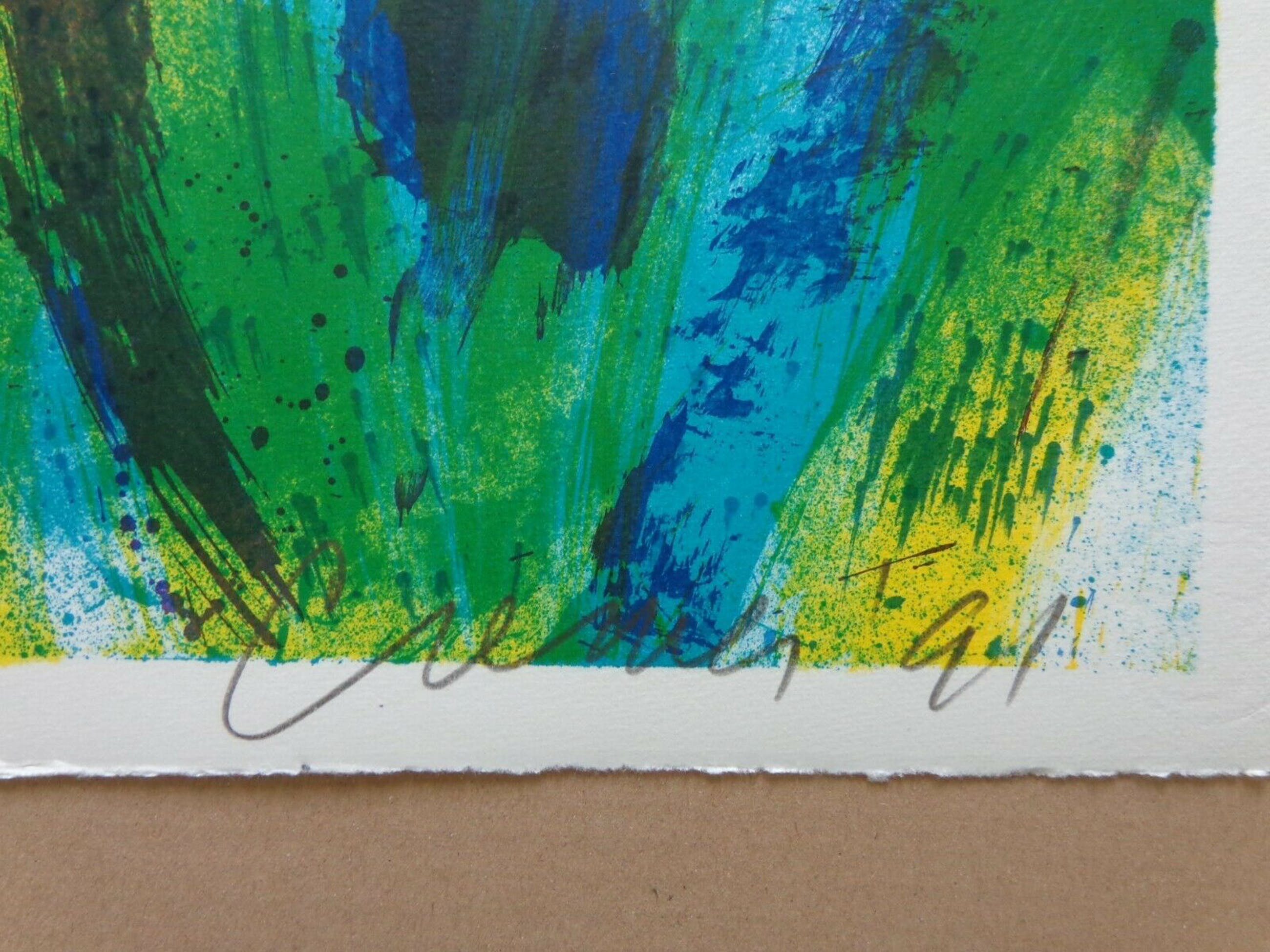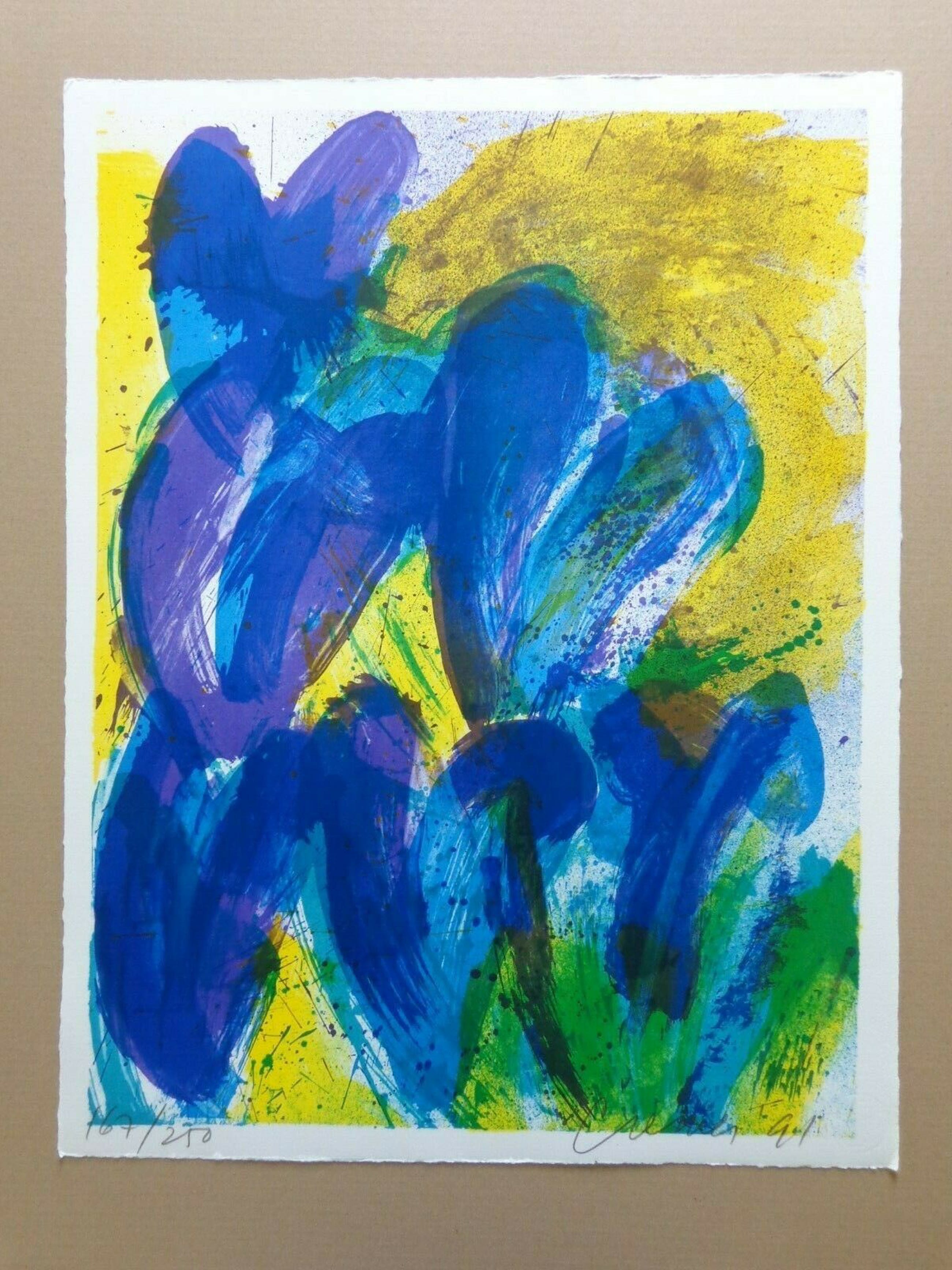 Kleurzeefdruk op papier/Sérigraphie coloré sur papier.