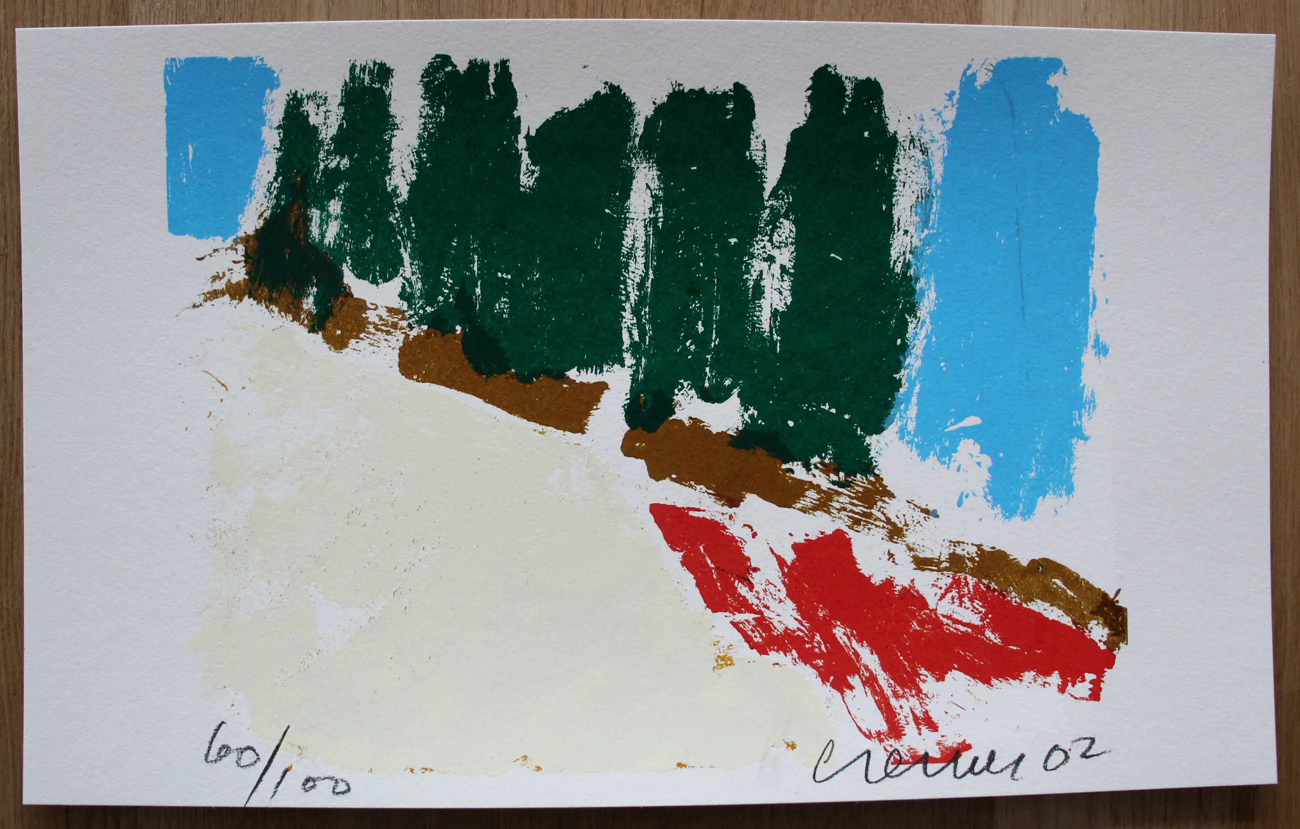 Zeefdruk van Jan Cremer. Titel: Inverno II. Jaar: 2002. Oplage: 57/100. Afmetingen blad: H30 x b50cm. Afmetingen voorstelling: H26 x b38cm. Het werk is rechts onderaan gesigneerd door de kunstenaar. De authenticiteit van het aangeboden werk wordt volledig gegarandeerd. Een certificaat van echtheid kan, op aanvraag, worden gemaild.