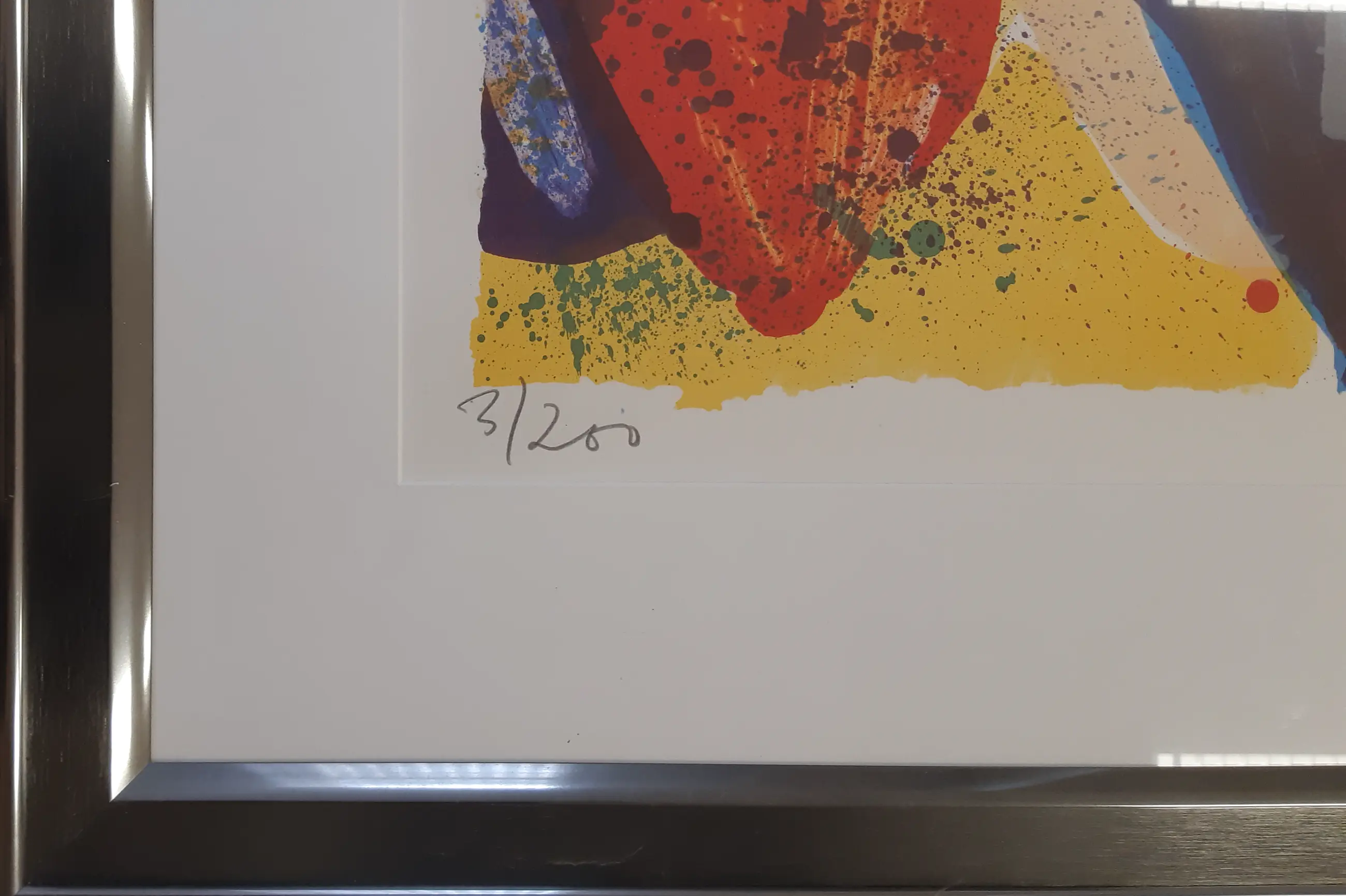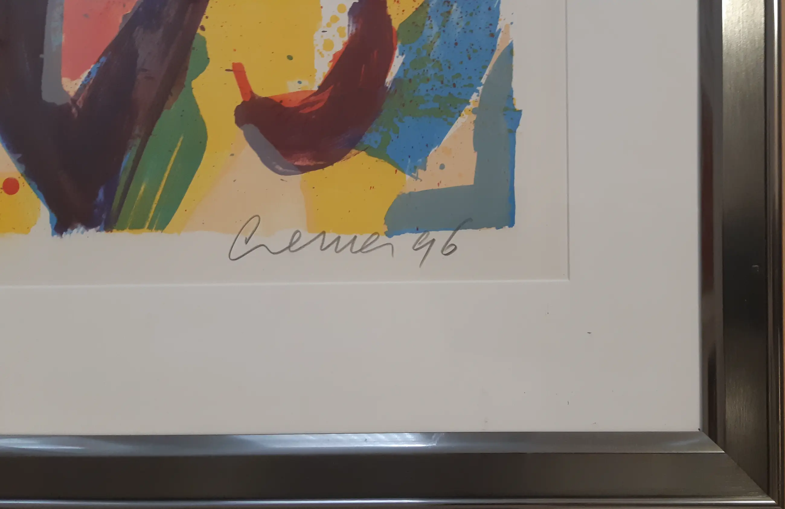 Kleurrijke zeefdruk van de schilder/schrijver Jan Cremer met het voor hem karakteristieke thema. Erg mooi ingelijst in een metalen, gun-metal kleurige lijst en voorzien van een Passe-partout. Gesigneerd , gedateerd en genummerd in potlood door de kunstenaar. Dit is nummer drie uit een serie van slechts tweehonderd exemplaren. Het werk is afgebeeld op pagina 200 in het boek " CREMER grafiek/ prints 1956-1998".