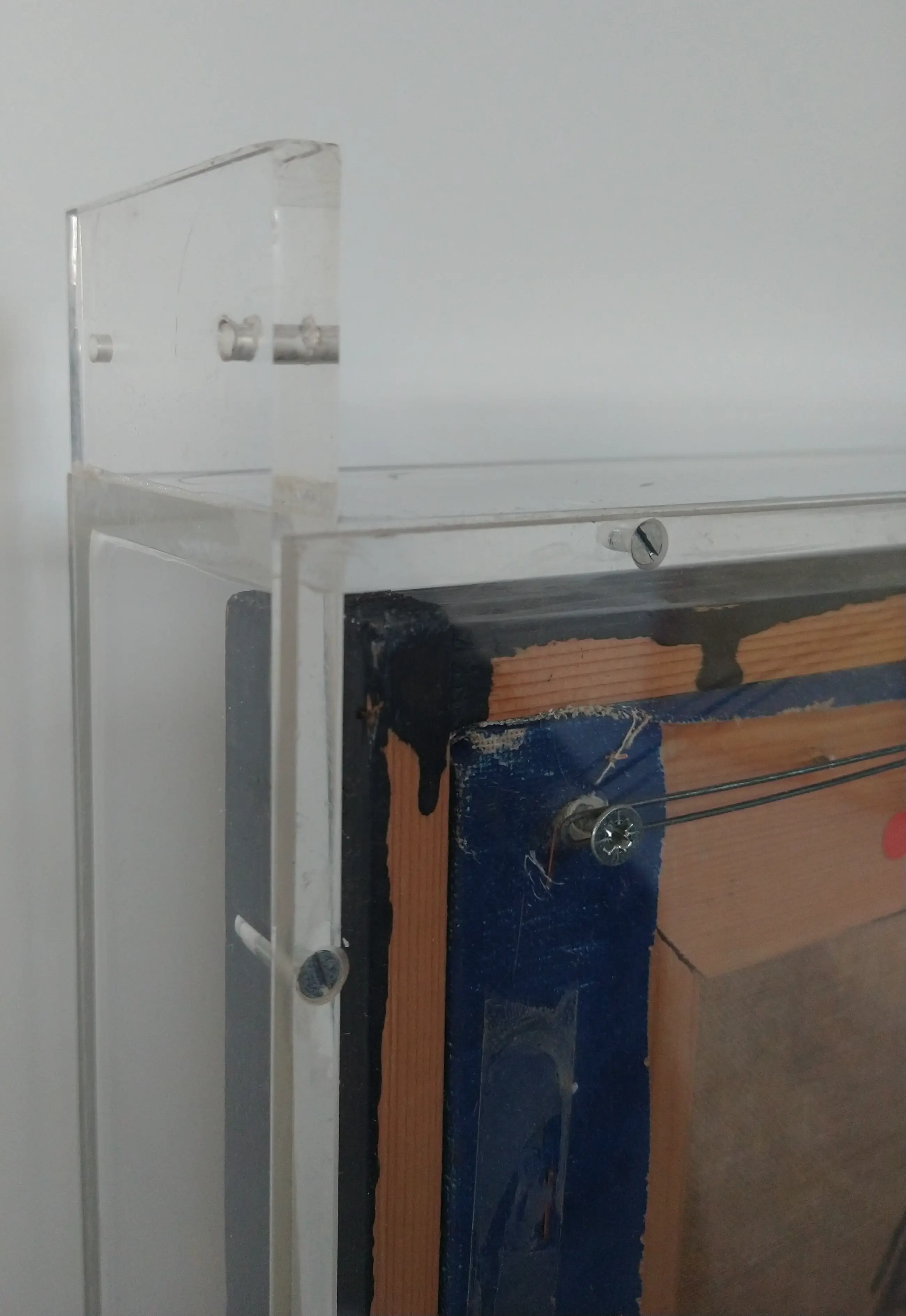 Werk is in zeer goede originele staat. Oorspronkelijke plexiglas baklijst / vitrine zit er nog omheen. Deze is op één plek aan de kopse kant (zijkant) hersteld, verder in zeer goede staat