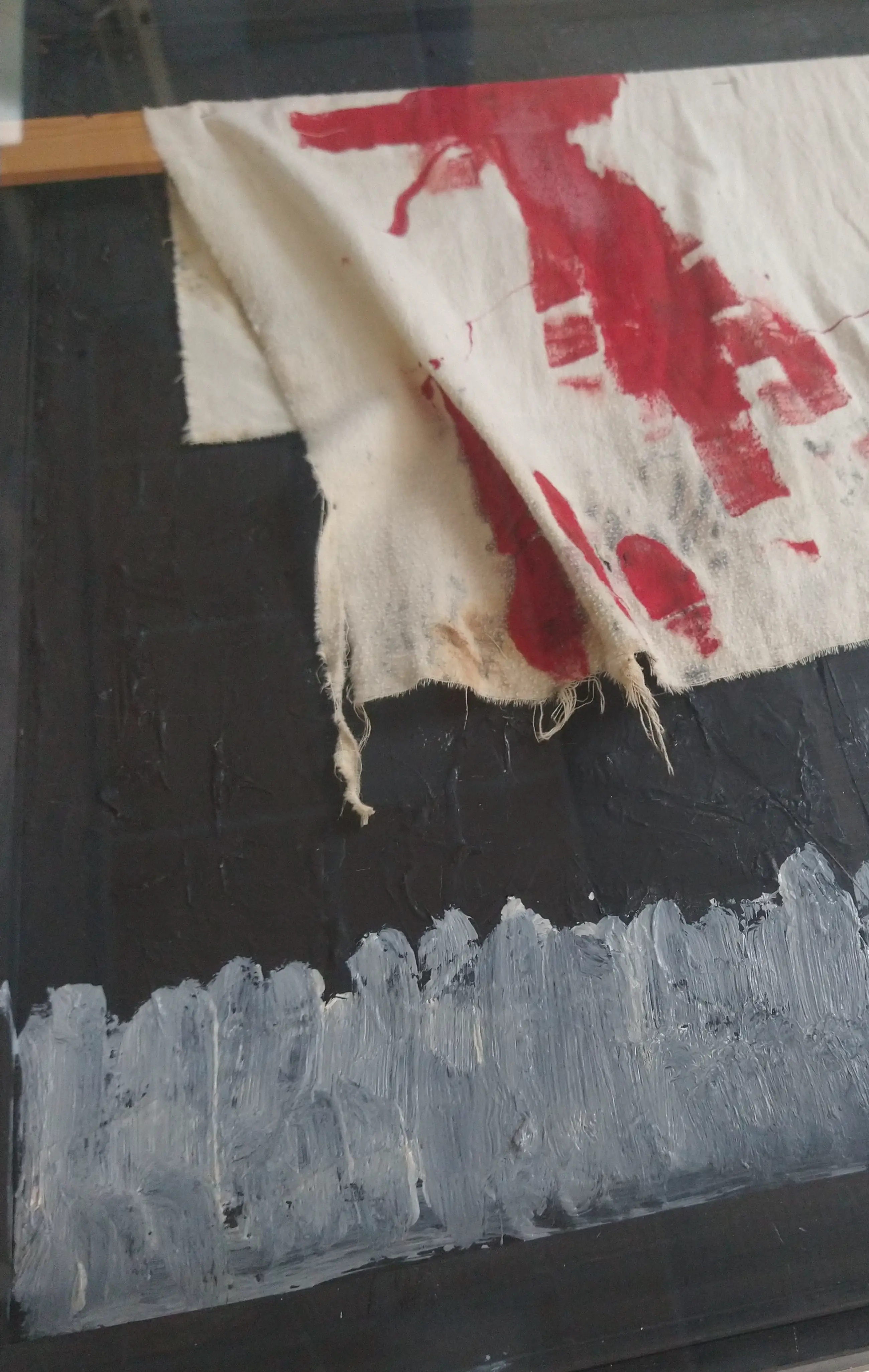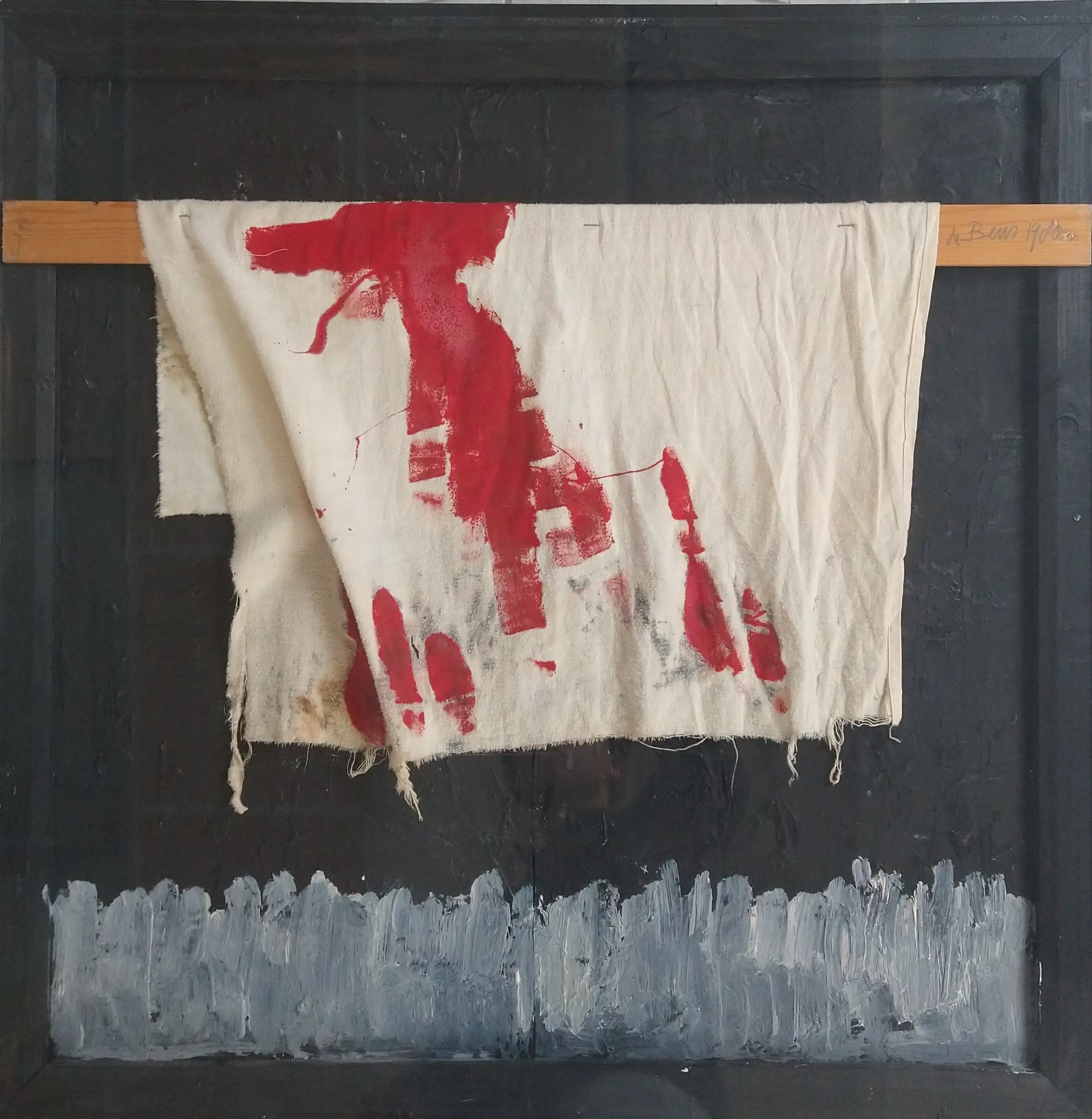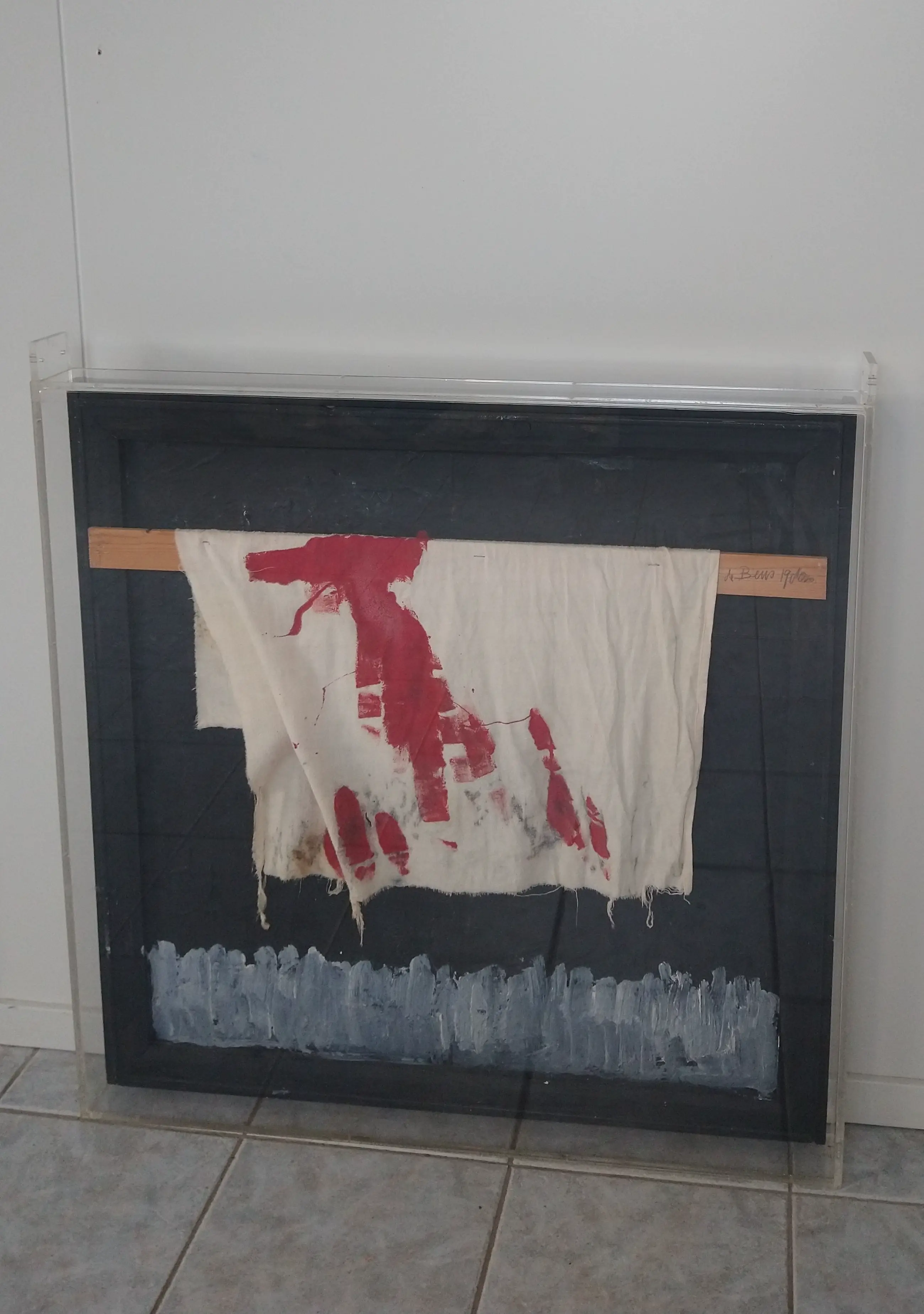 Olieverf en assemblage van Jan de Beus Vroeg werk Aangekocht door Prof. Dr. Brummelkamp voor de AMC Kunstcollectie Enkele jaren geleden afgestoten door laatstgenoemde