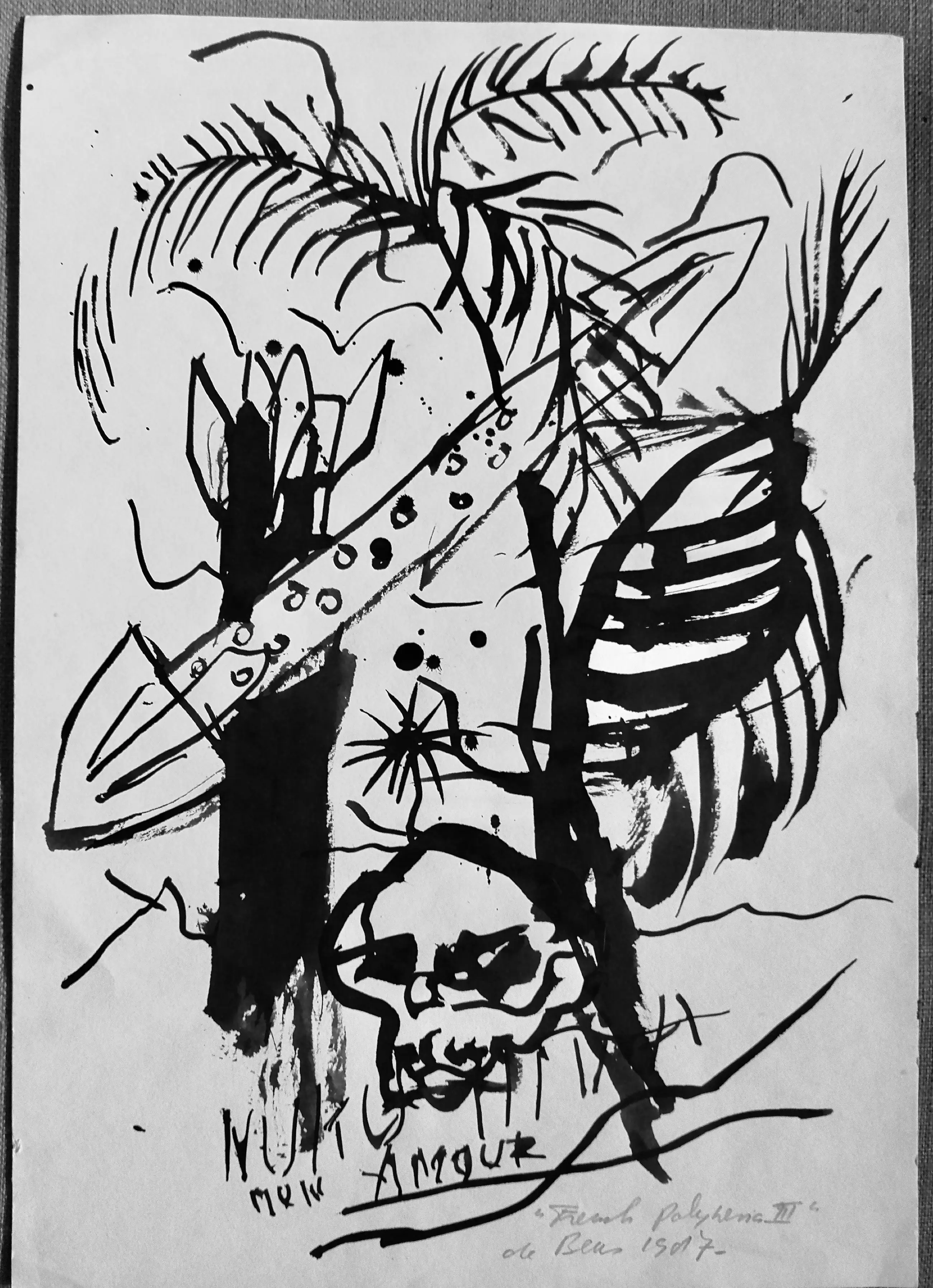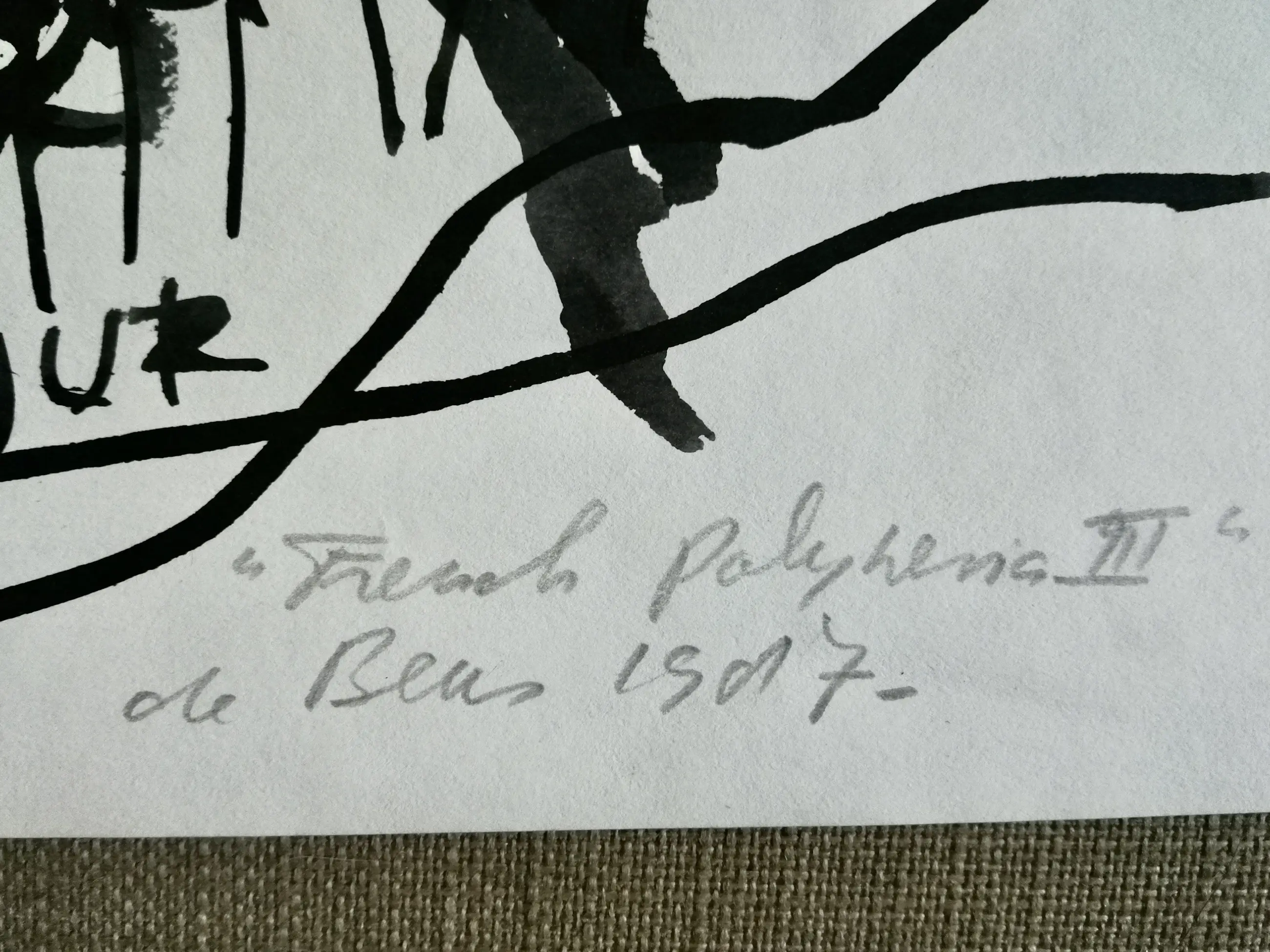 Tekening van Jan de Beus, gesigneerd, gedateerd en getiteld in potlood. Verzending tussen twee platen, 9. 50 euro, aangetekend 11,45