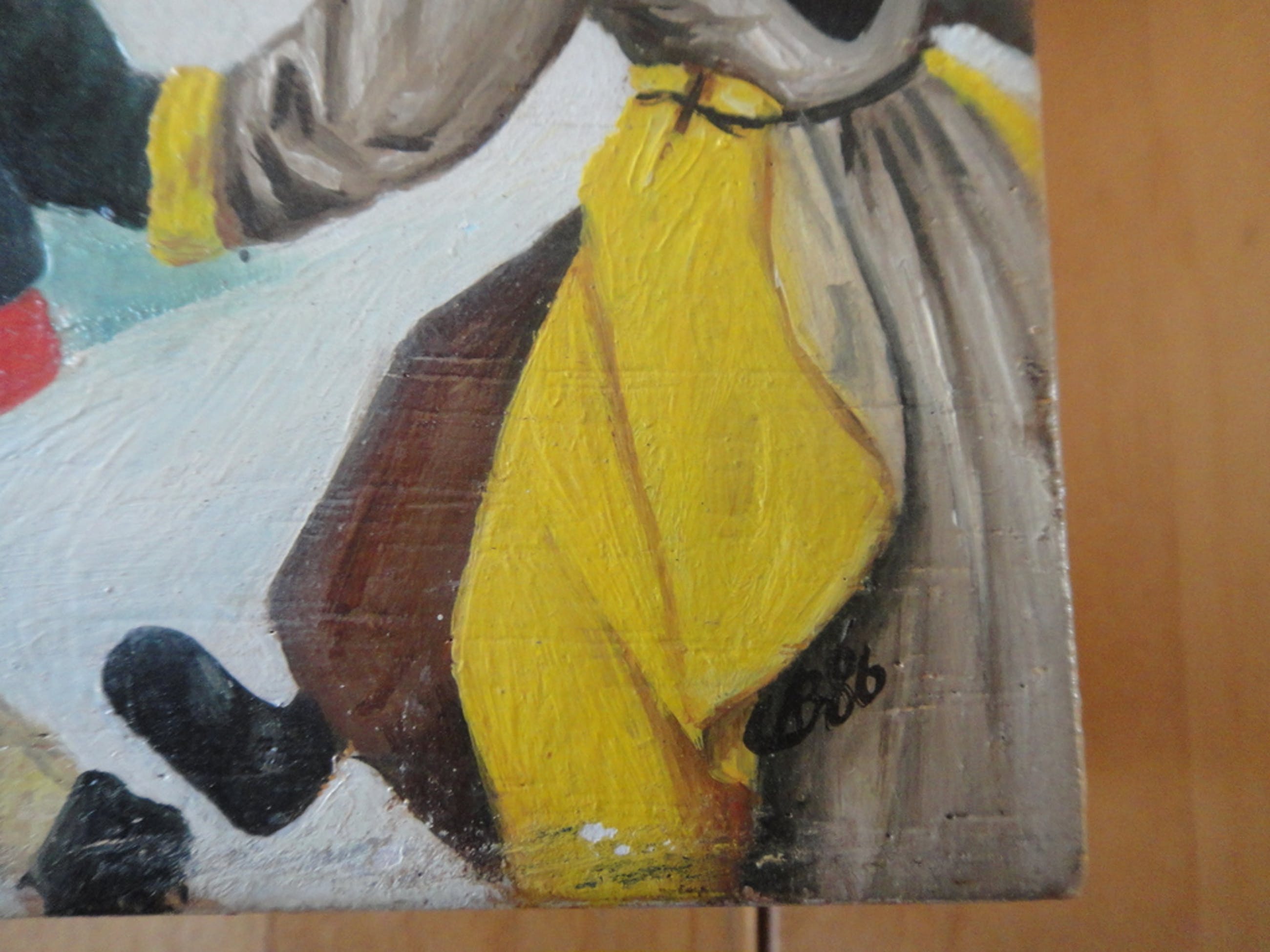 Dit werkje uit 1986 is rechtsonder gemonogrammeerd: 'DB'86' en is geschilderd op paneel.
