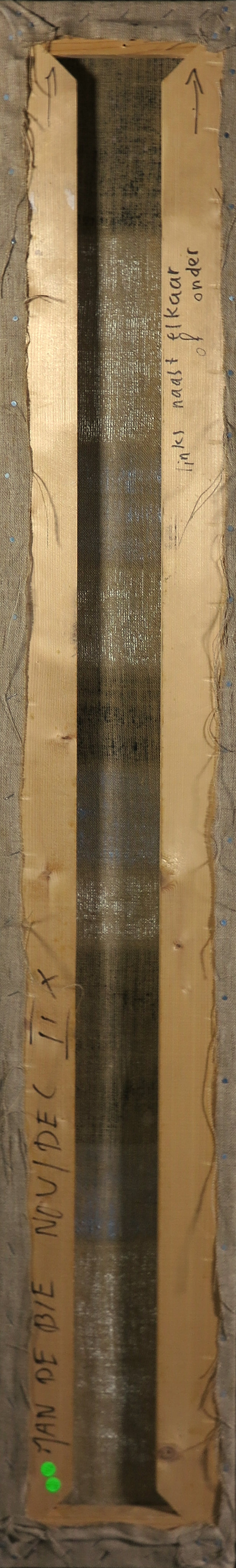 Het formaat per doek van dit tweeluik is: hoogte 130 cm x breedte 20 cm.