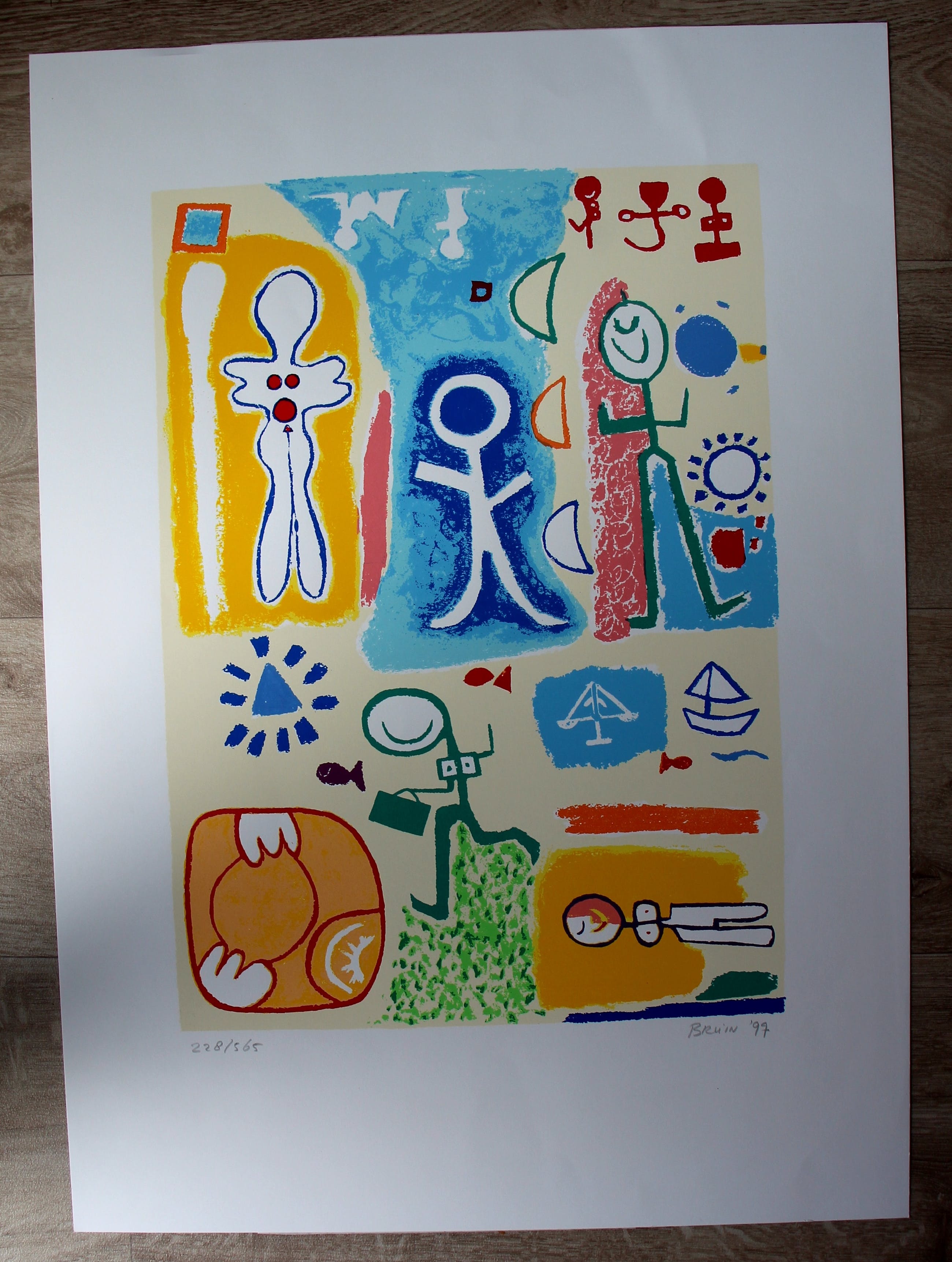 Zeefdruk van Jan de Bruin uit 1997. Nummer: 228/565. Afmetingen blad H70 x b50cm. Afmetingen voorstelling: H49 x b35.5cm. Het werk is rechtsonder gesigneerd door de kunstenaar. De authenticiteit van het aangeboden werk wordt volledig gegarandeerd. Een certificaat van echtheid kan, op aanvraag worden gemaild.