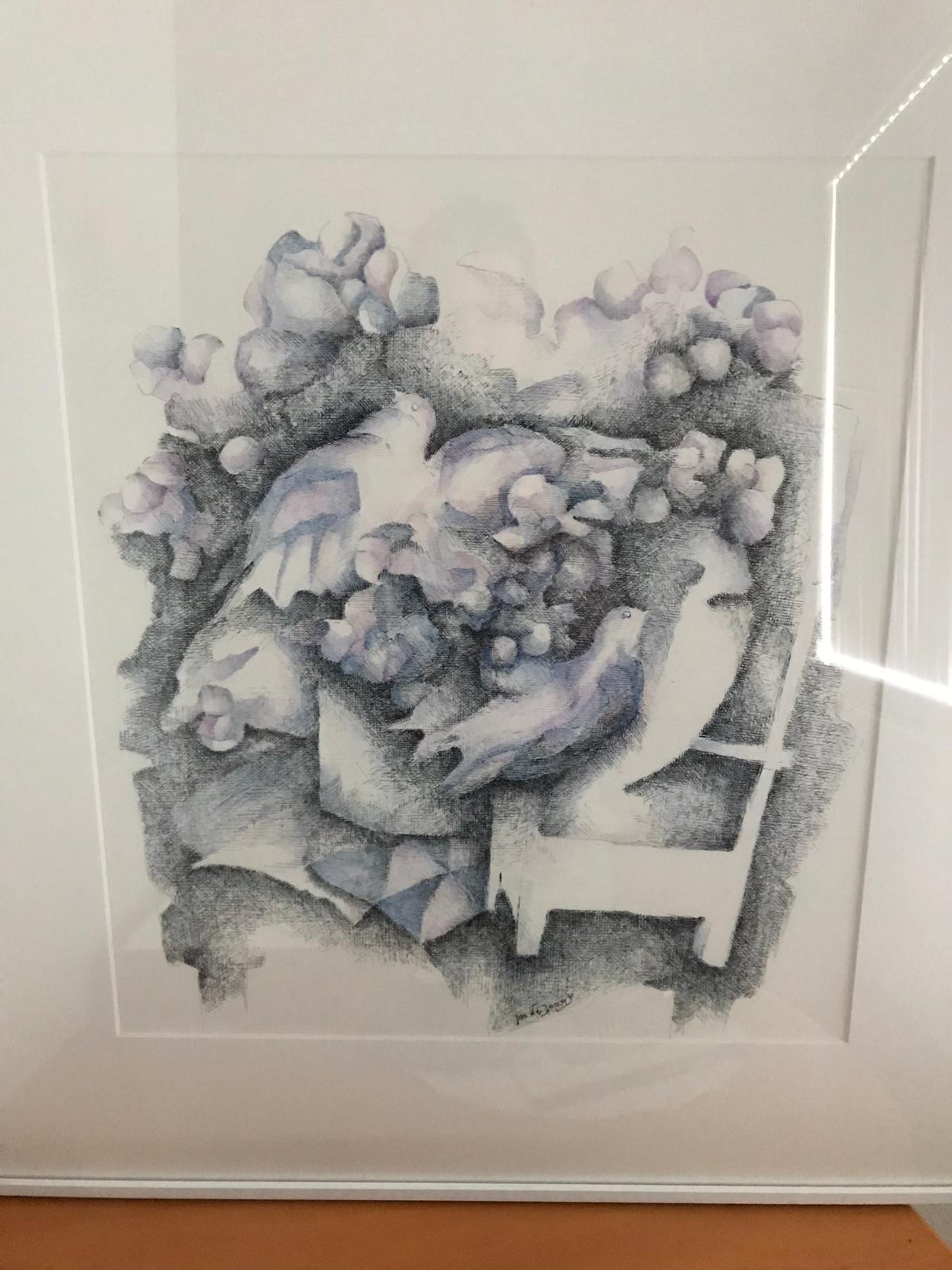 Mijn ouders kochten deze 2 tekeningen in 1993 bij kunsthandel Mecki in Maastricht. Ze zijn ingelijst in passepartout. Ze zijn gesigneerd (1991) en de originele verkoopbon zit achterop geplakt.