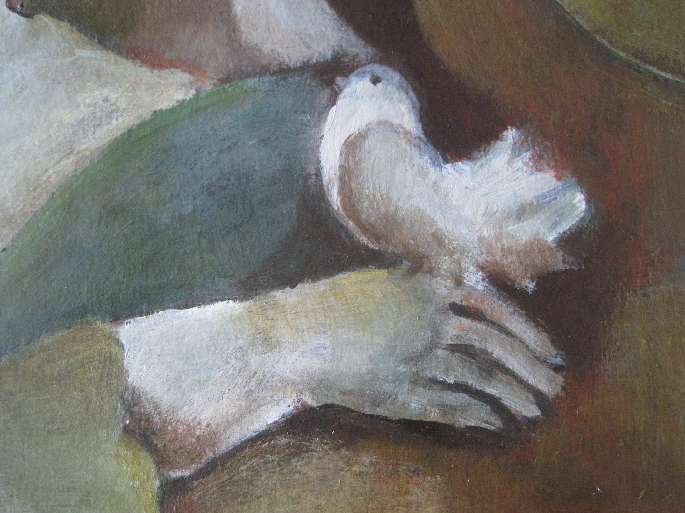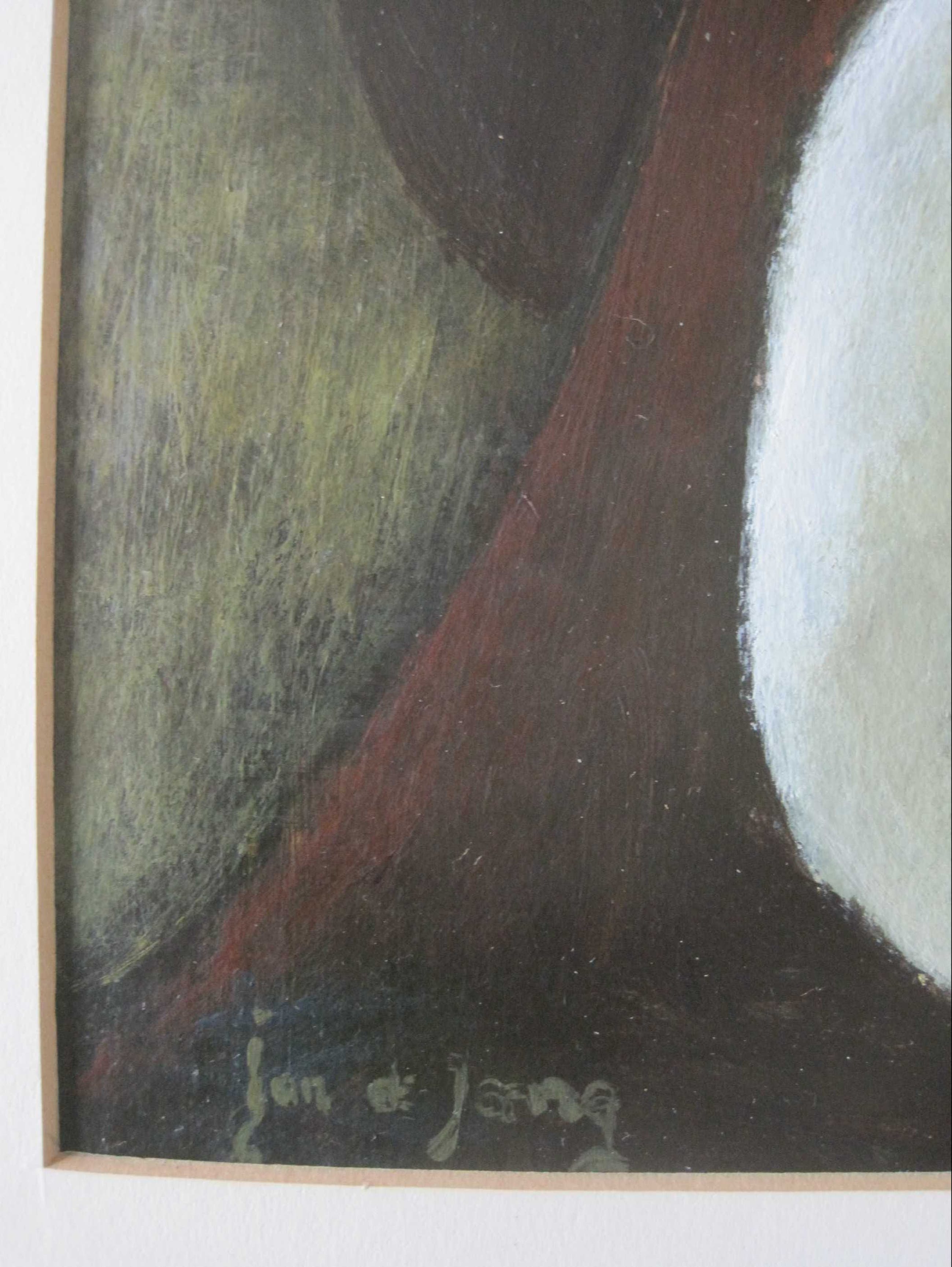 Een stemmig en enigszins geheimzinnig aandoend schilderij door Jan de Jong. Zijn schilderijen doen symbolisch aan. Jan de Jong woont en werkt in Eindhoven.