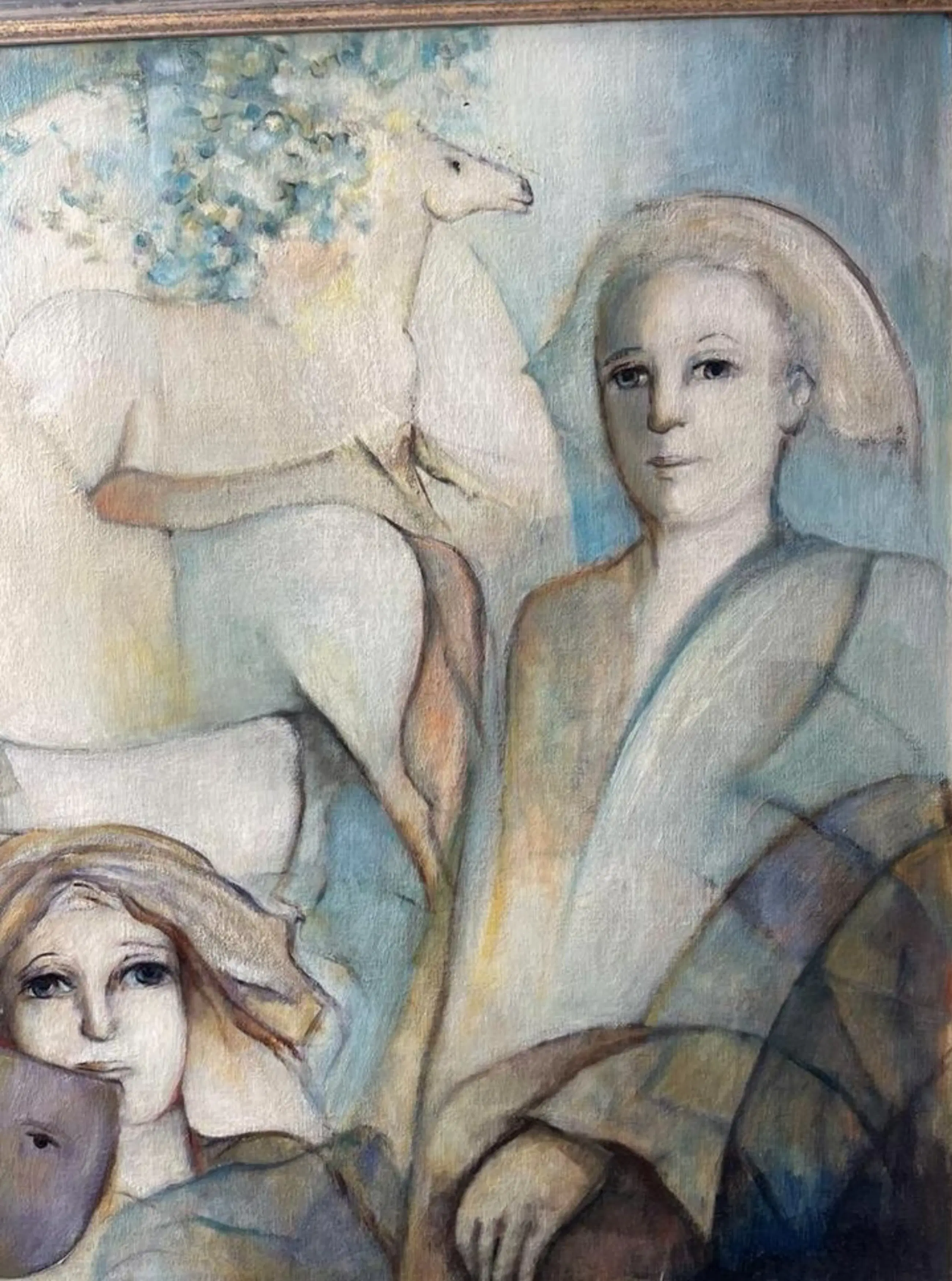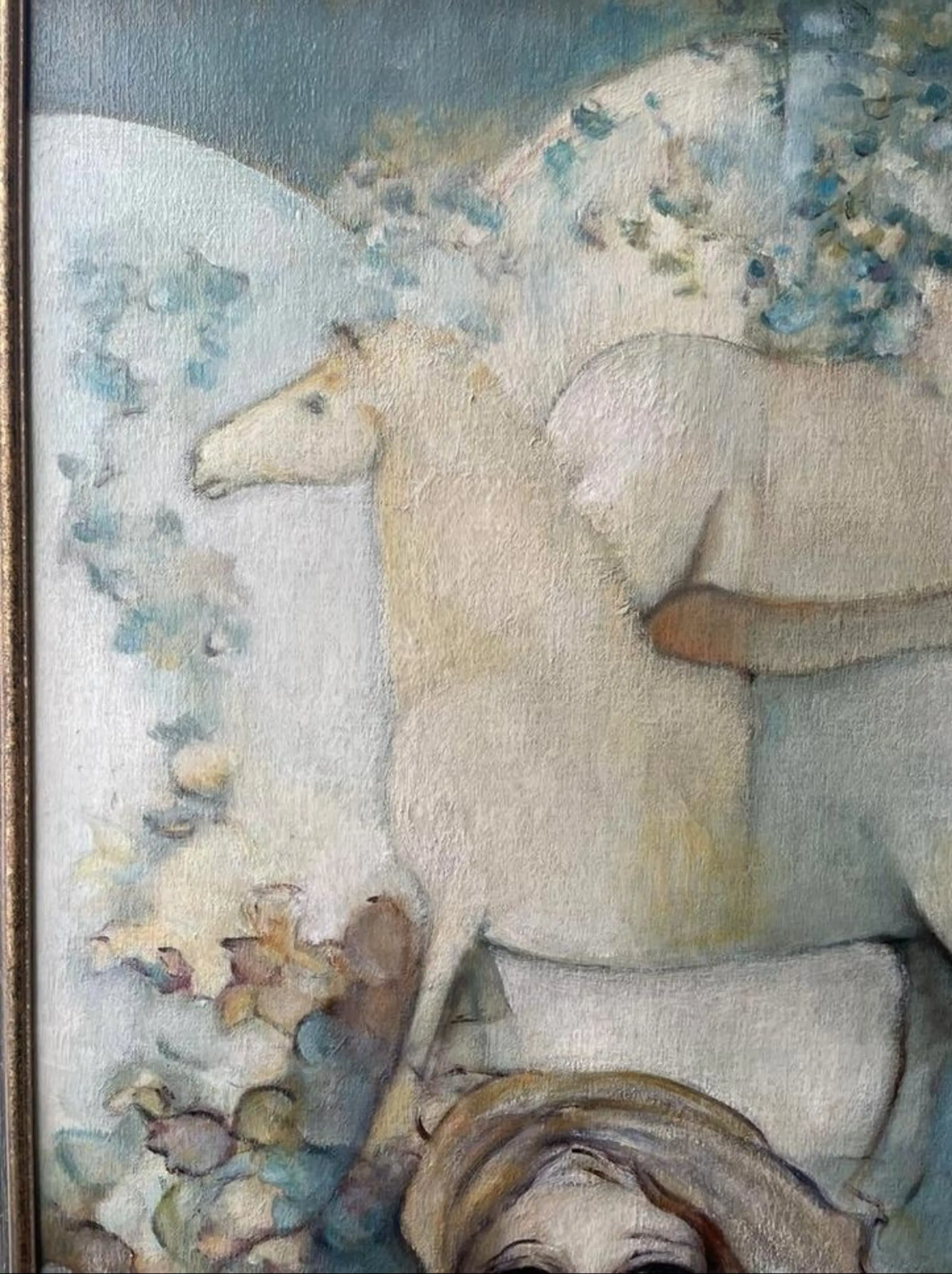 Jan de Jong (1951) - Olieverf op doek- “Mascarade” 1988 Jan de Jong- Sfeervol schilderij Titel: Mascarade” Jaartal: 1988 Techniek : olieverf Stijl: expressionisme Drager canvas (doek) Ingelijst Afmetingen: canvas: 80 x 80 cm. Lijst 90 x 90 cm Gesigneerd: handgesigneerd omschrijving: Jan de Jong (1951), kunstschilder, woont en werkt te Eindhoven. Catalogus waarde: E950. Conditie: zeer goed. Een schilderij met een voorstelling van figuren en paarden in een dromerige stijl. Het kunstwerk is handgesigneerd rechtsonder en getiteld op de achterkant.