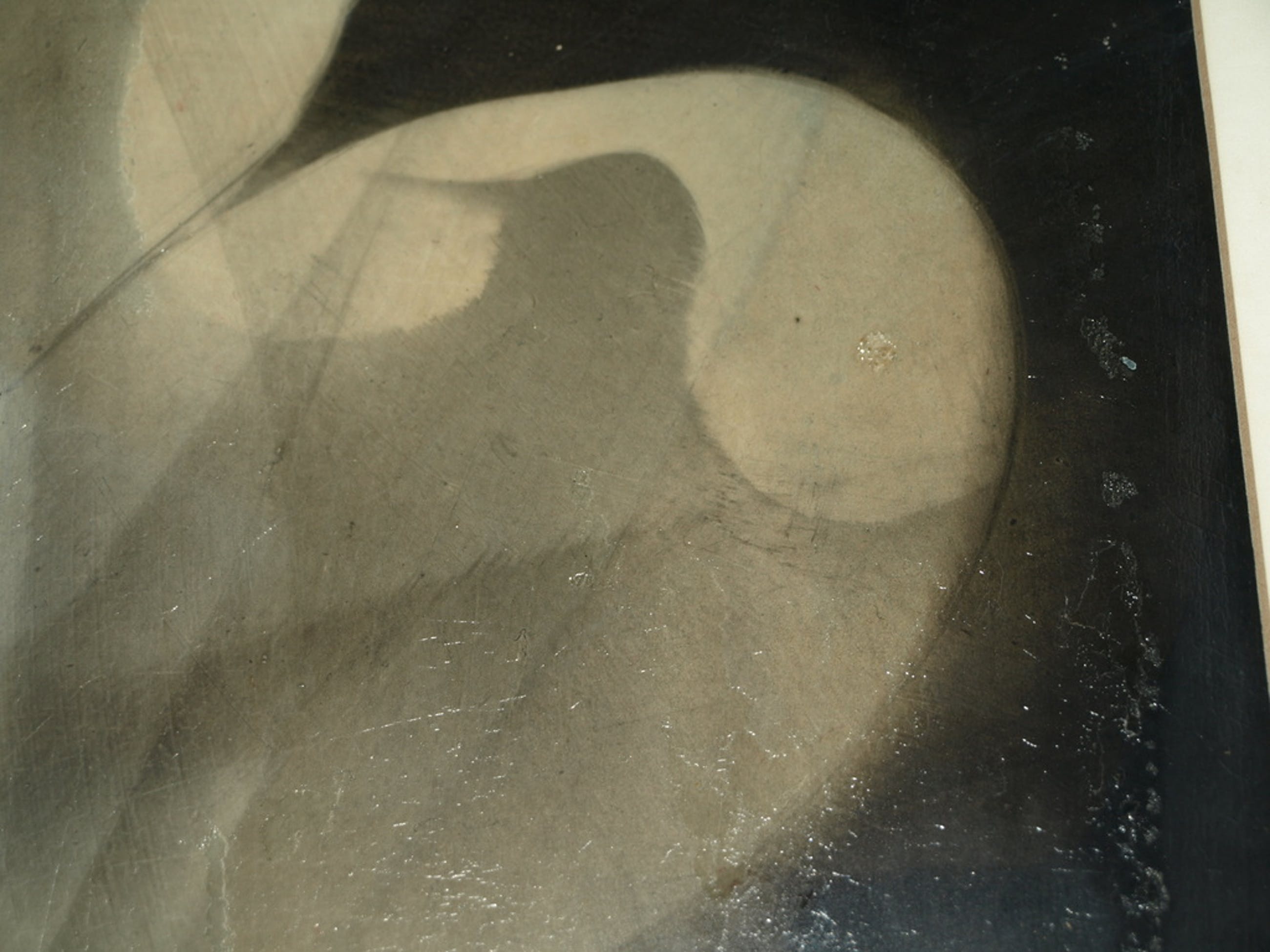 Conditie: Het werk heeft hier en daar wat craquelé, slijtplekjes en verfverlies. De lijst heeft slijtplekjes.
