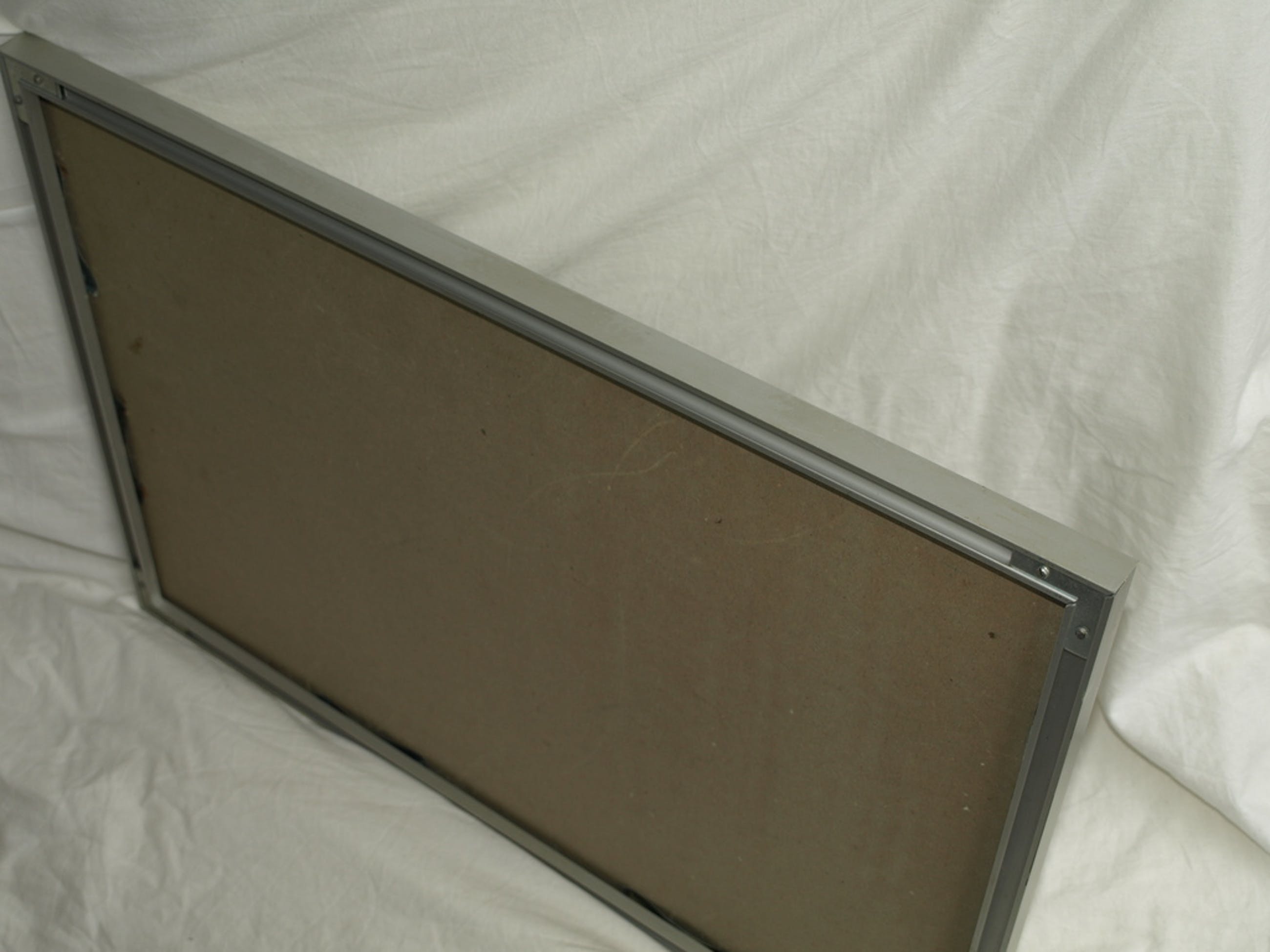 Ingelijst: In een aluminiumlijst met passe-partout en glasplaat.