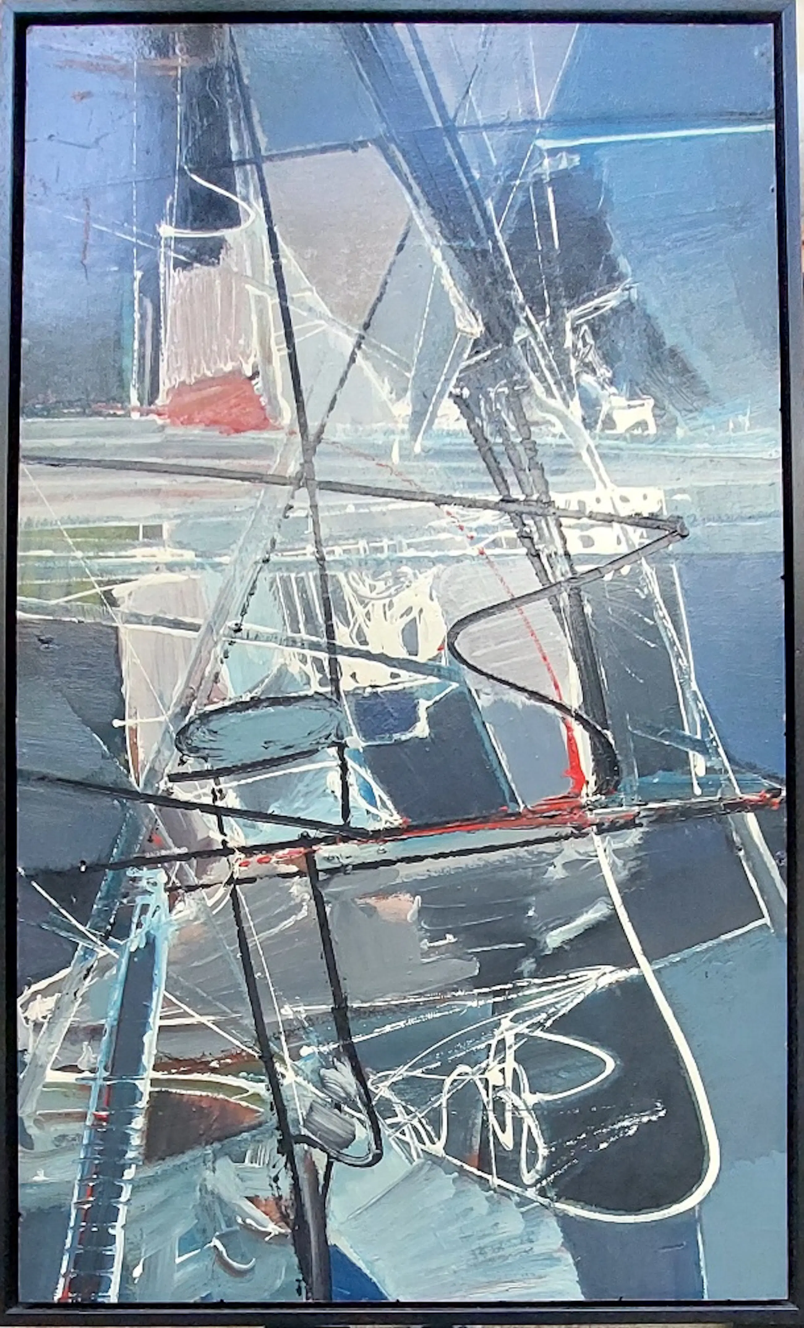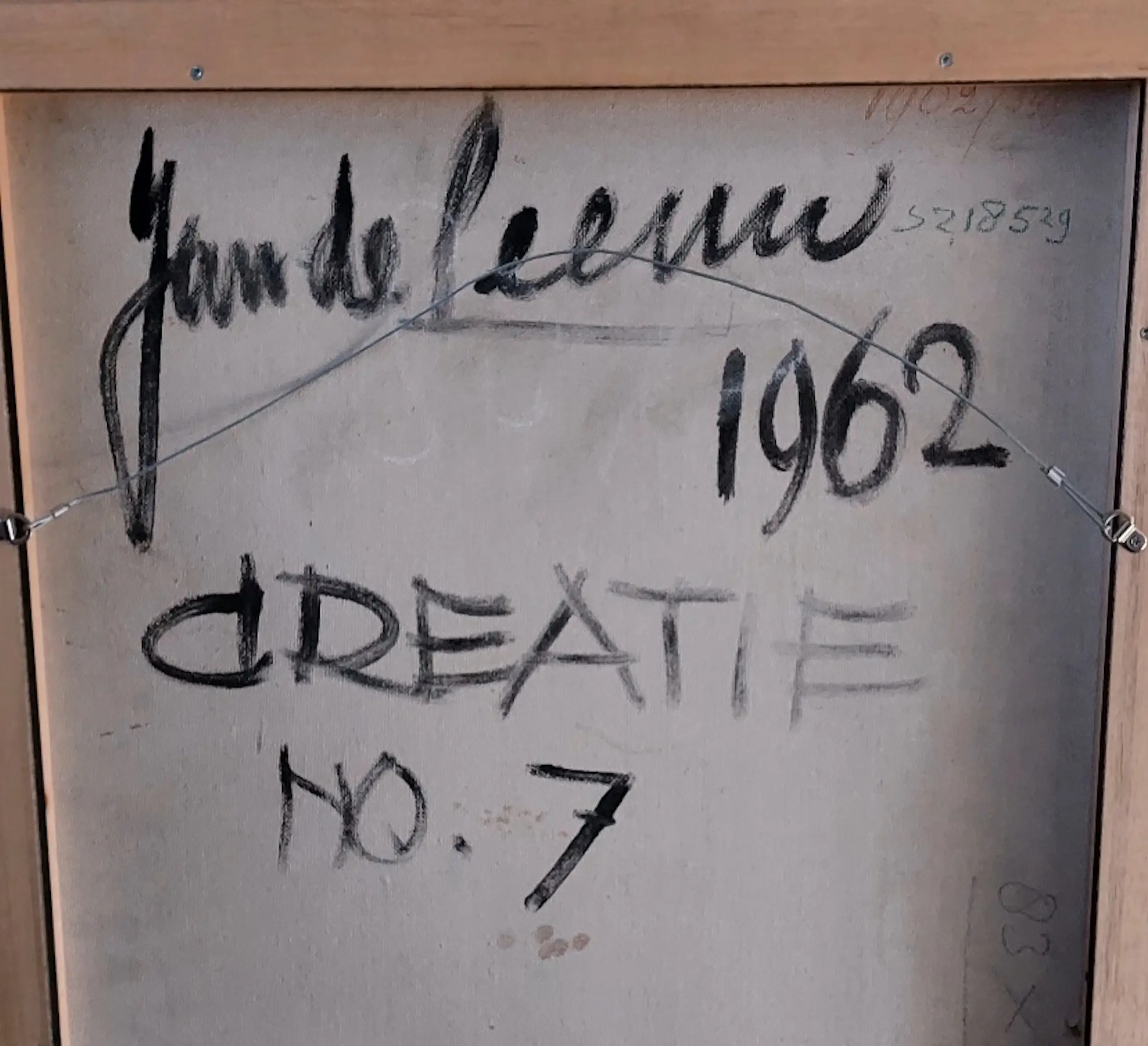 Dir fraaie abstracte schilderij is door de kunstenaar aan de achterzijde voorzien van zijn signatuur en titel. Recent voorzien van nieuwe baklijst. Jan de leeuw (1908-1988) Autodidact, veelzijdig kunstenaar, schilderde oorspronkelijk figuratief, maar koos later voor de abstractie. Maakte reizen naar Frankrijk en de Verenigde Staten. Woonde en werkte onder andere in Bergen (NH). Was lid van Arti en Amicitiae in Amsterdam.