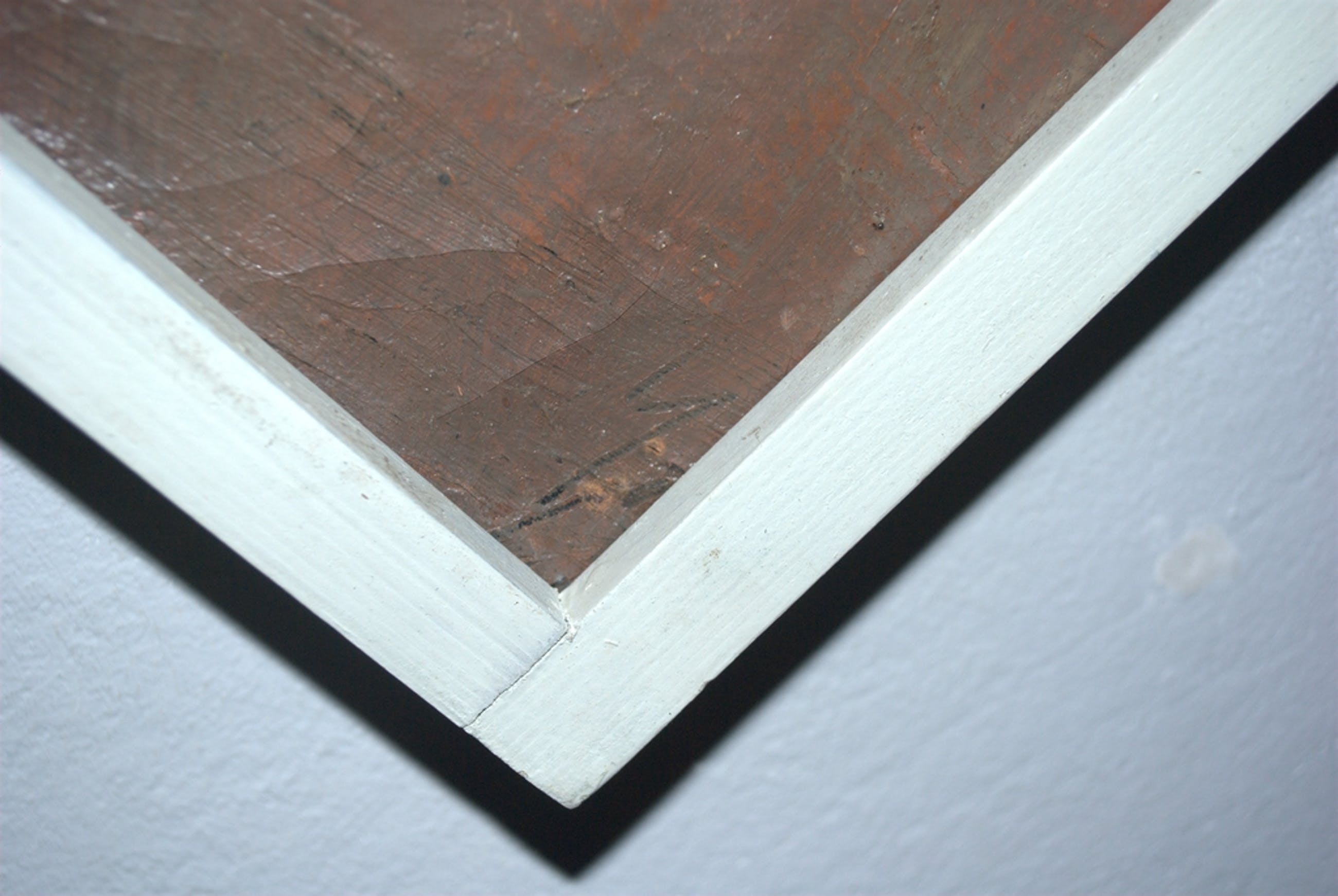 In een eenvoudige houten lijst in goede gebruikte staat.
