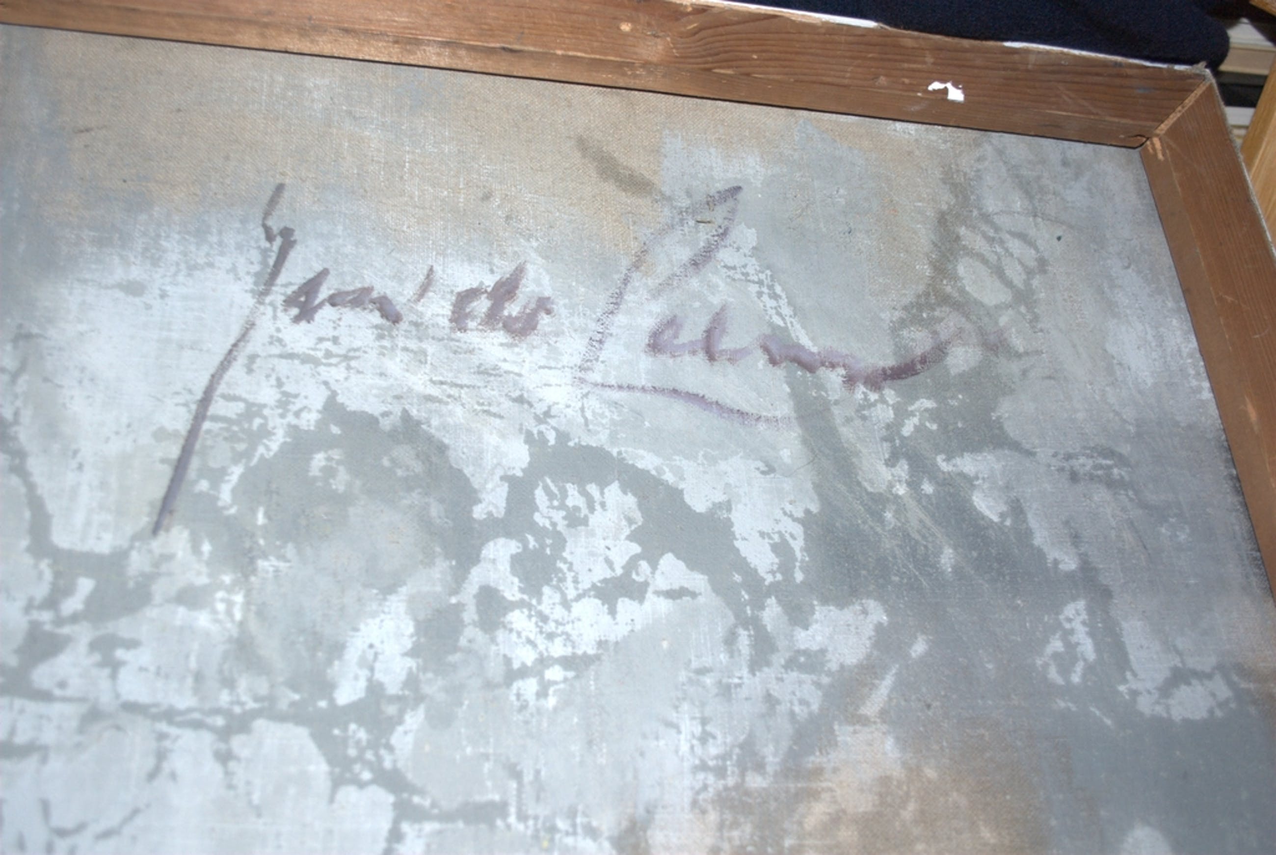 Gesigneerd aan de achterzijde en deels aan de voorzijde r.o.