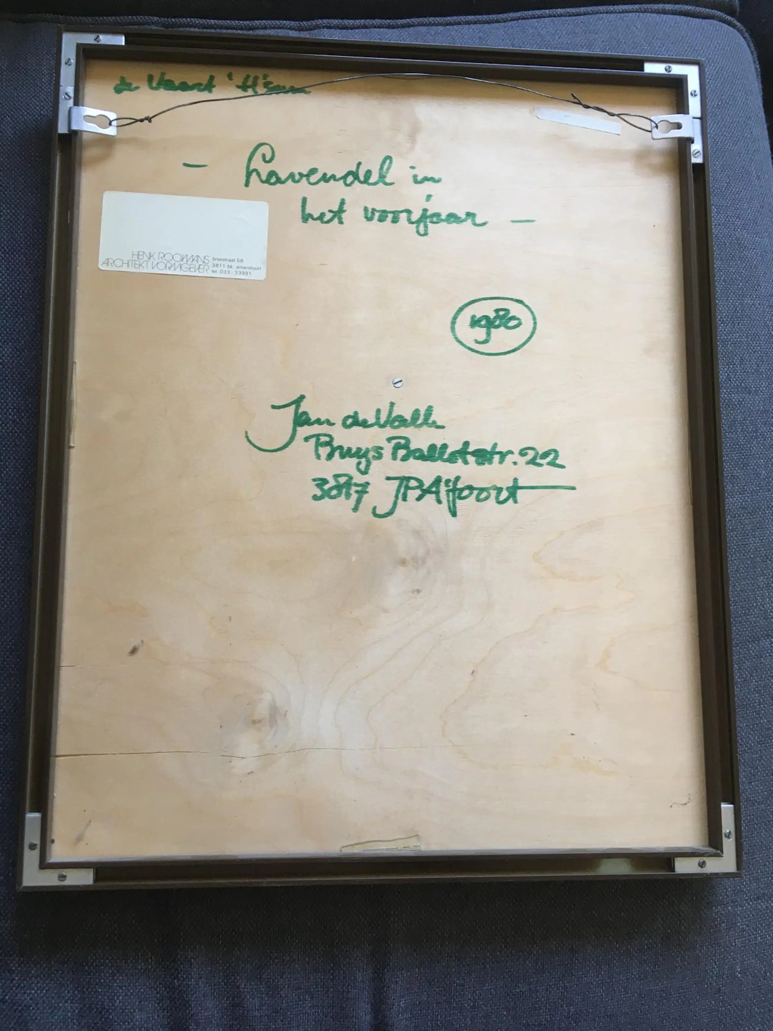 Het werk is af te halen op locatie. Als koper dient u zelf verpakkingsmateriaal mee te nemen. De locatie is: Heerenveen, Nederland