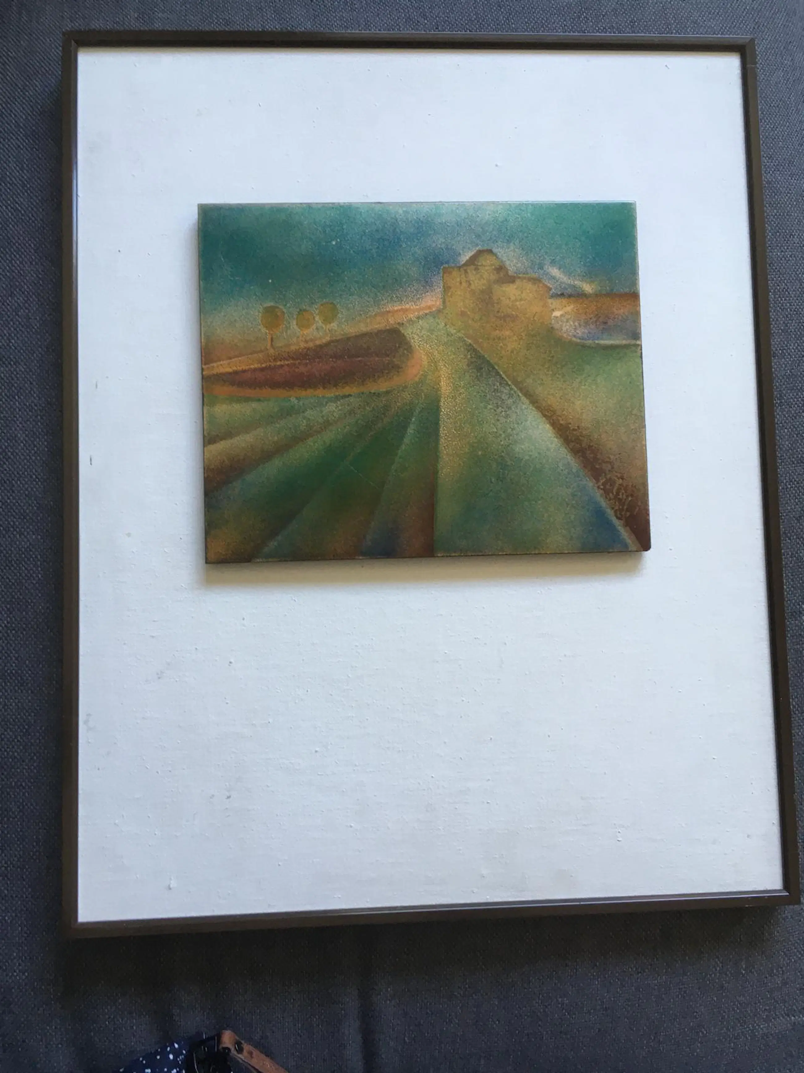 Prachtig keramiek schilderij op paneel. Ingelijst door lijstenmaker Henk Roomans. Gemaakt in 1980
