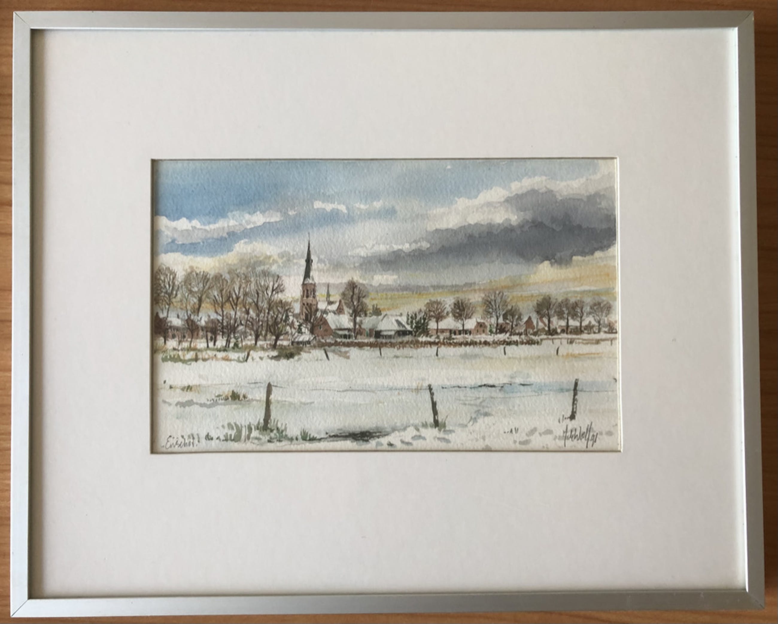 Het betreft een mooie ingelijste aquarel van het landschap van Berkel Enschot - hand gesigneerd.