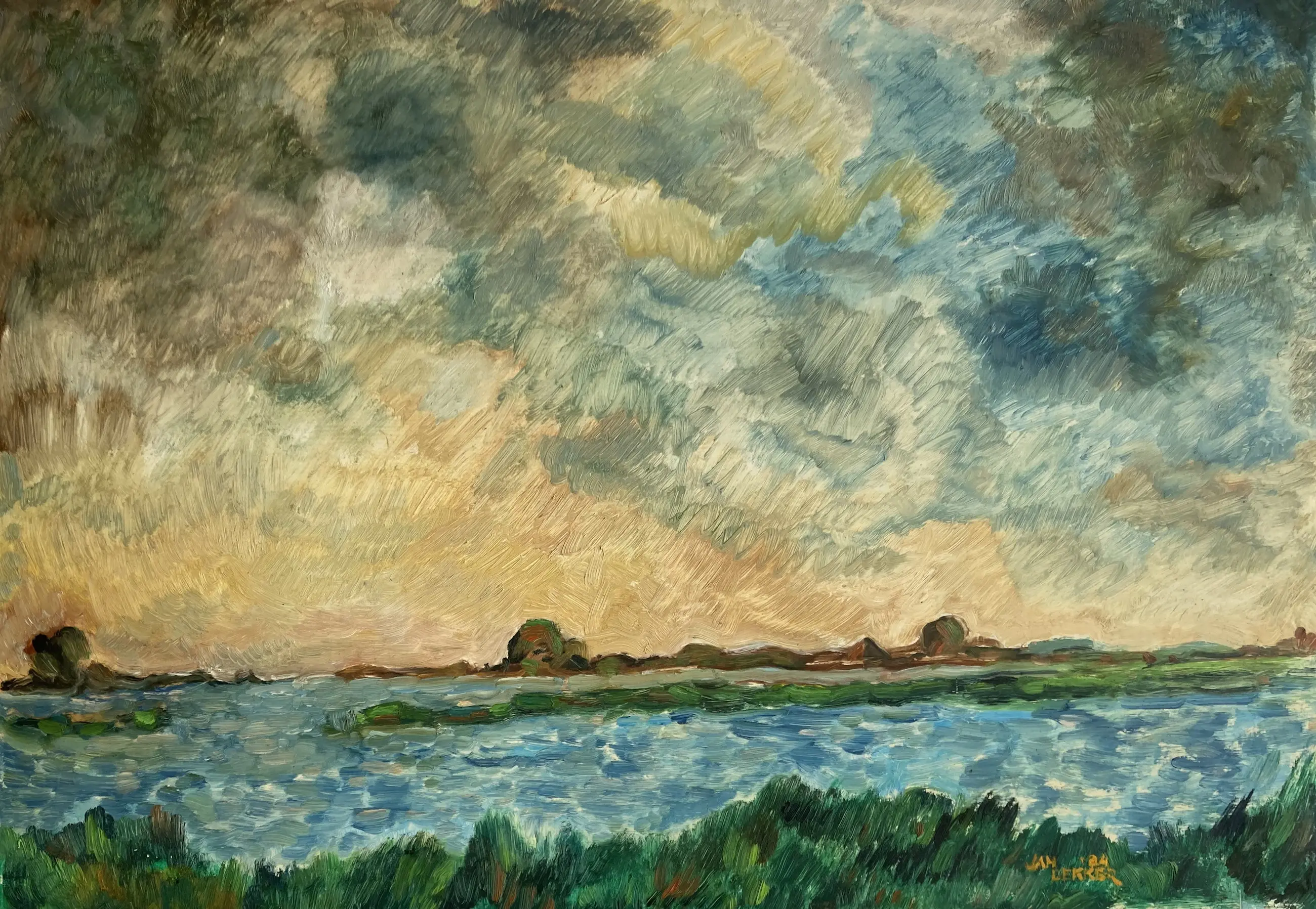 Jan Dekker - olieverf op hardboard - landschap - gesigneerd - zonder lijst