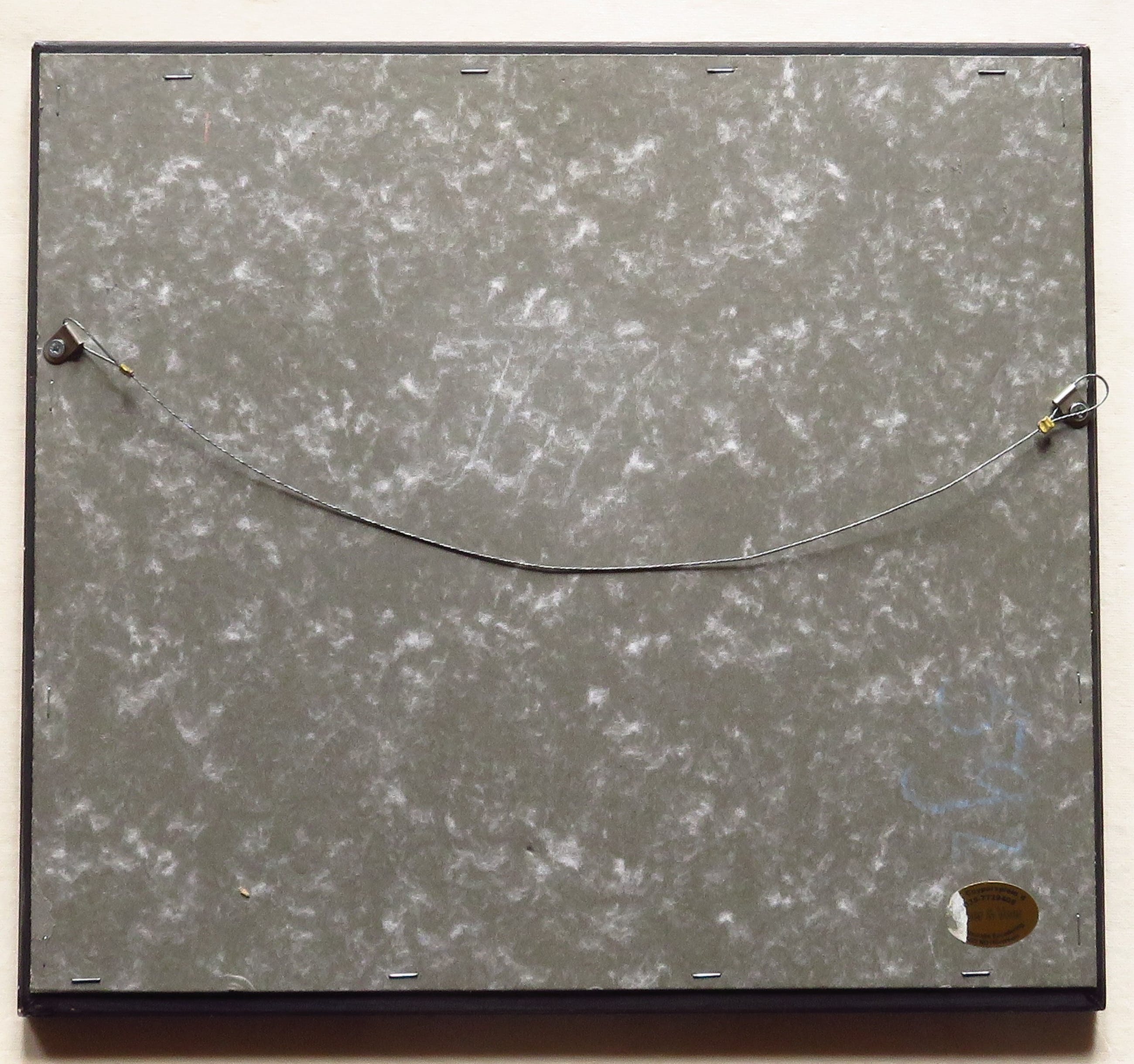 De tekening is in zeer goede staat. De lijst heeft lichte gebruikssporen.