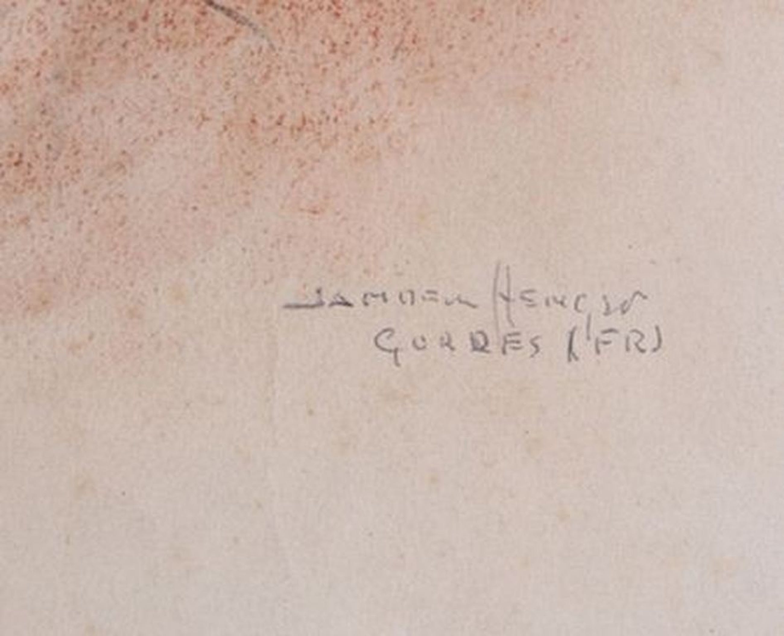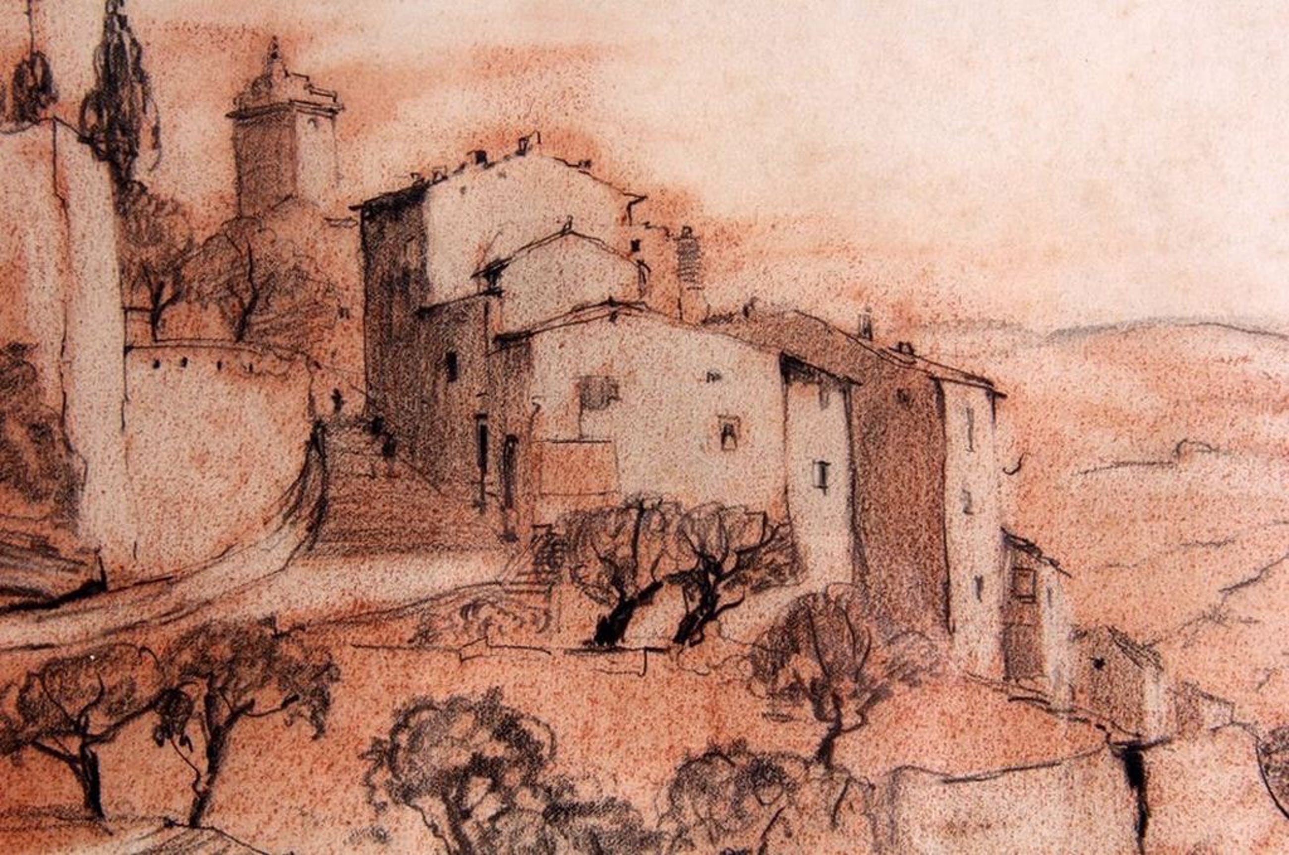 Typerende pasteltekening door Johannes Gerardus den Hengst waarop afgebeeld 'Gordes'.
