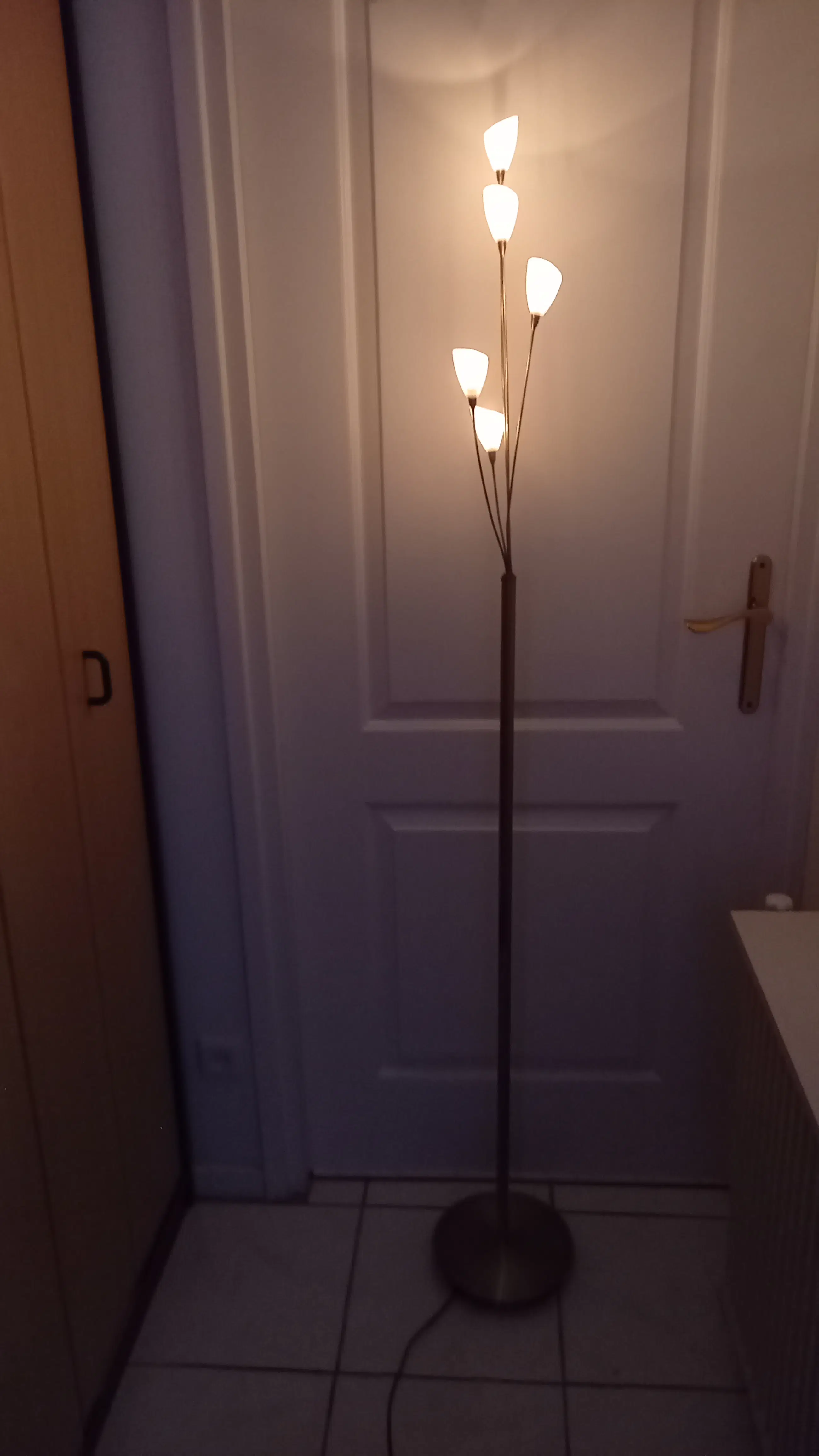 Vloerlamp met dimmer snoer 2.55mtr.gebruiks sporen op de voet.