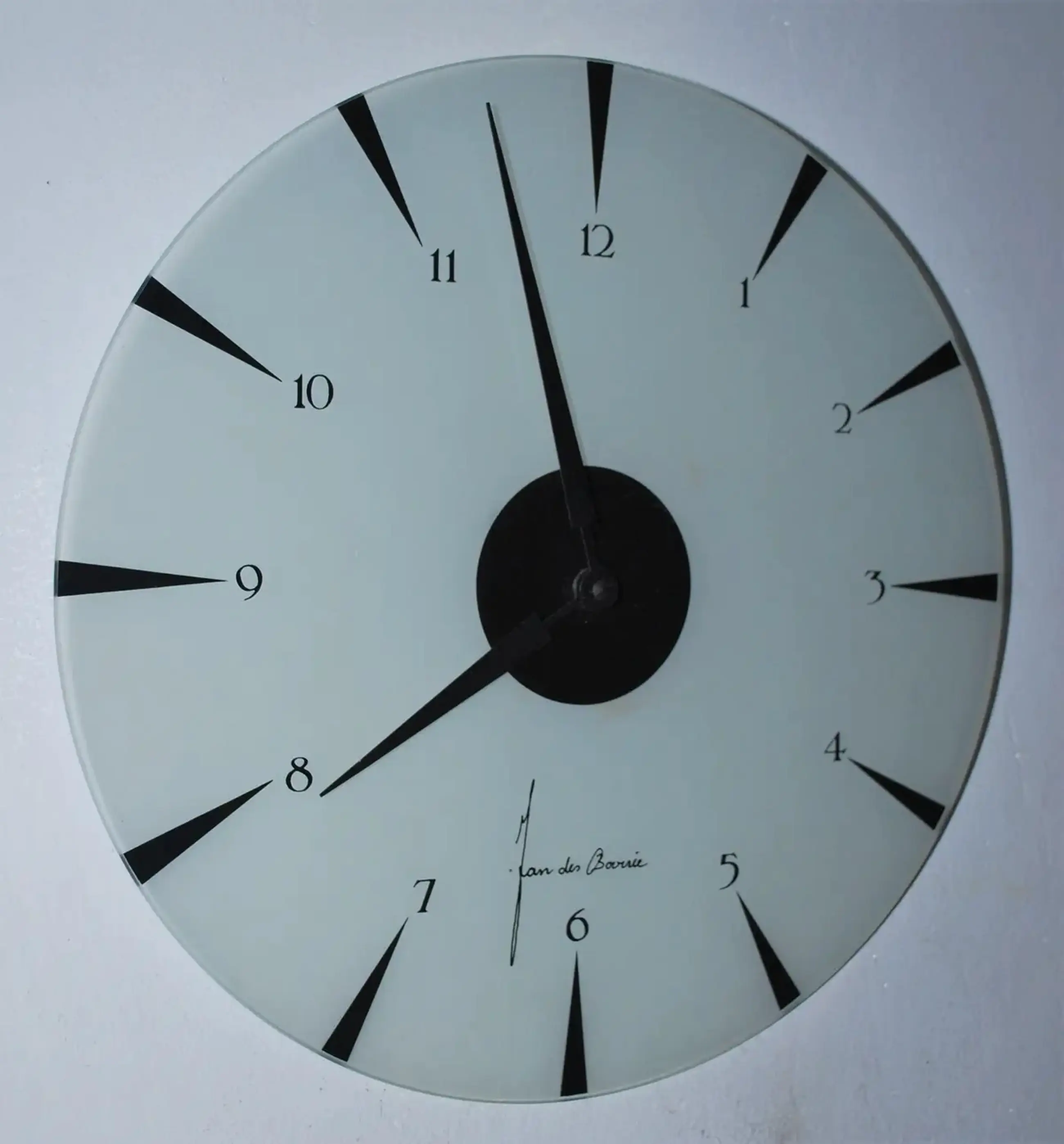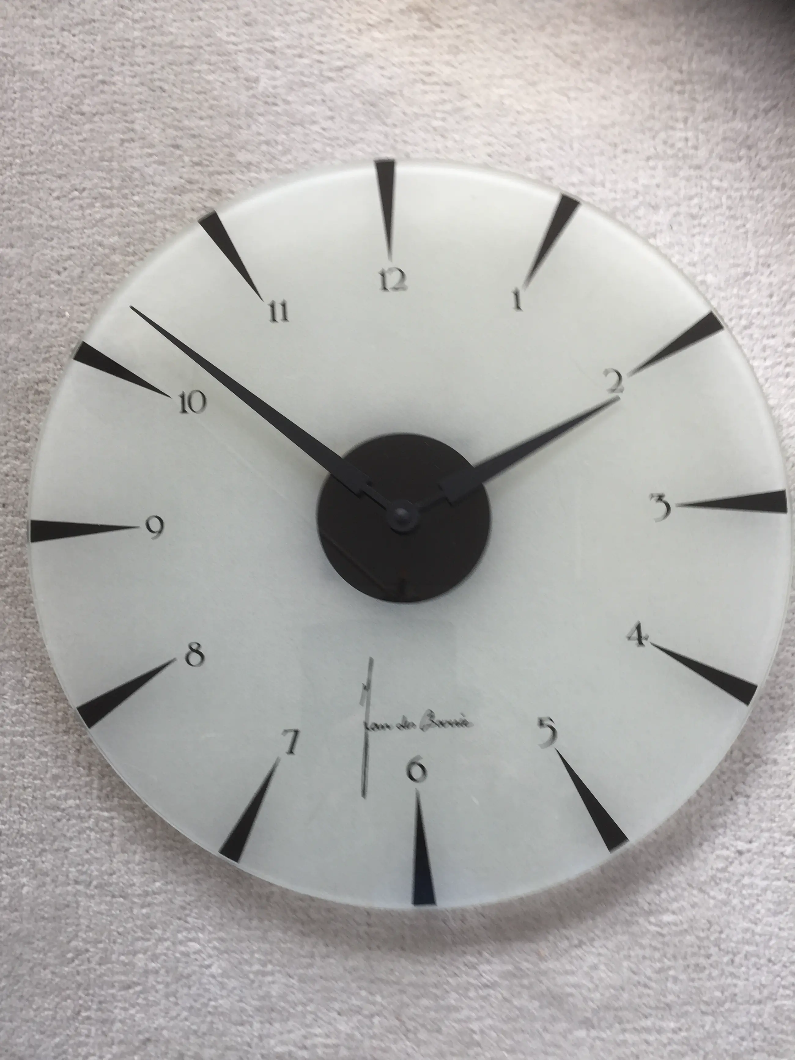 Strak matglas wijzerplaat met zwarte wijzers en uurvermelding Loopt geruisloos op batterij