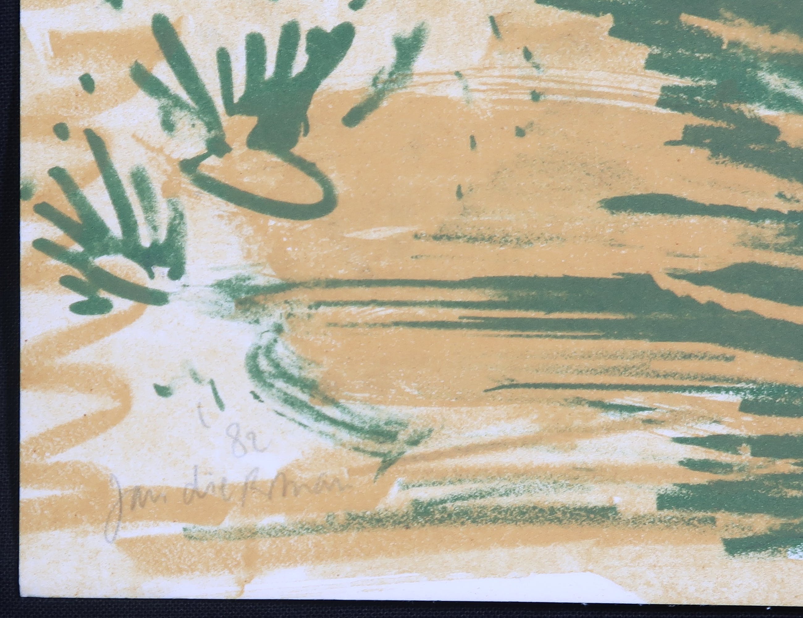 Afkomstig uit de map ’10 litho’s’ die verscheen op 19 september 1982 met litho’s van verschillende kunstenaars waarvan gelijktijdig een tentoonstelling werd georganiseerd in het Van Reek museum Apeldoorn. Gedrukt door steendrukkerij Amsterdam.