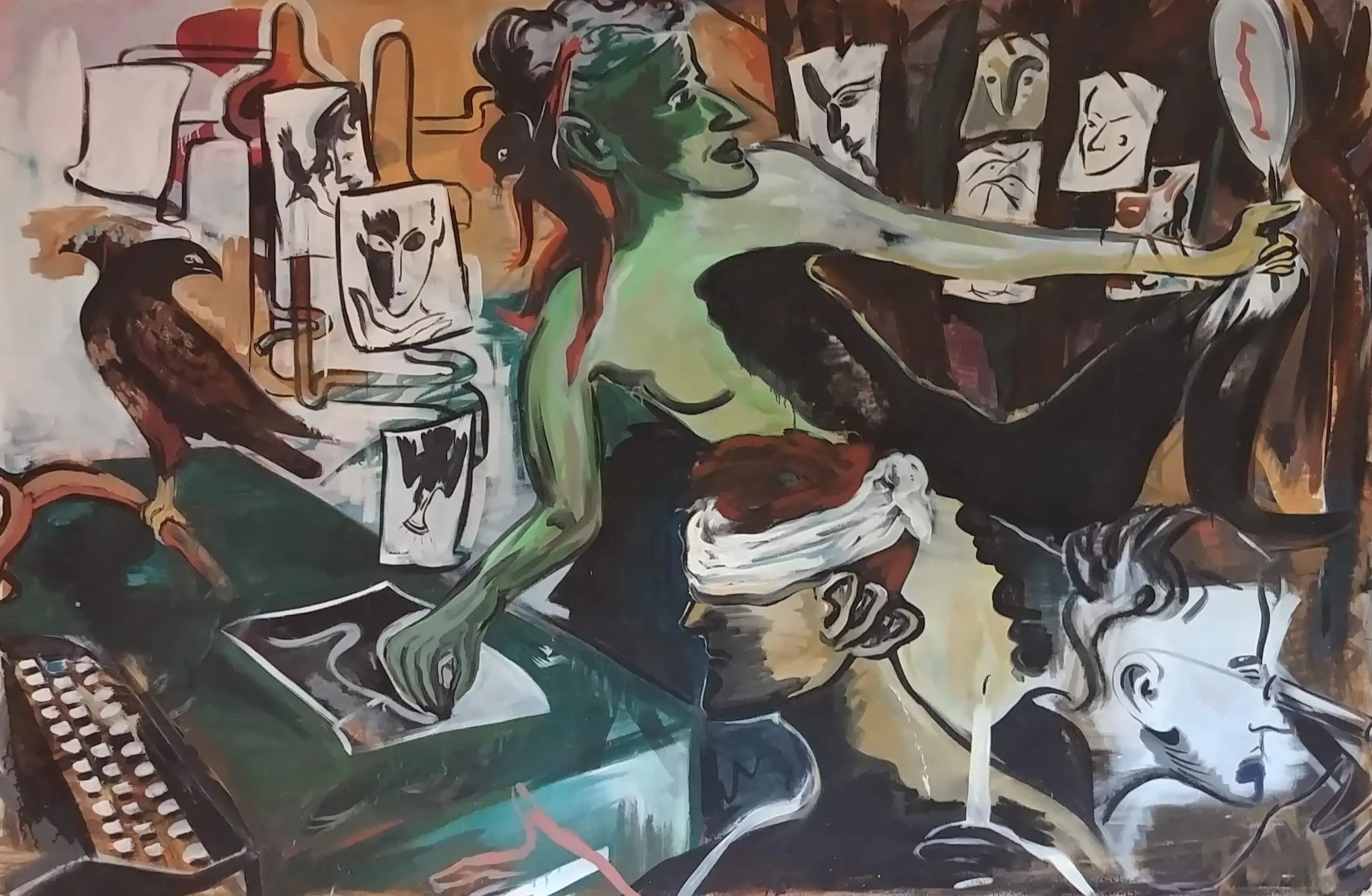 Doek direct van de kunstenaar gekocht 5 april 1984. In die tijd was er een stroming "Die neue Wilden" en dit doek zou daar onder vallen. Ik heb voor dit doek een speciale vrij forse lijst laten maken ( gefreesd hout ) die bij het formaat van het schilderij past. De originele aankoopnota is aanwezig. Dit schilderij bevindt zich in Frankrijk. Transport en leveringsdatum in overleg met de verkoper.