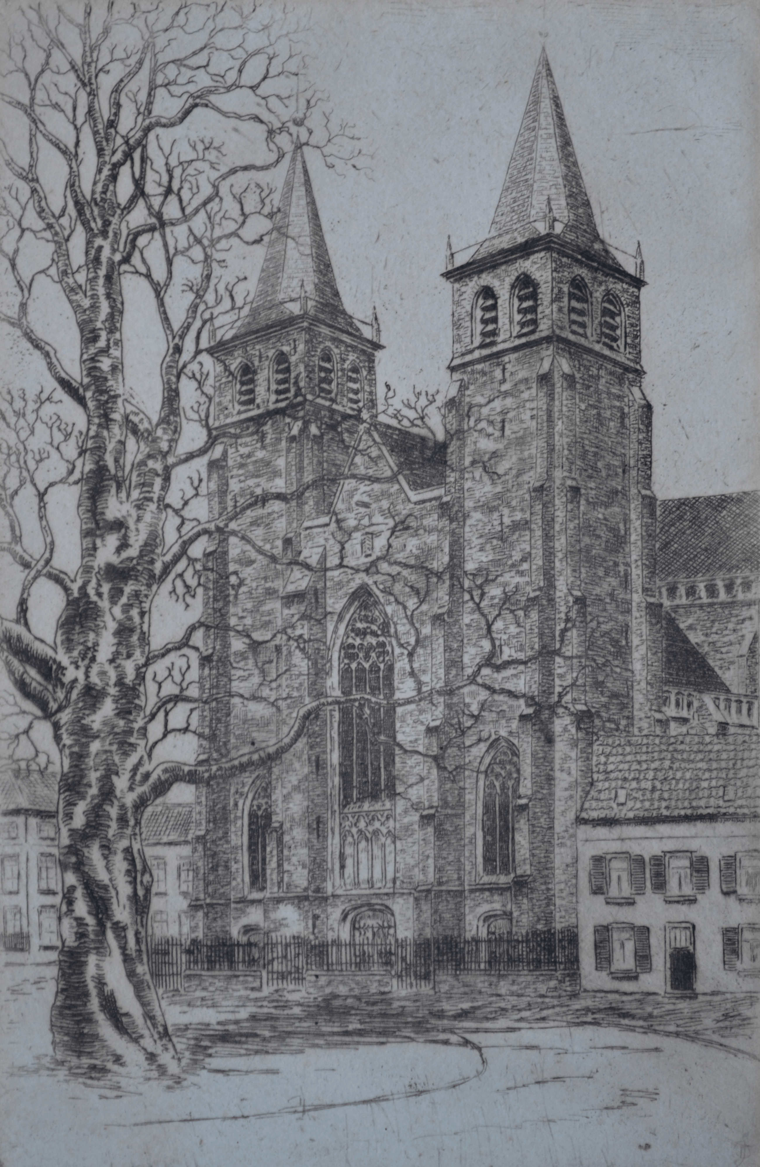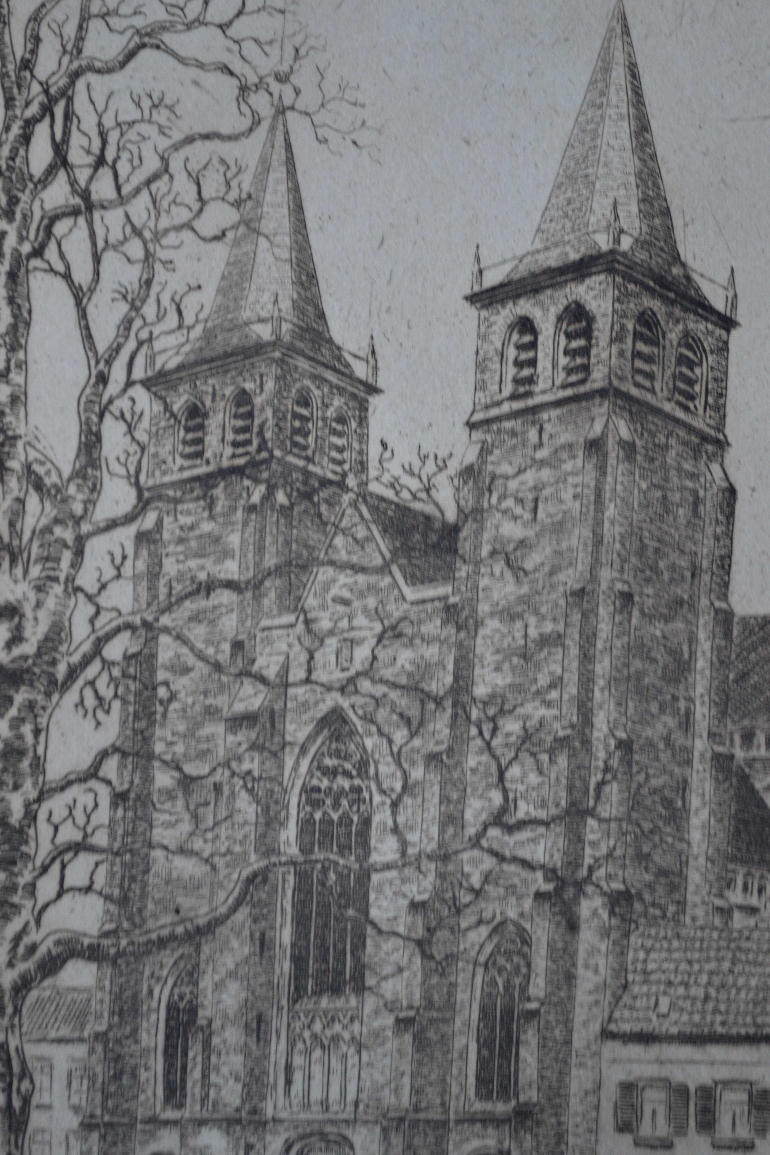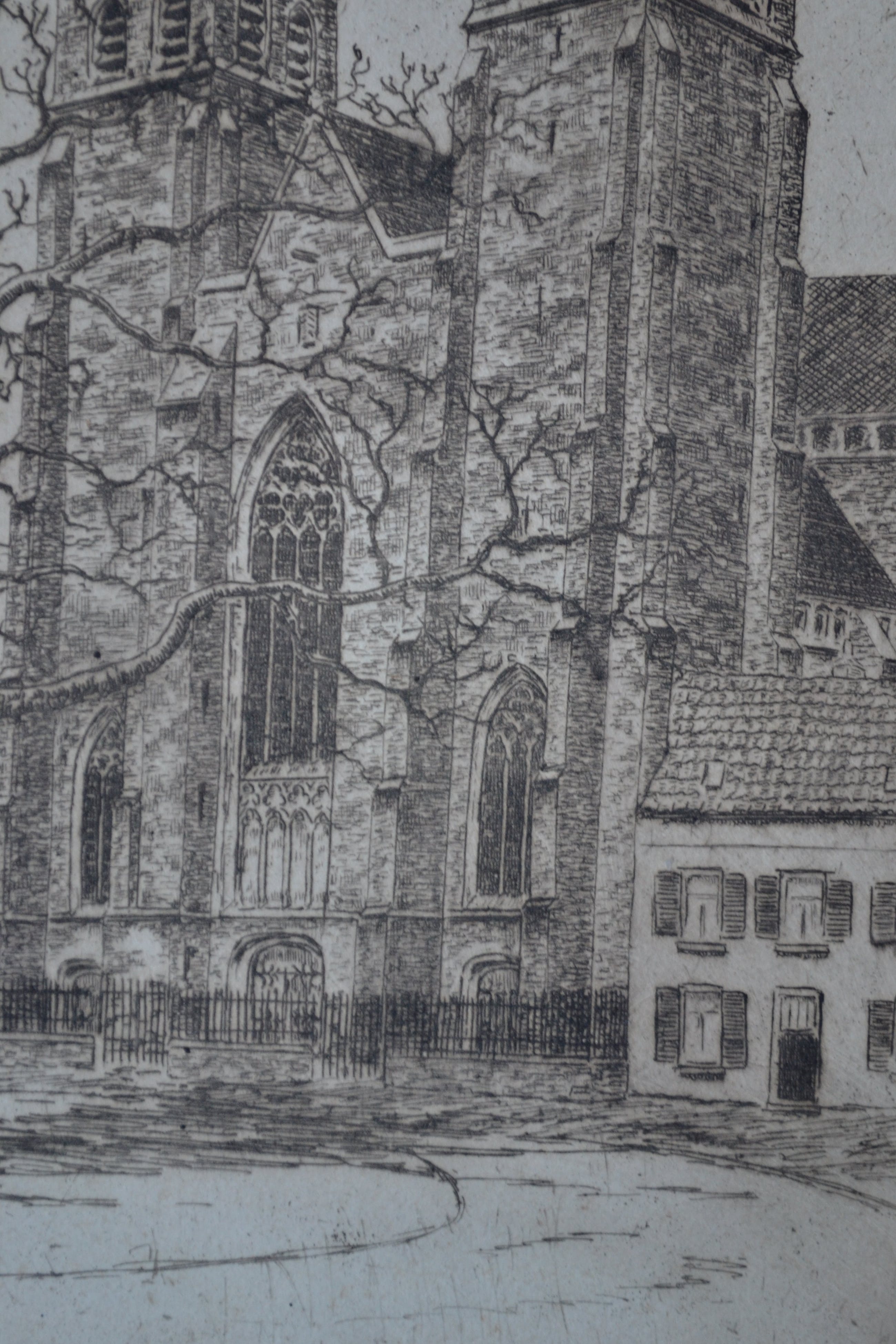 Mooie ets van Jan Disselsma van de Sint Walburgiskerk te Arnhem. Rechtsonder in potlood gesigneerd. Maat afbeelding is ca 24x15cm. Wordt goed verpakt en aangetekend verstuurd.