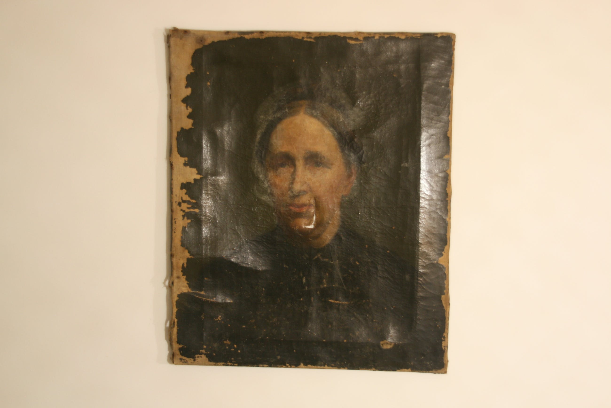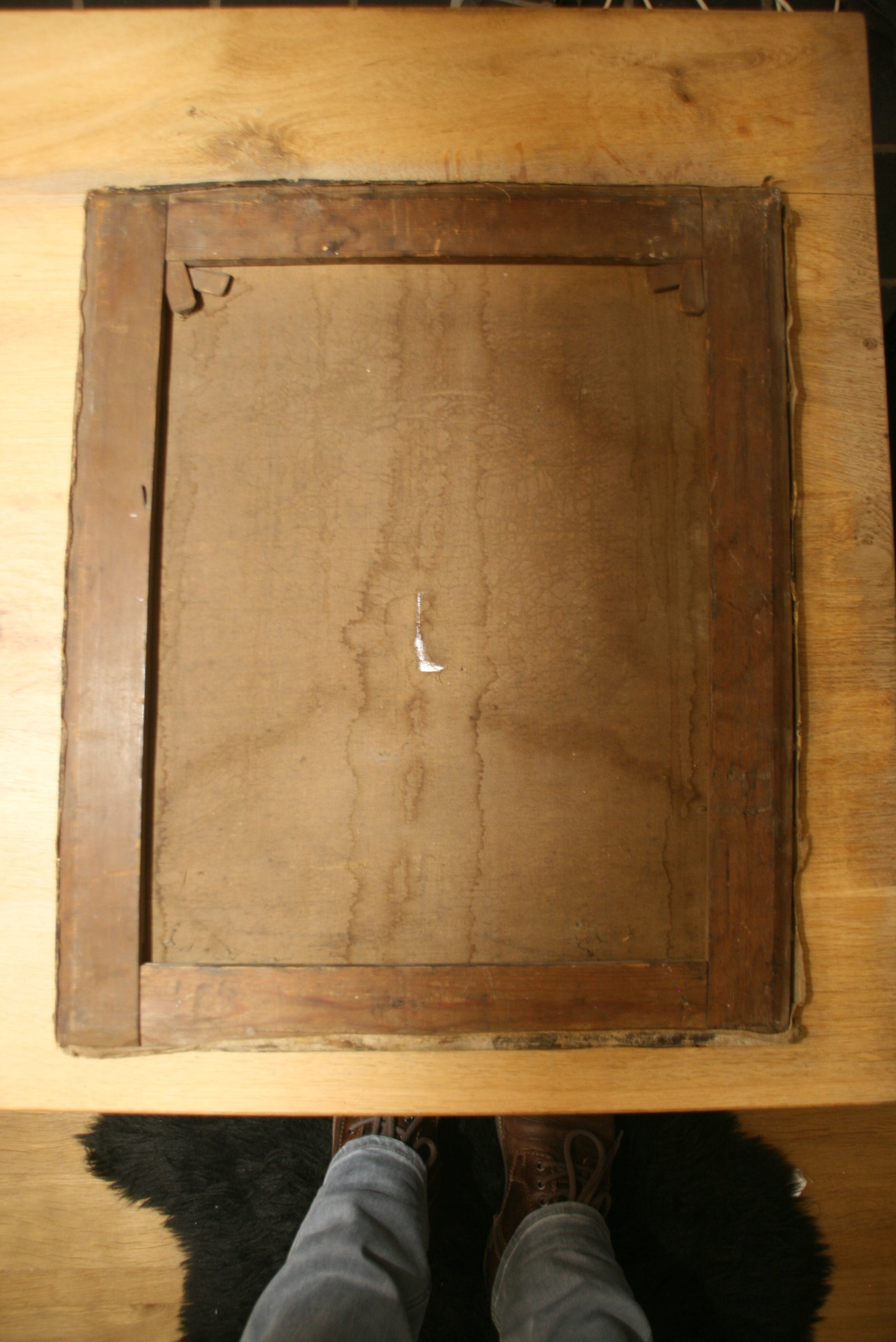 Er valt heel wat naars te vertellen over dit schilderij. De staat is slecht. Scheur in gezicht bij kin en onderin doek ergens. Zijkanten veel verf af. Gezicht is ooit in gepoetst en heeft wat heel lichte witte vlekken.