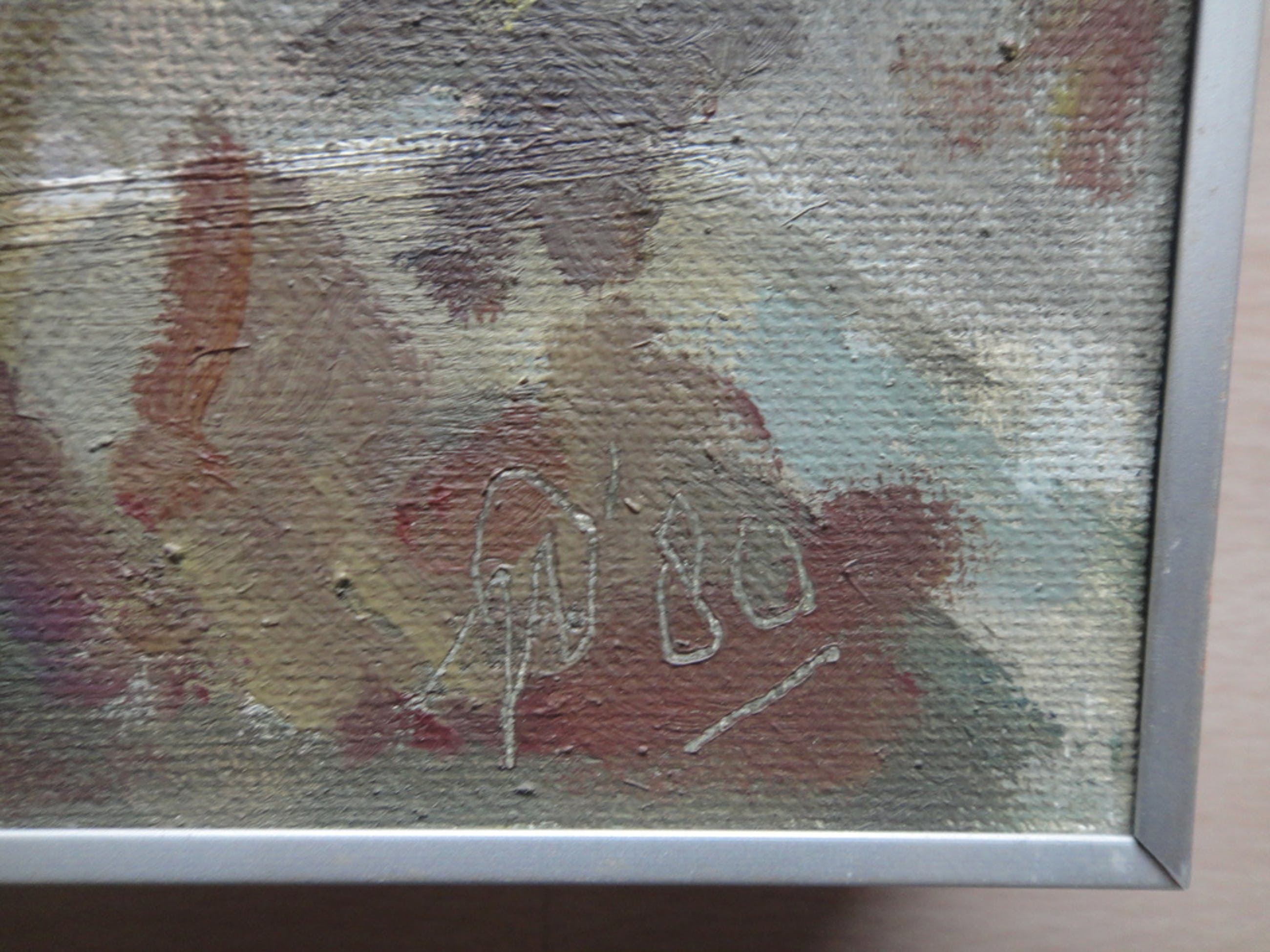 Olieverf op schildersboard: 50 bij 40 cm.