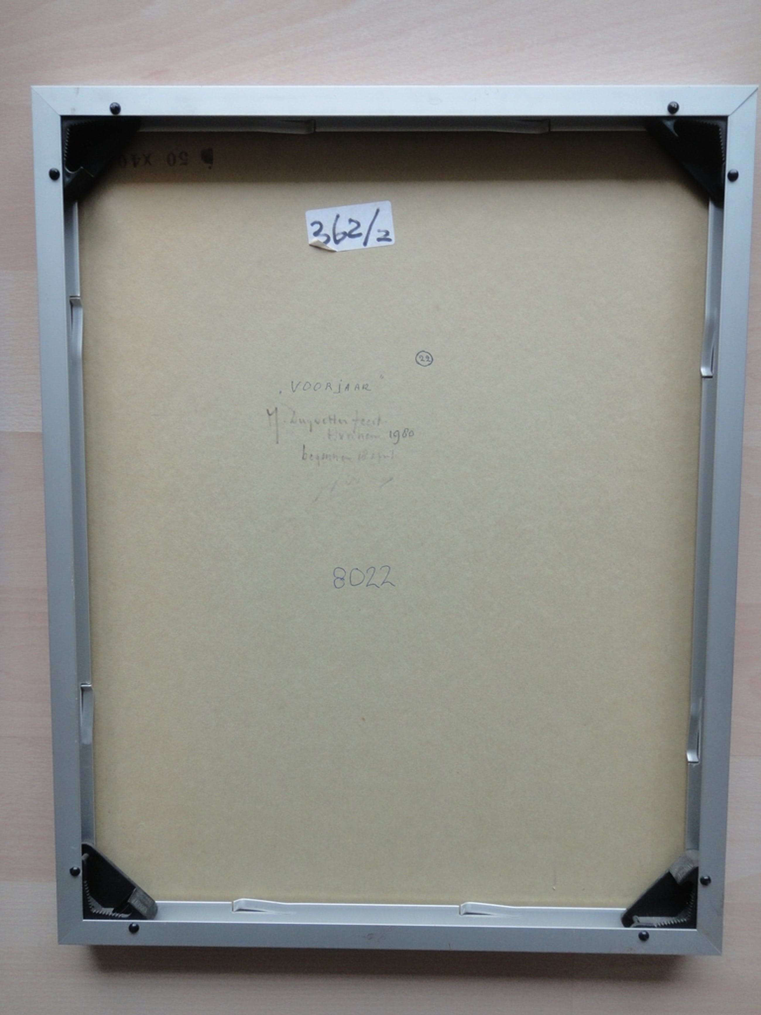Afmeting inclusief moderne lijst: 50,2 bij 40,2 cm.