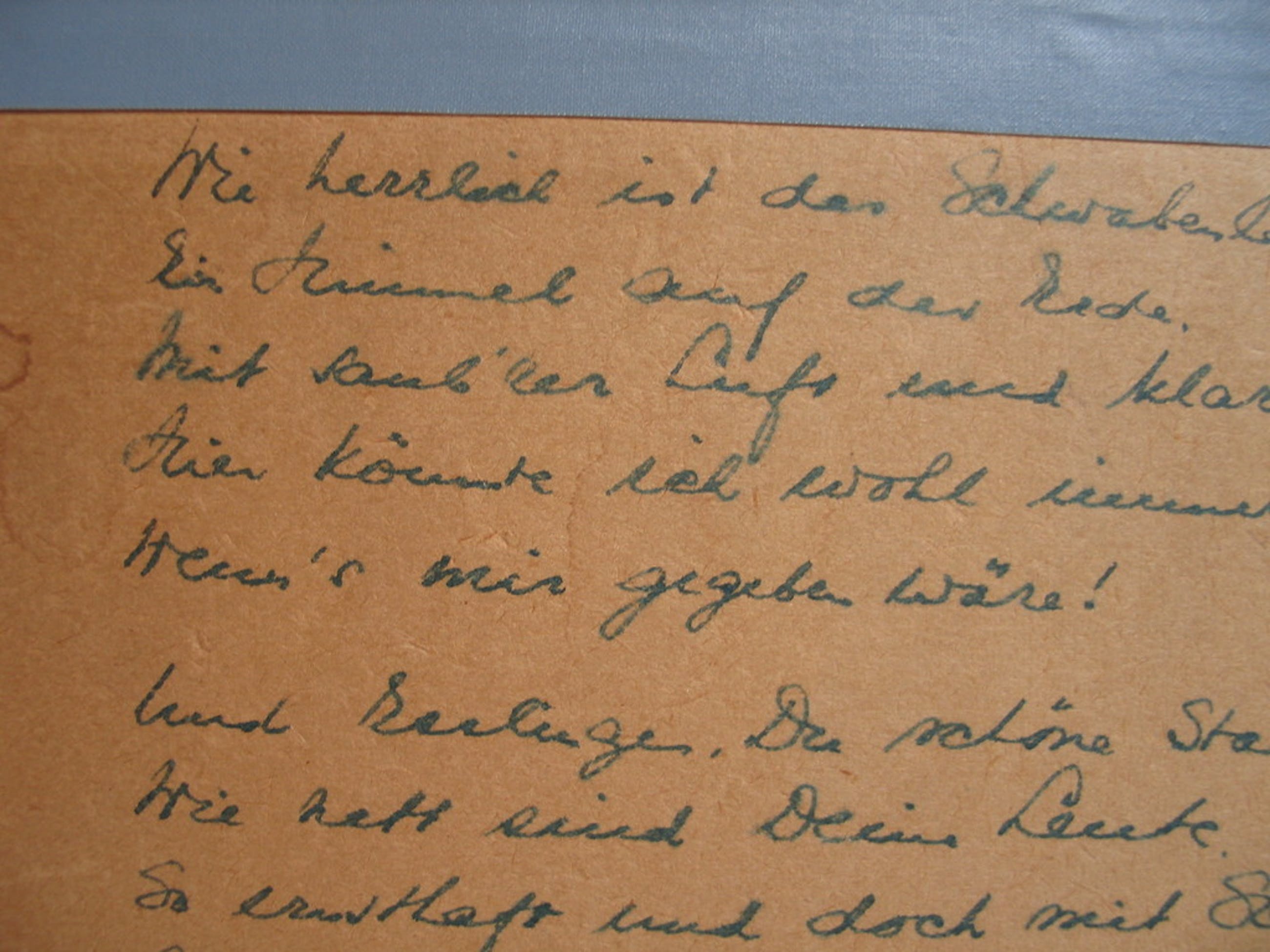 Op de achterkant staat een Duits gedicht van een Nederlander, waarschijnlijk is het schilderij kado gegeven aan iemand.