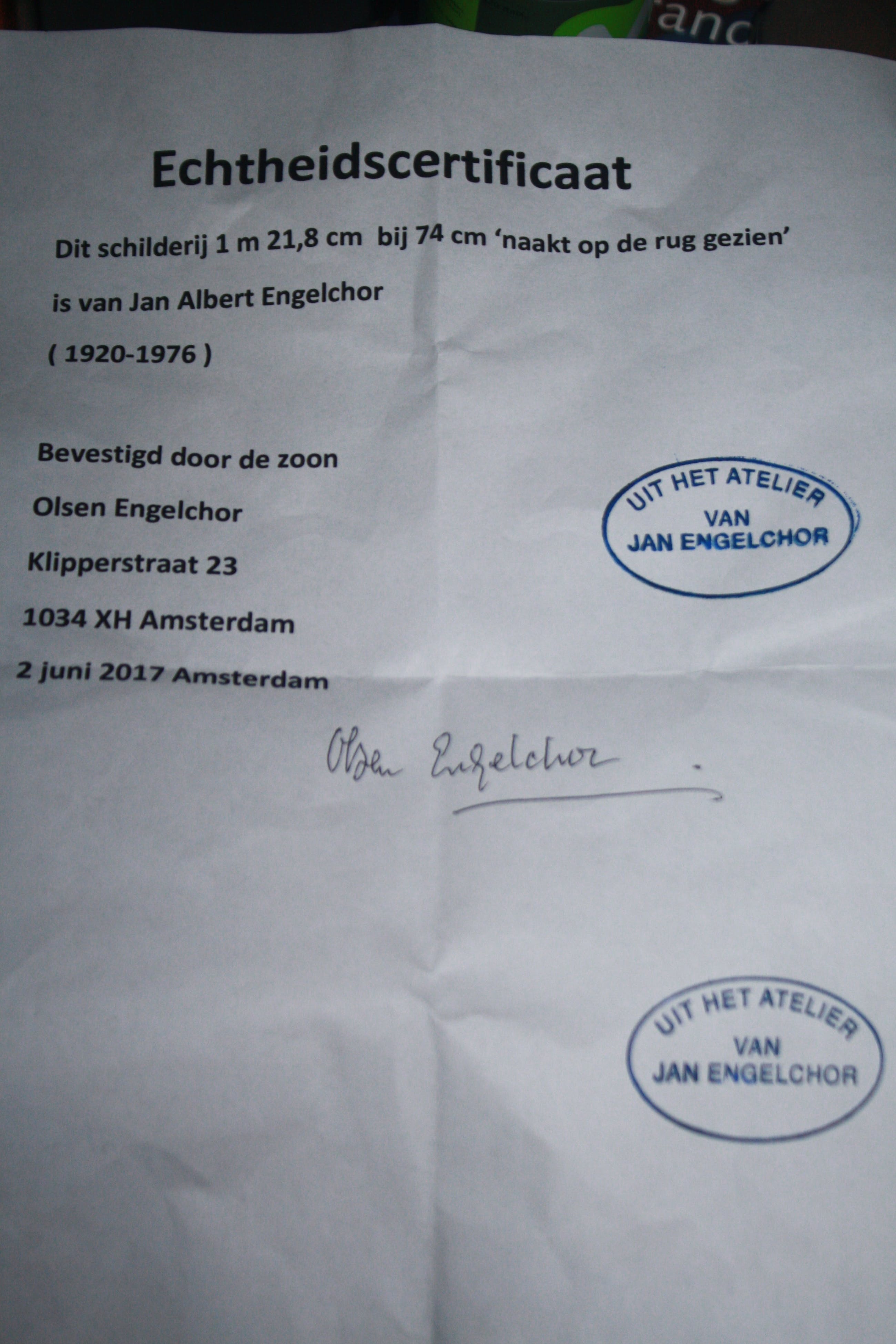 ECHTHEIDS CERTIFICAAT DOOR DE ZOON VAN JAN ENGELCHOR