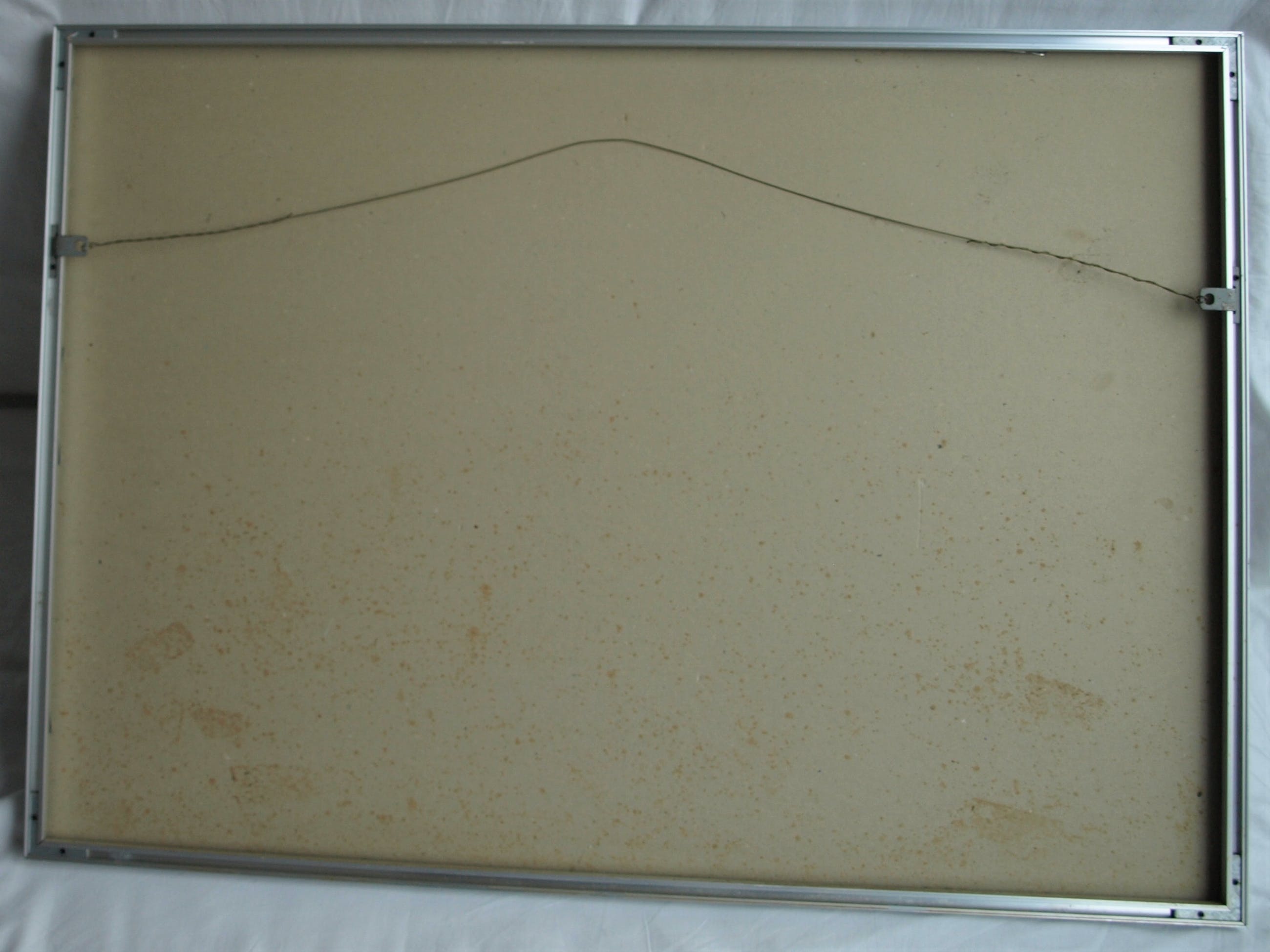 Het werk is gesigneerd rechtsonder en ingelijst in de een aluminium lijst met passe-partout en glasplaat.