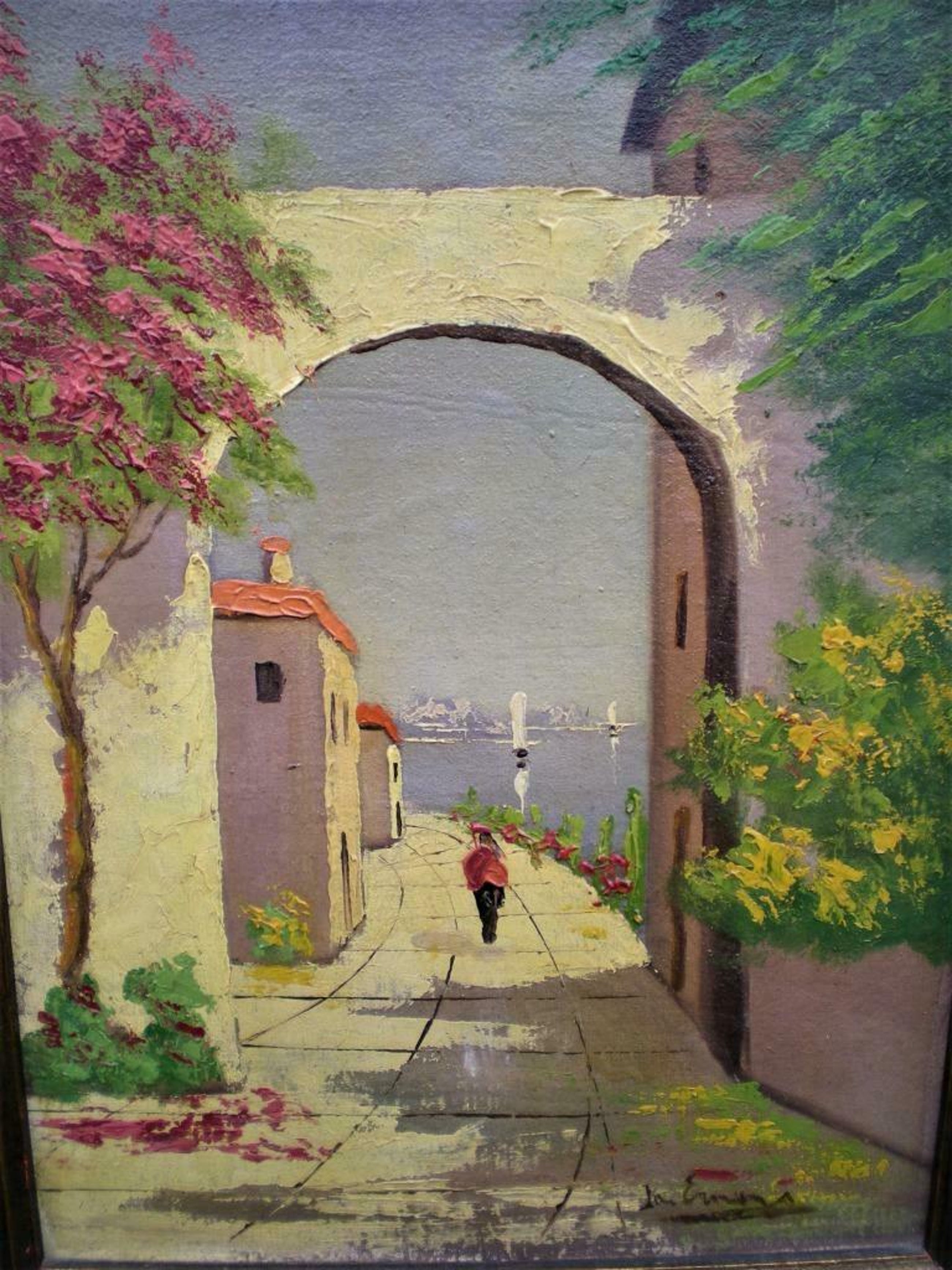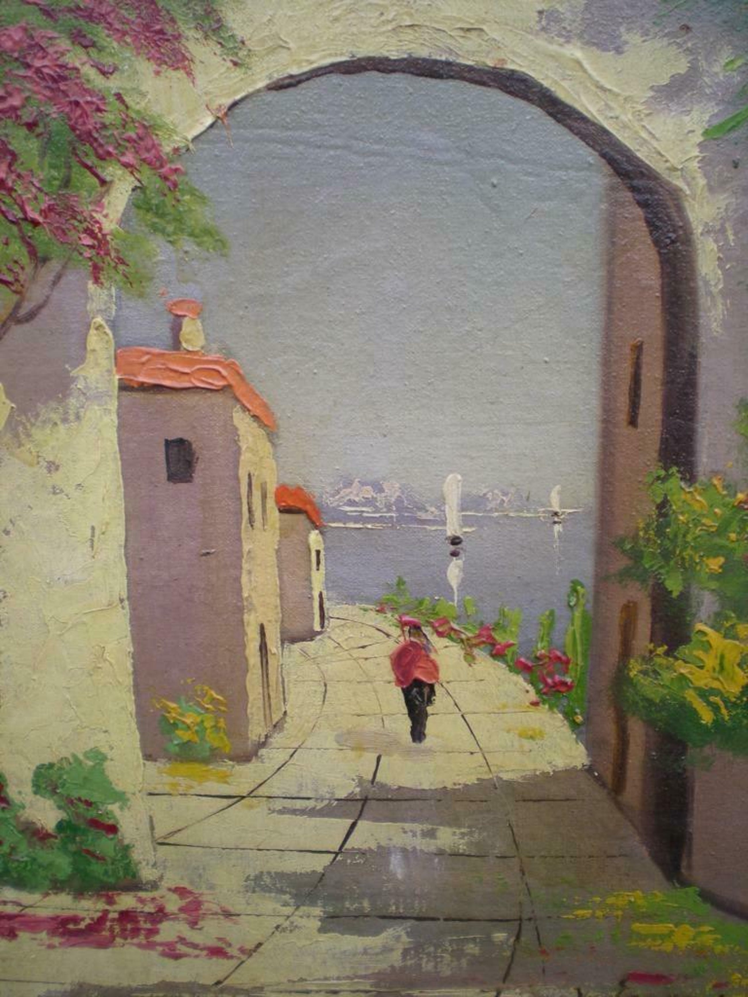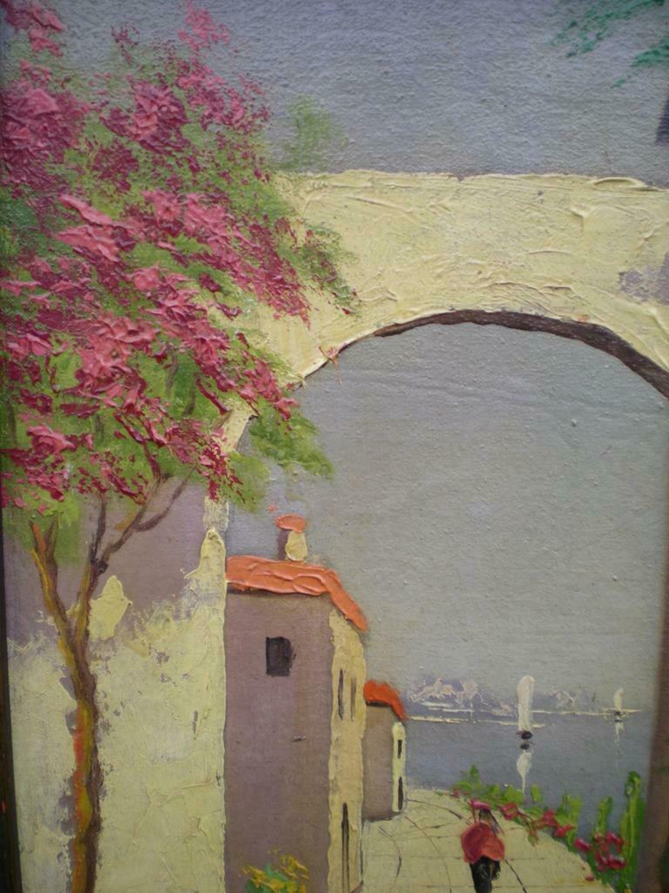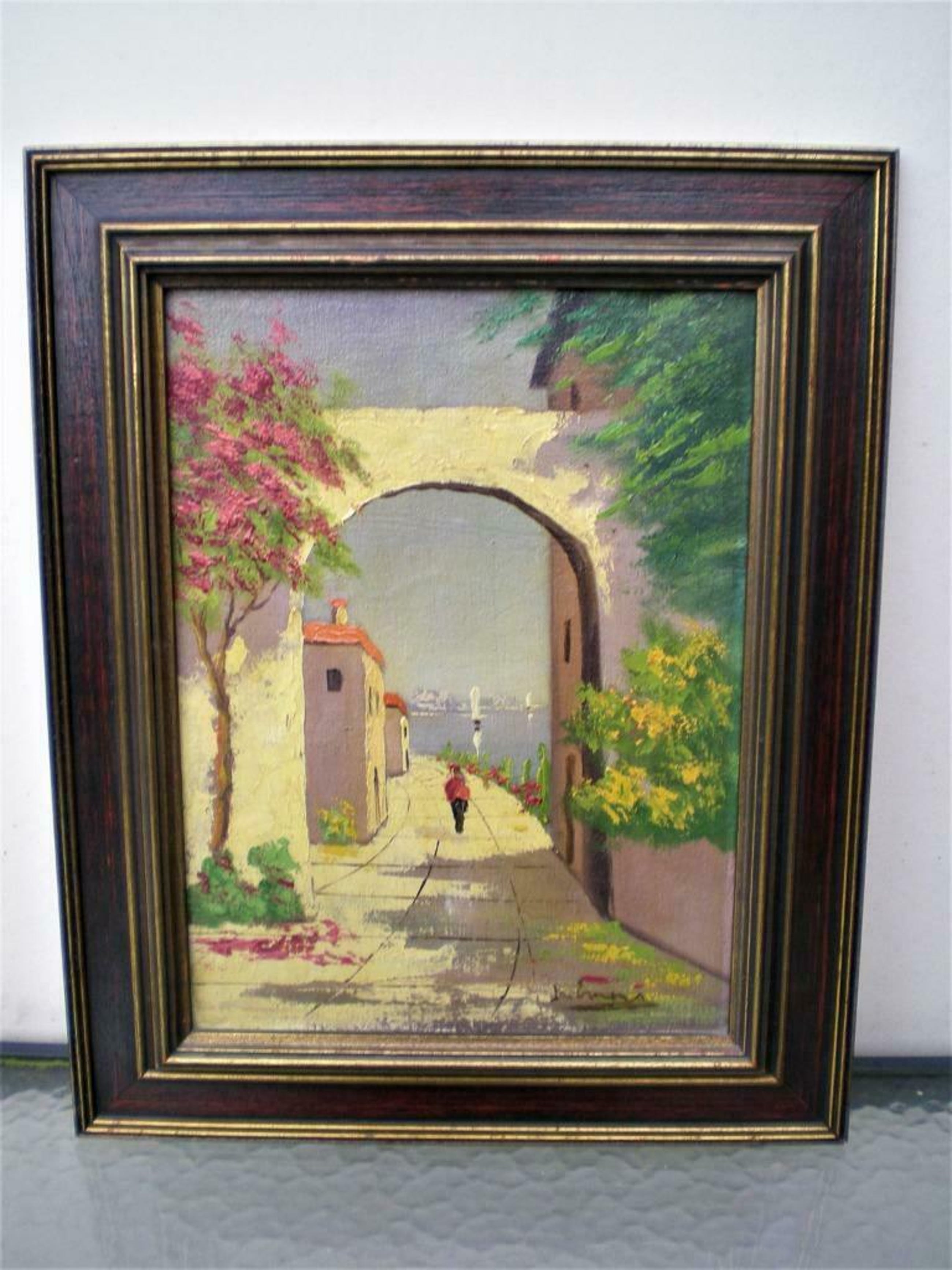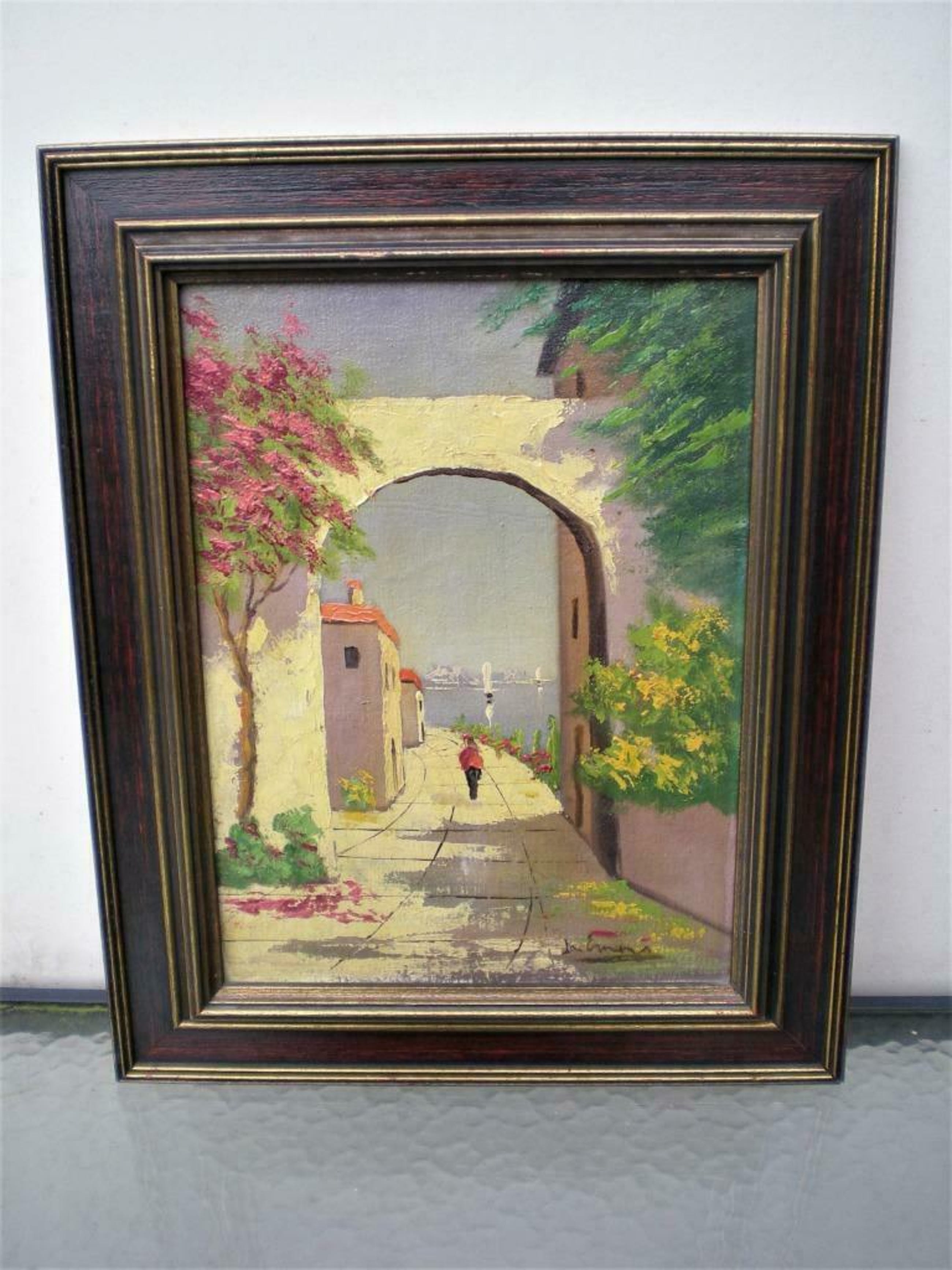 Een mooi schilderij met een Doorkijk nabij de Middellandse Zee maat met lijst is 33 bij 43