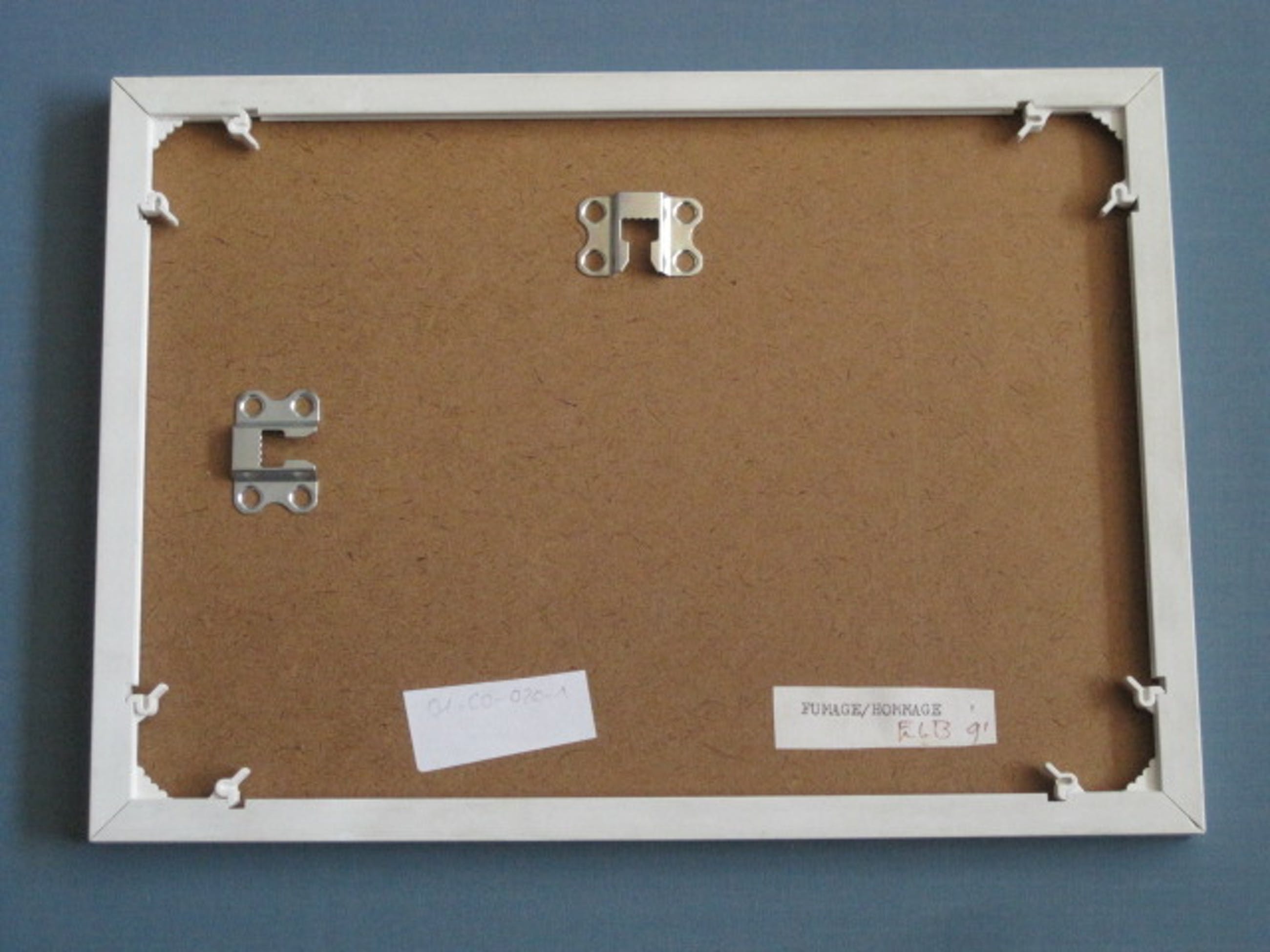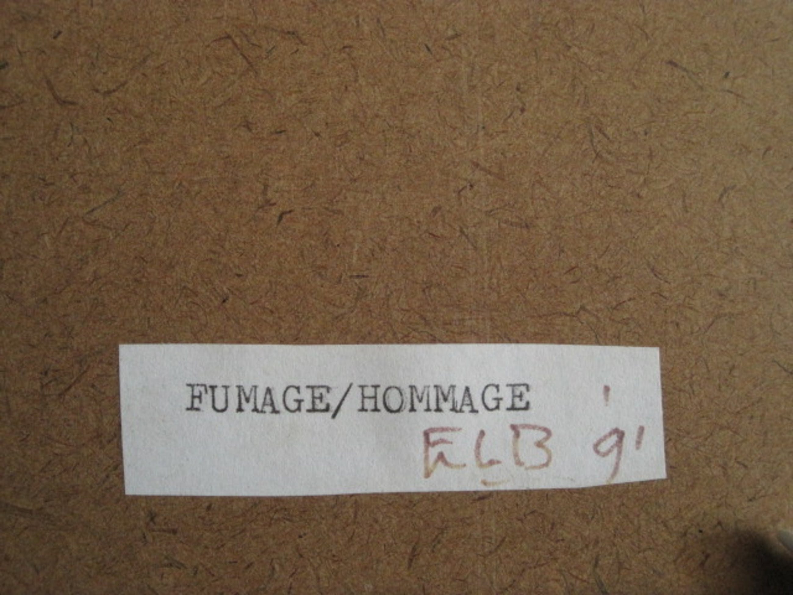 Een bijzonder late (1991 - een jaar voor zijn overlijden) Collage getiteld "Fumage - Hommage" en gemonogrammeerd op de achterzijde.
