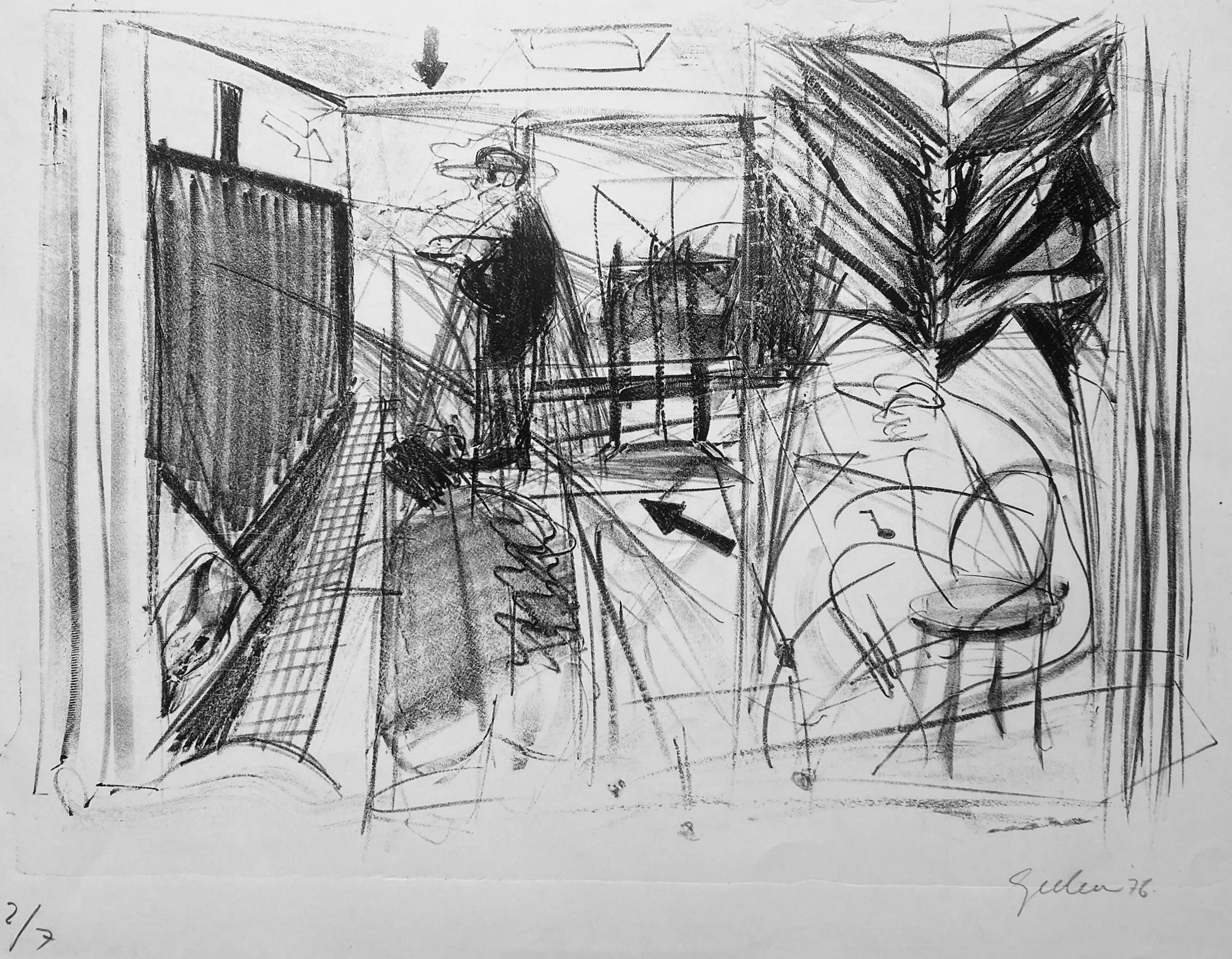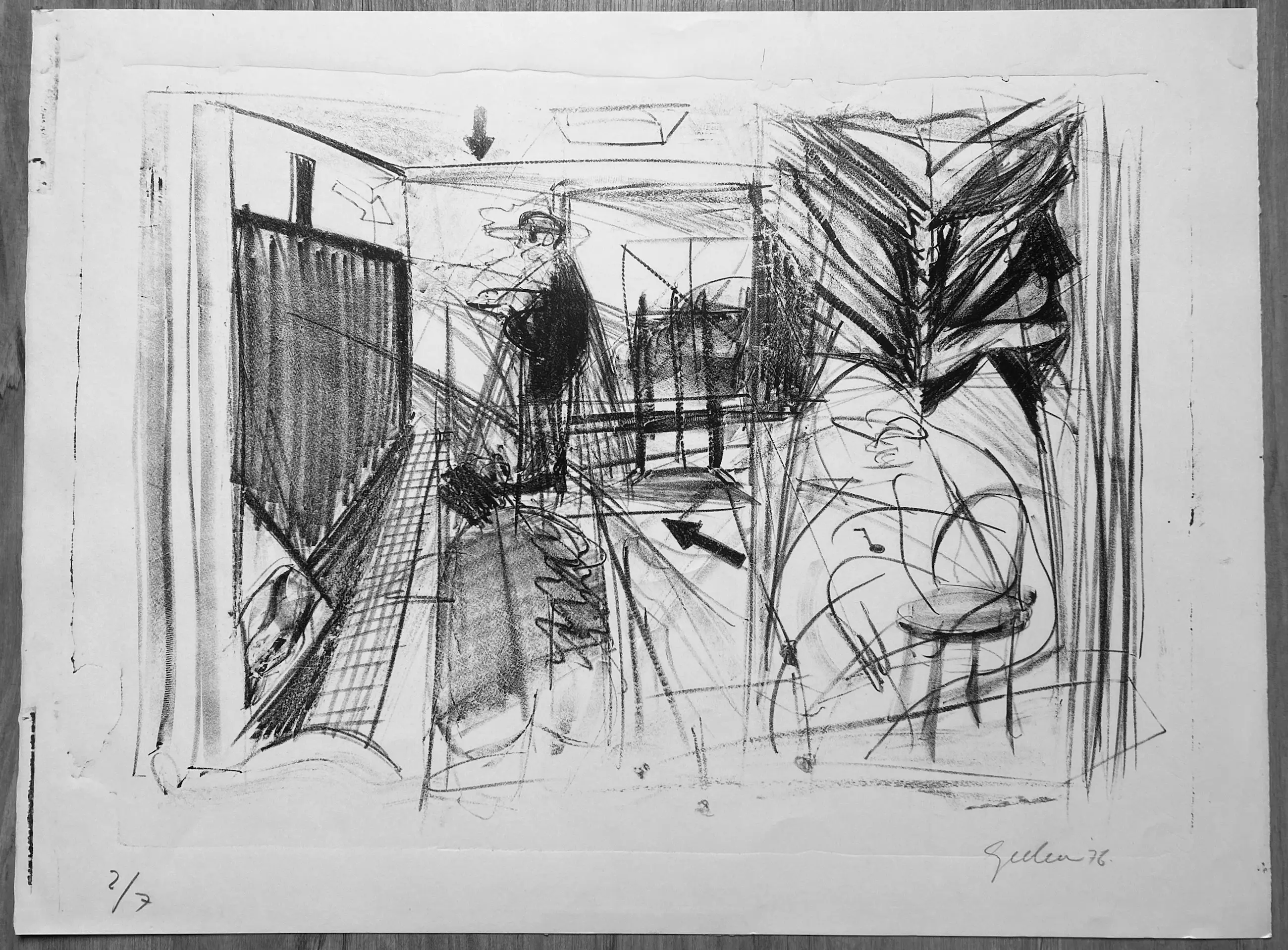 Conditie: afbeelding goed. Vel heeft lichte deukjes en vlekjes, zie foto's. Oplage: 2/7. Afmeting: afbeelding 41 x 54 cm. Wordt zorgvuldig verpakt en verzekerd verzonden.
