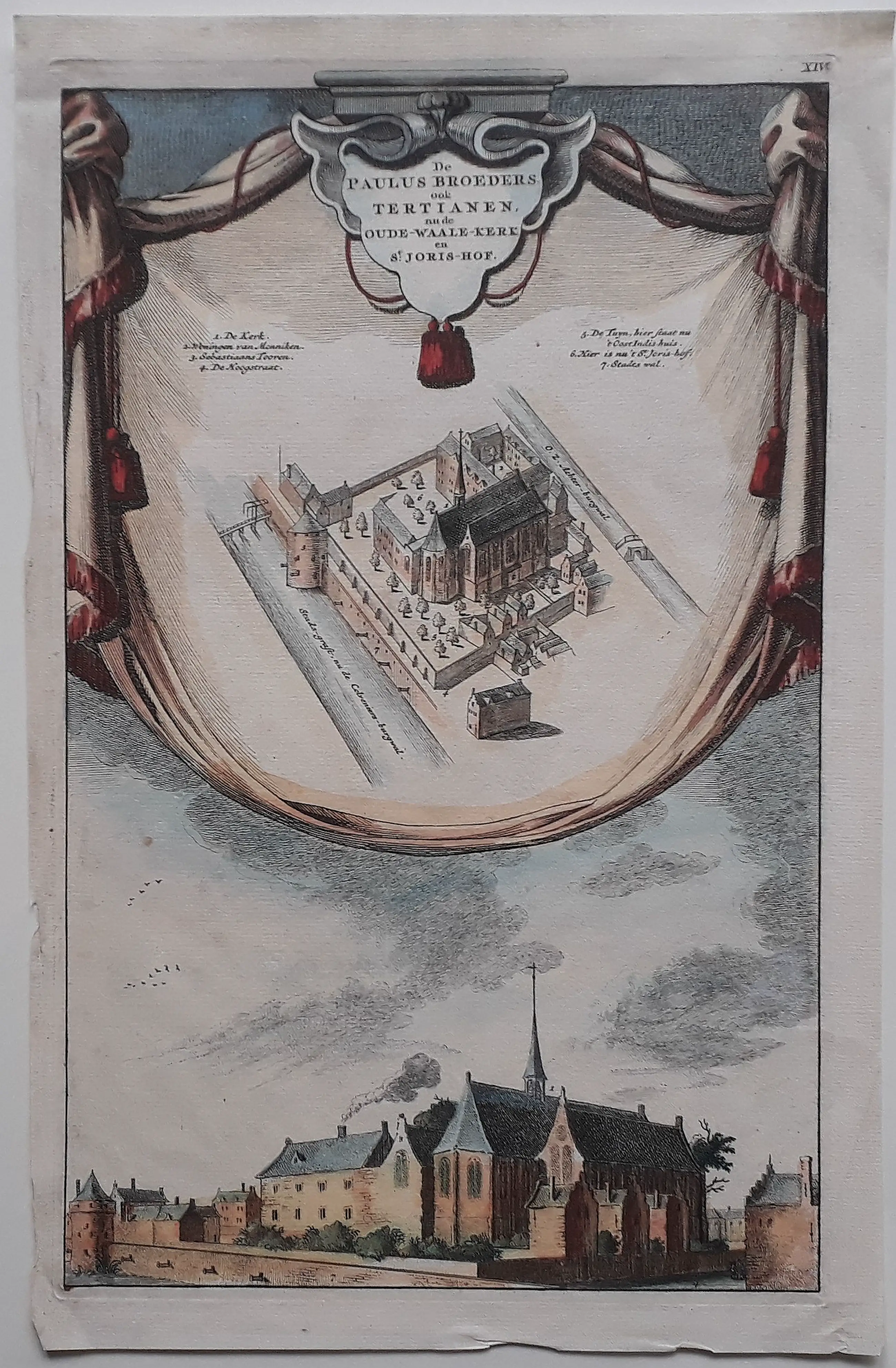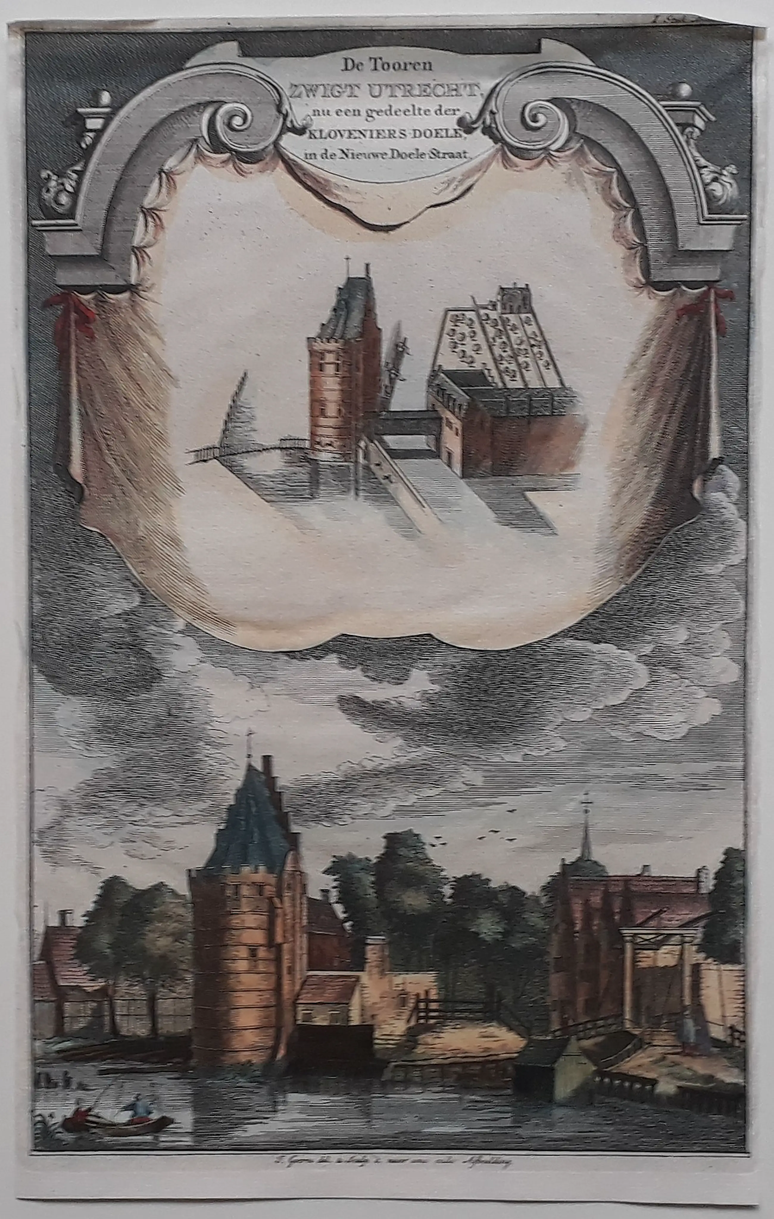 2 Het Oude Stadhuis en de naaste Gebouwen, als zy waren in ’t jaar 15443 De Tooren Zwigt Utrecht en een gedeelte der Kloveniers Doele, in de Nieuwe Doele Straat. Gekleurd