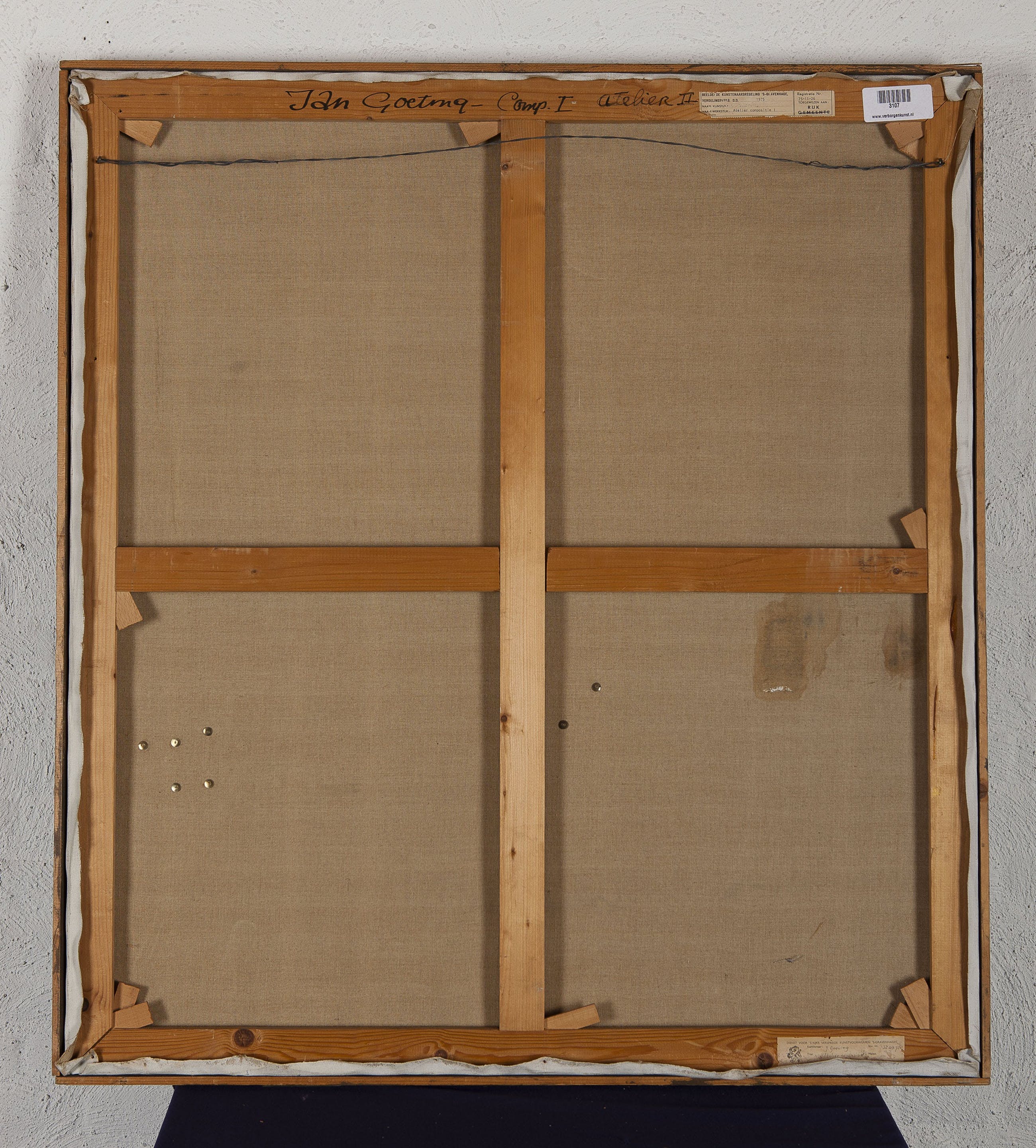 | Het kunstwerk is stoffig en het doek heeft enkele deuken aan de onderzijde. | |