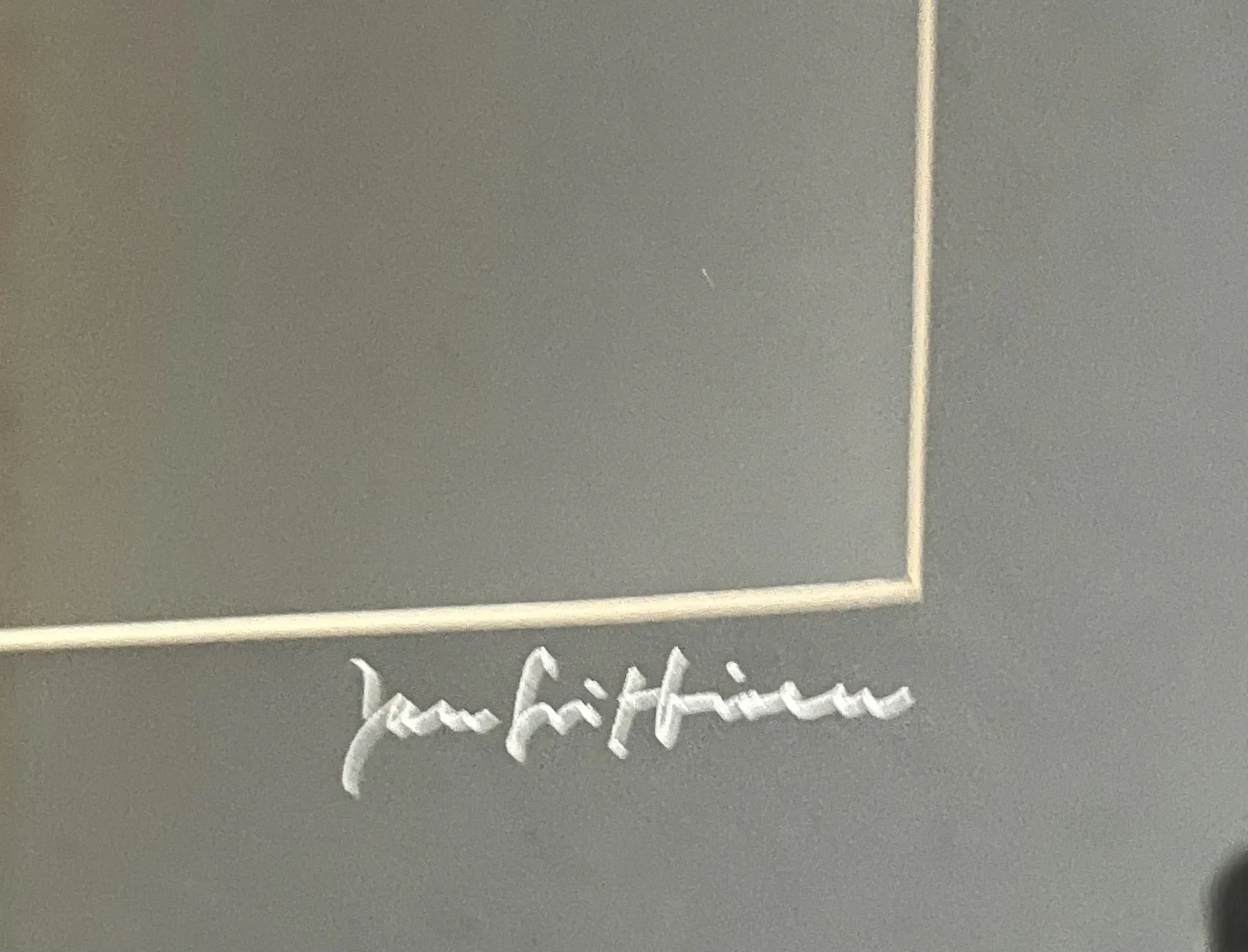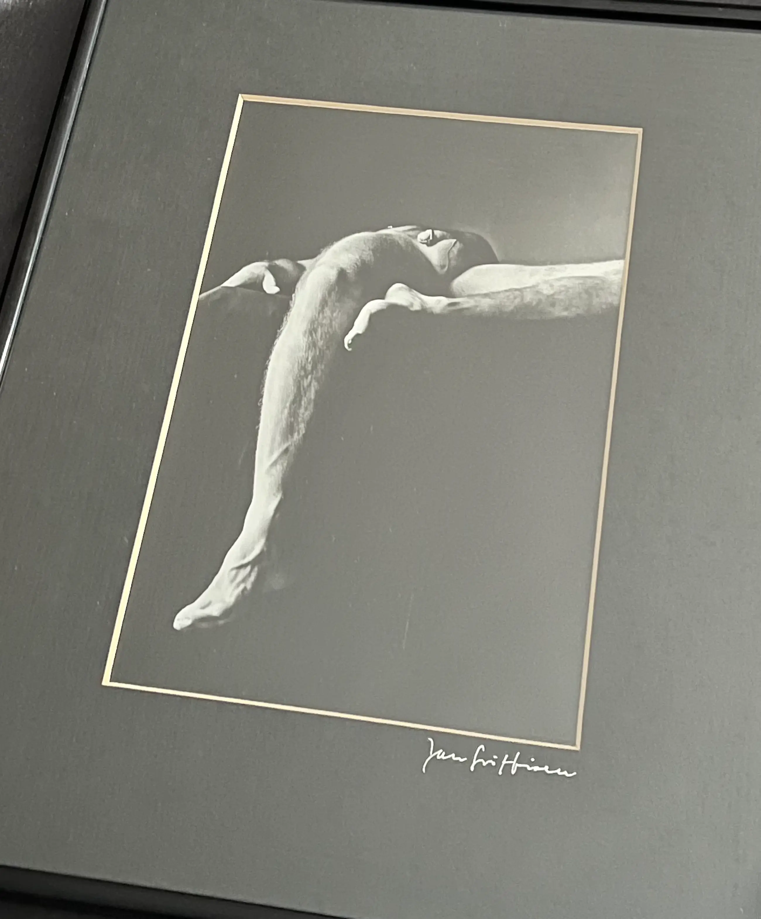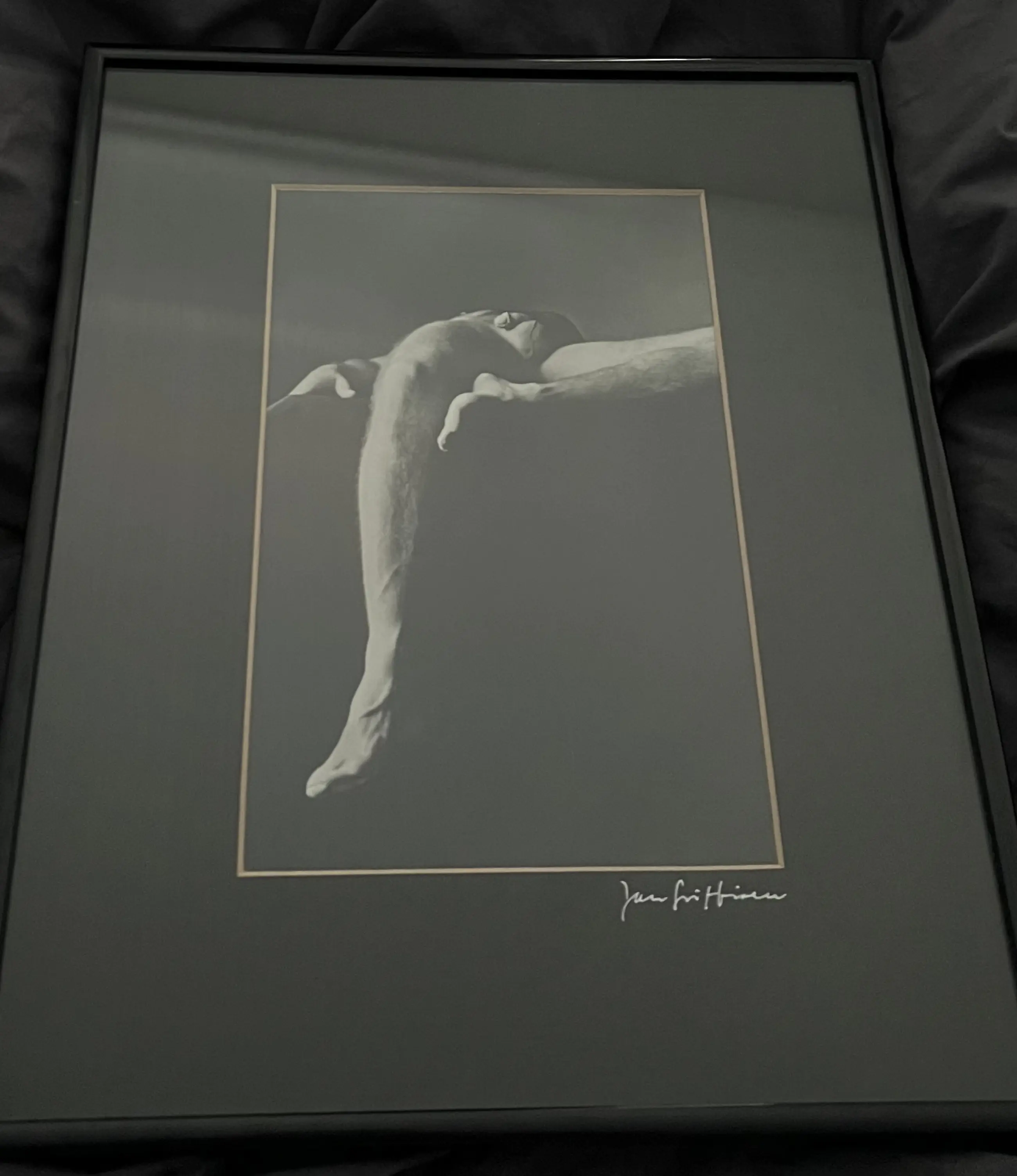 Prachtig mannelijk naakt van fotograaf Jan Griffioen. Haast een stilleven. Gesigneerd aan de voorkant. Werk in het echt vele malen mooier dan op de foto’s. Zwarte passé partout, zwarte lijst. In uitstekende staat.