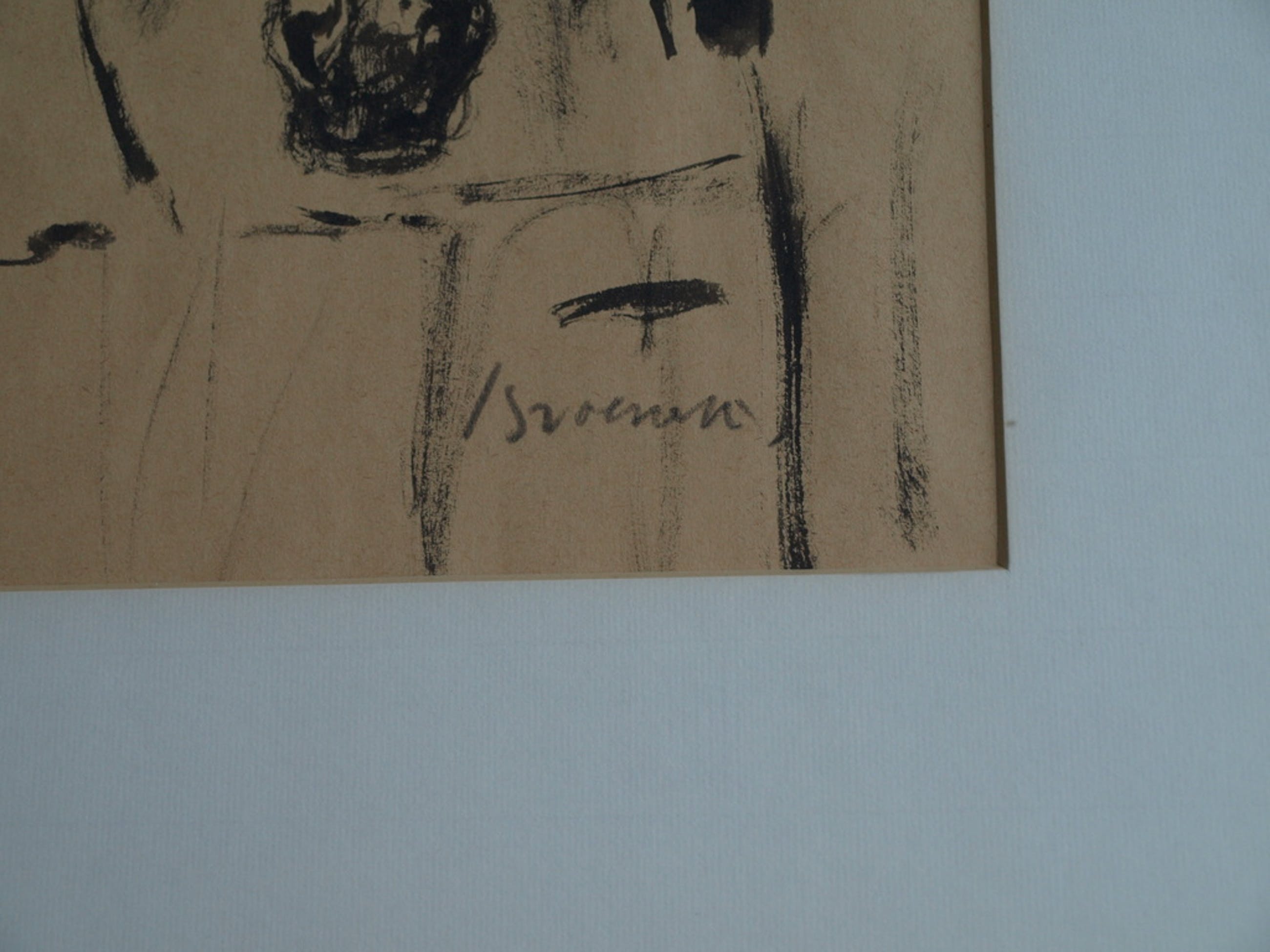 Een inkttekening op bruin papier van de Amsterdamse kunstenaar Jan Groenestein (1919-1971).