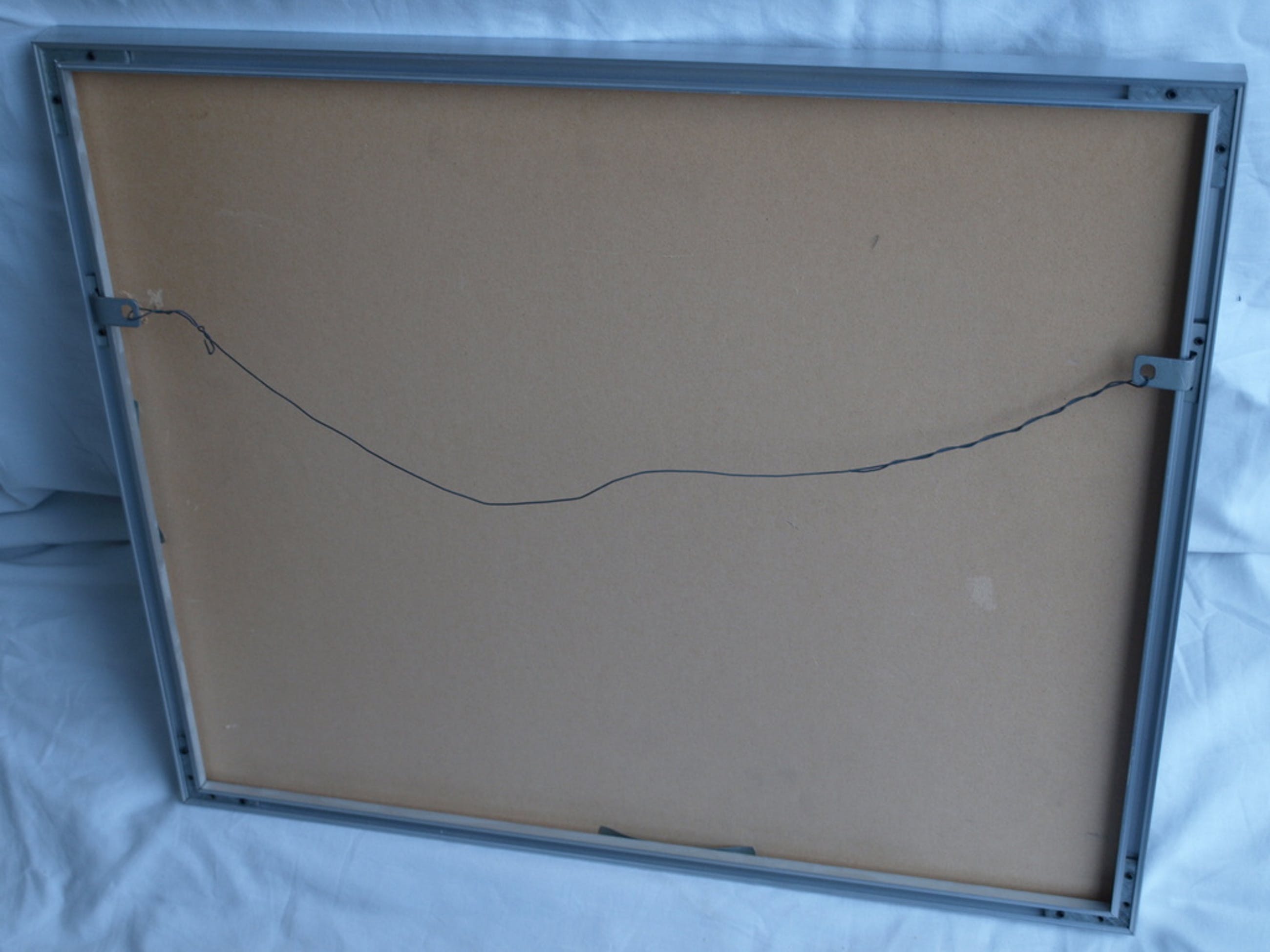 Ingelijst: Ingelijst in een aluminium lijst met passe-partout en glasplaat.