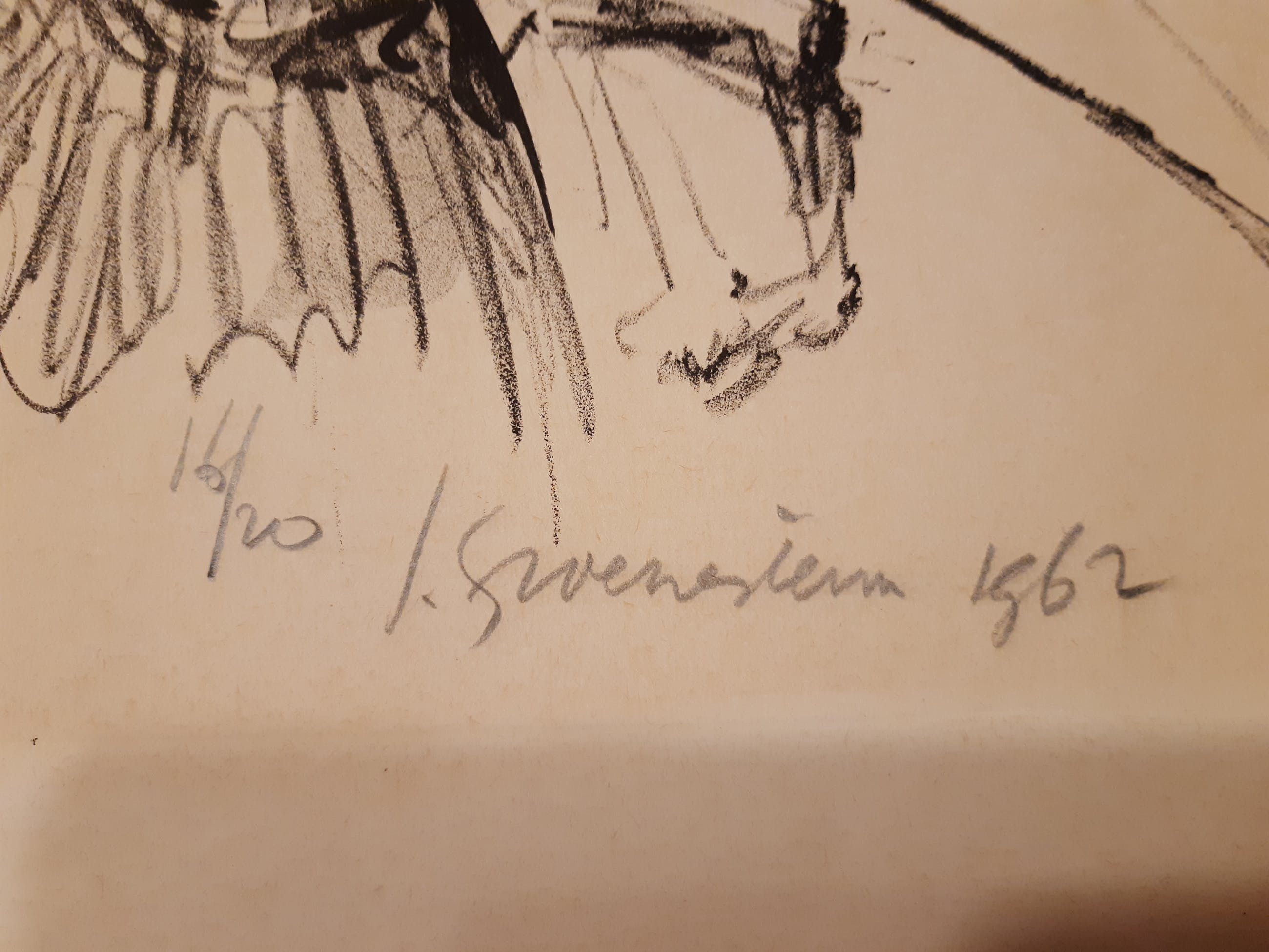 Een litho uit 1962 van de Amsterdamse kunstenaar Jan Groenestein. Handgesigneerd en –gedateerd met potlood. Gemaakt in een oplage van 20 exemplaren. Dit is nr 16.